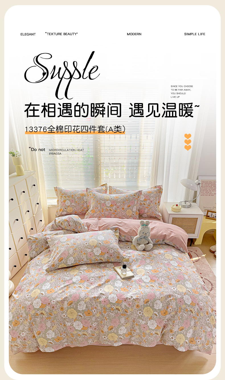 当前位置: 91家纺网 > 商品网购 > 床品套件 > 四件套 > 全棉普通四件套 > 大柏树 2025新款全棉13376印花四件套系列(可定制)-床单四件套 灵韵