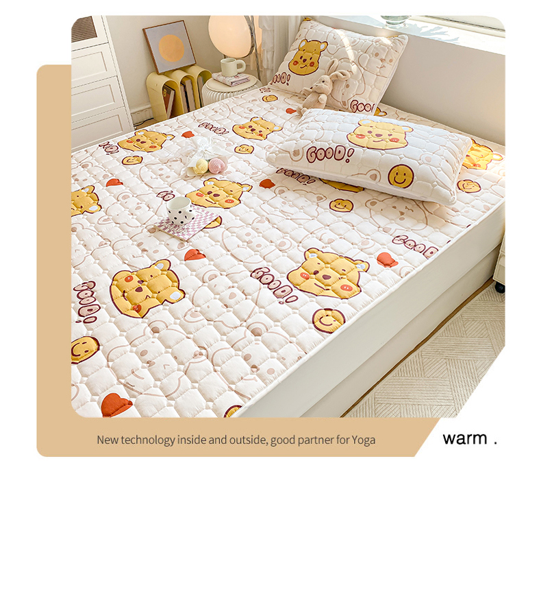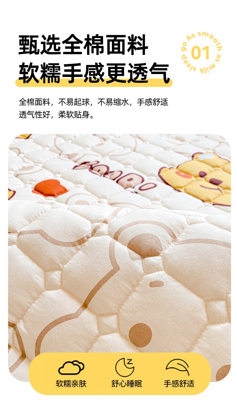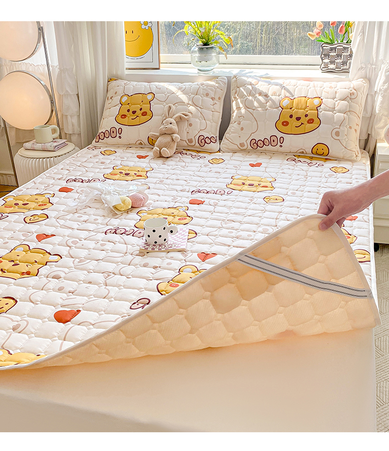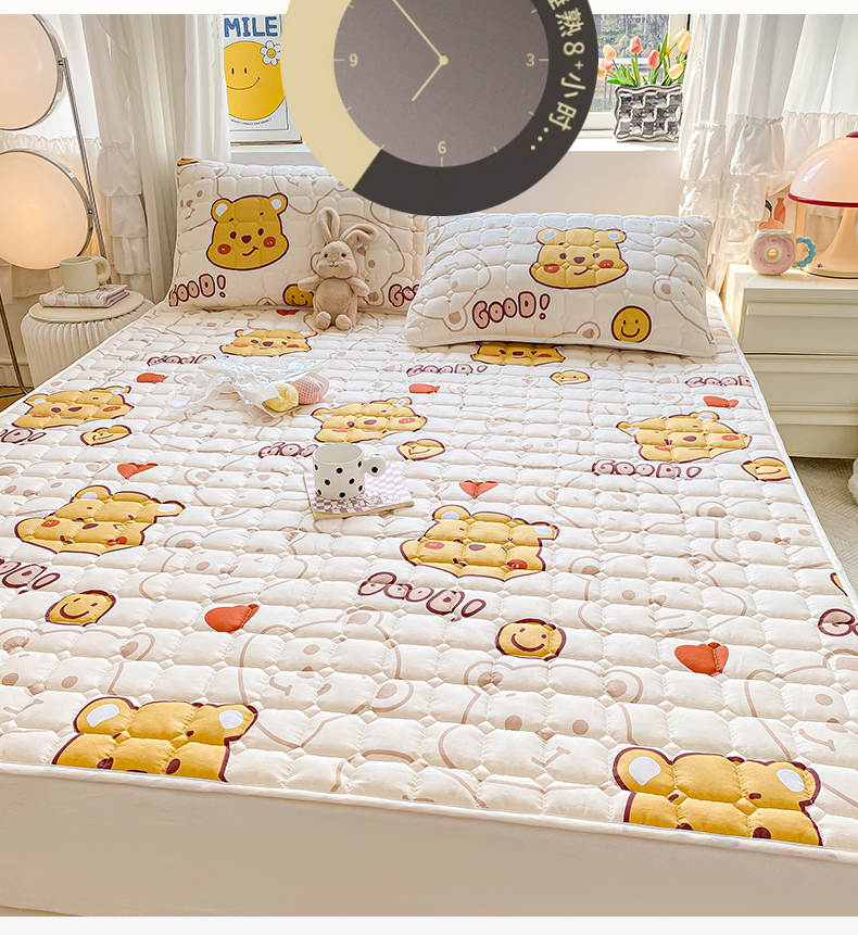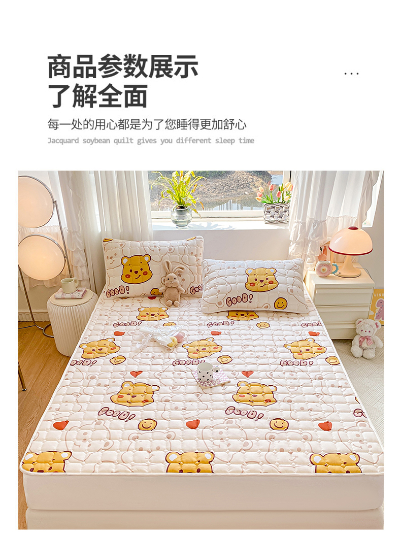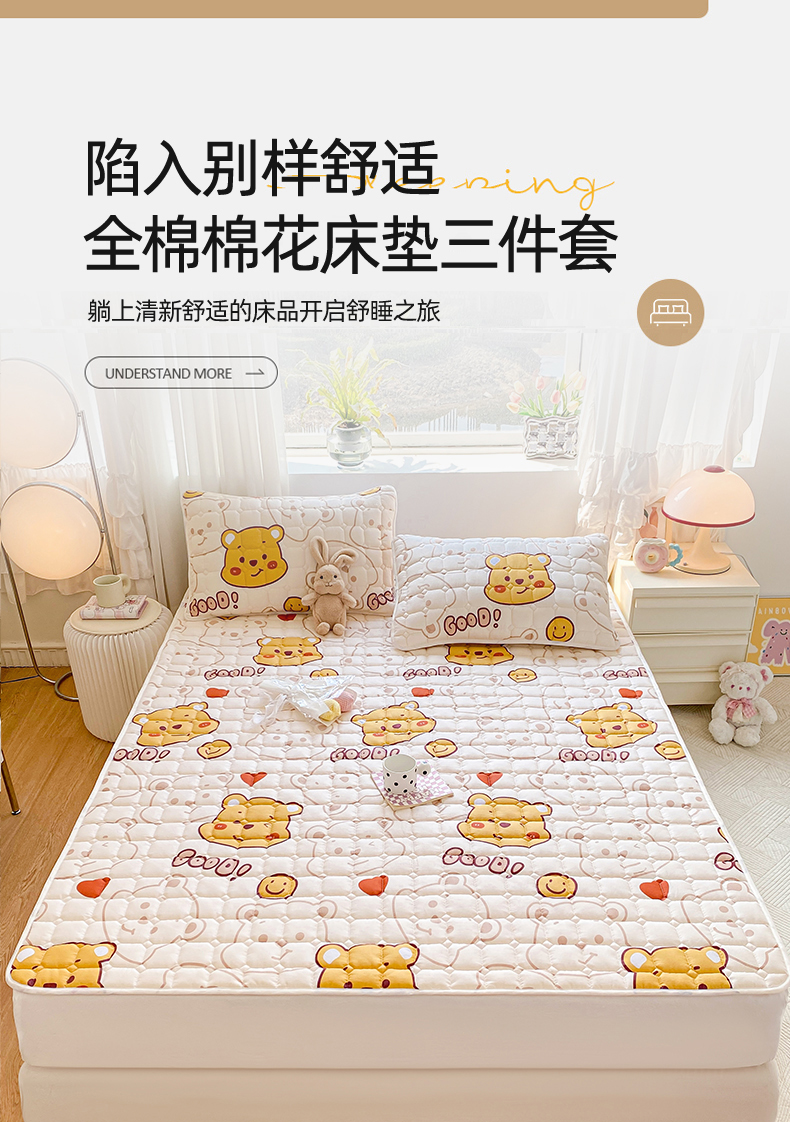• 91家纺网 家纺一手货源 找家纺 萌飞2024新款全棉新疆棉花夹棉床垫加厚床褥垫被三件套印花 欢乐萌熊