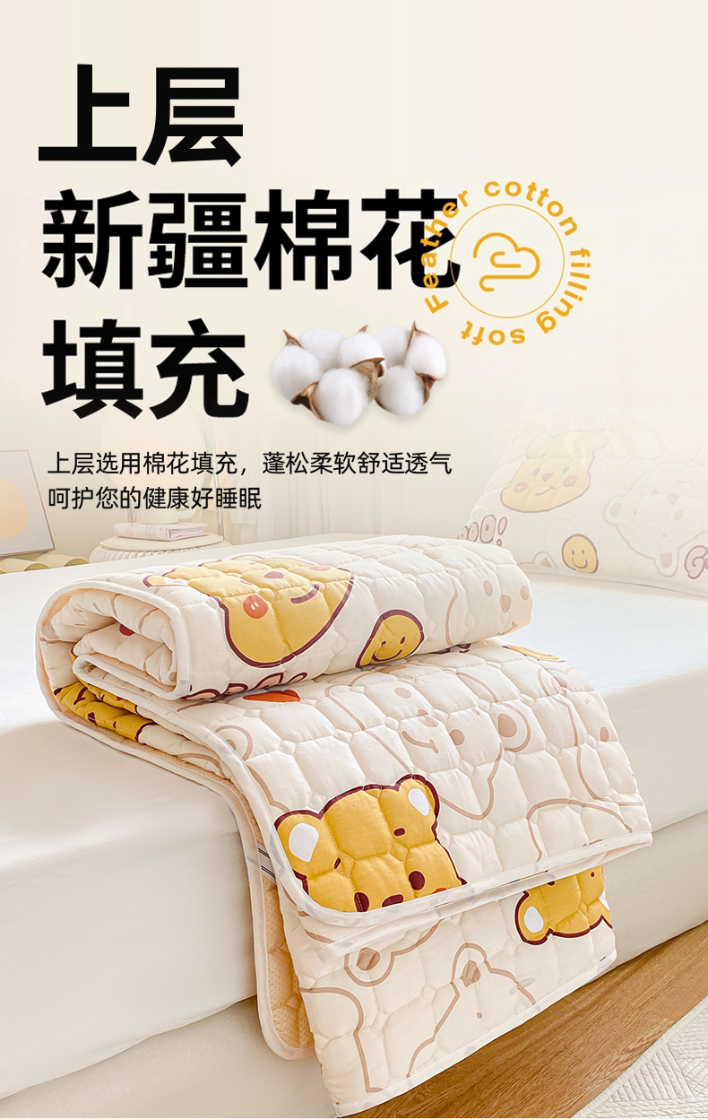 当前位置: 91家纺网 > 商品网购 > 床垫/床褥 > 萌飞2024新款全棉新疆棉花夹棉床垫加厚床褥垫被三件套印花 欢乐萌熊