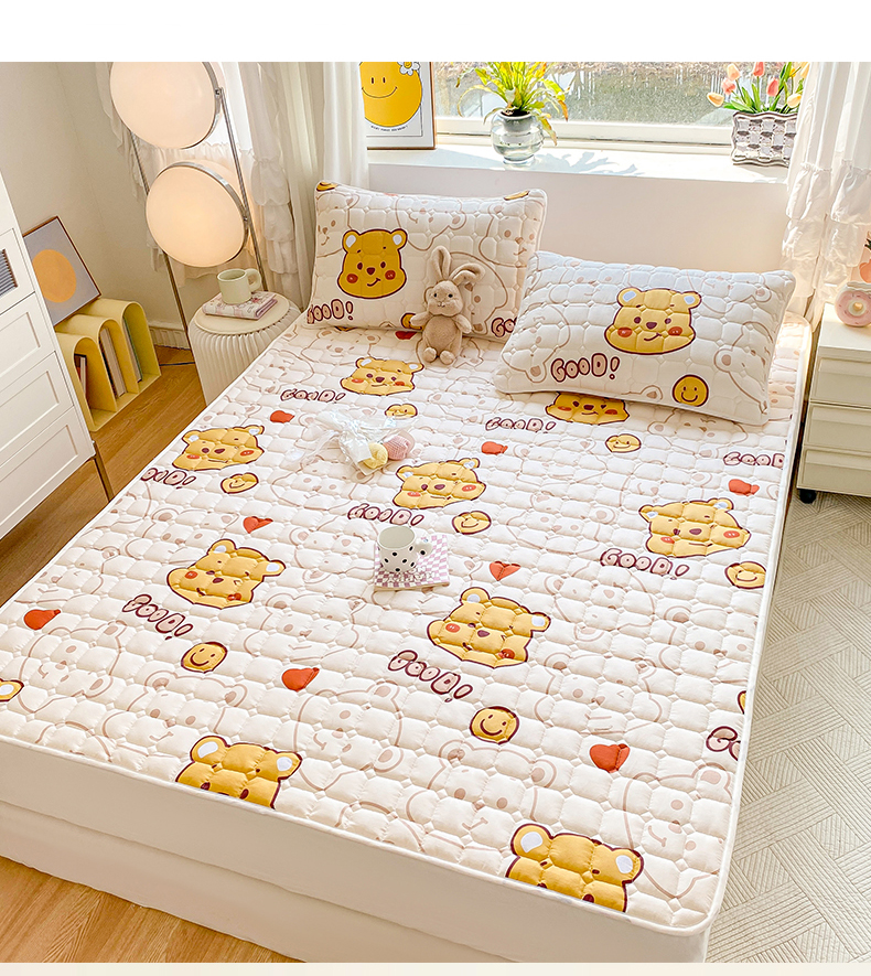 萌飞2024新款全棉新疆棉花夹棉床垫加厚床褥垫被三件套印花 欢乐萌熊
