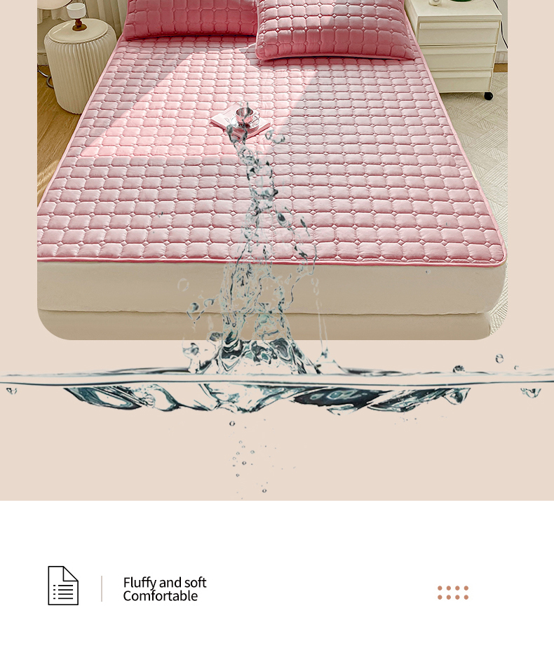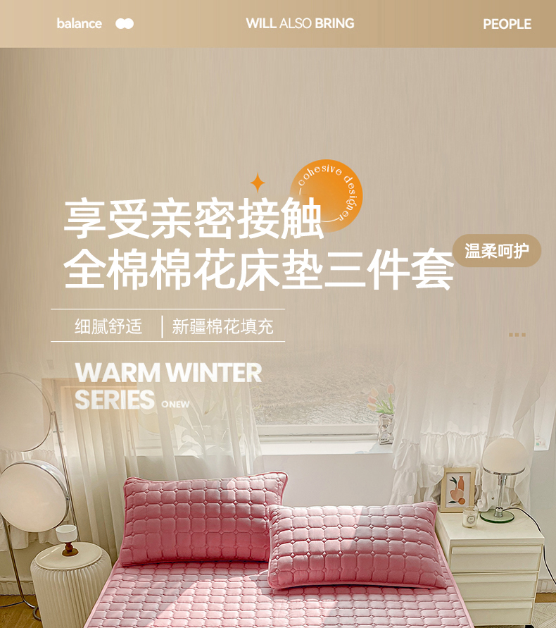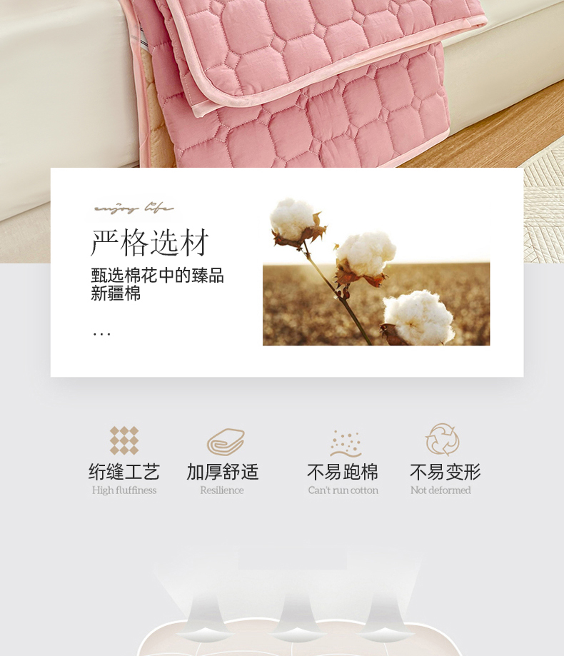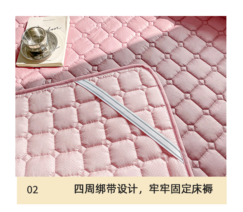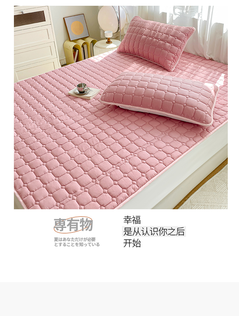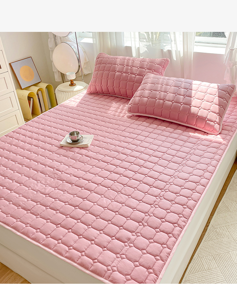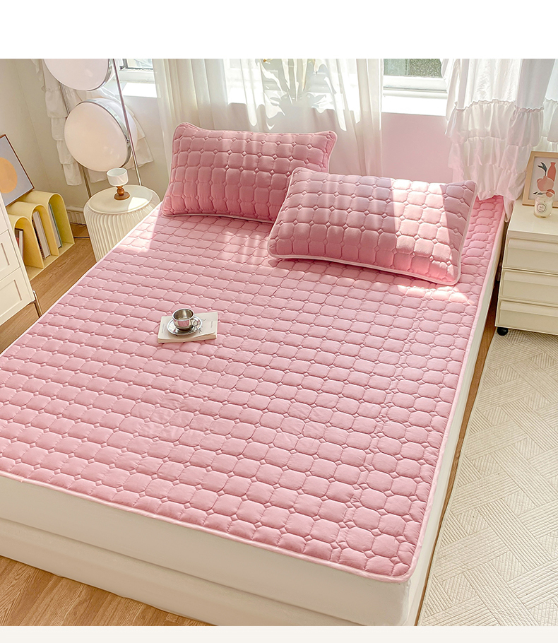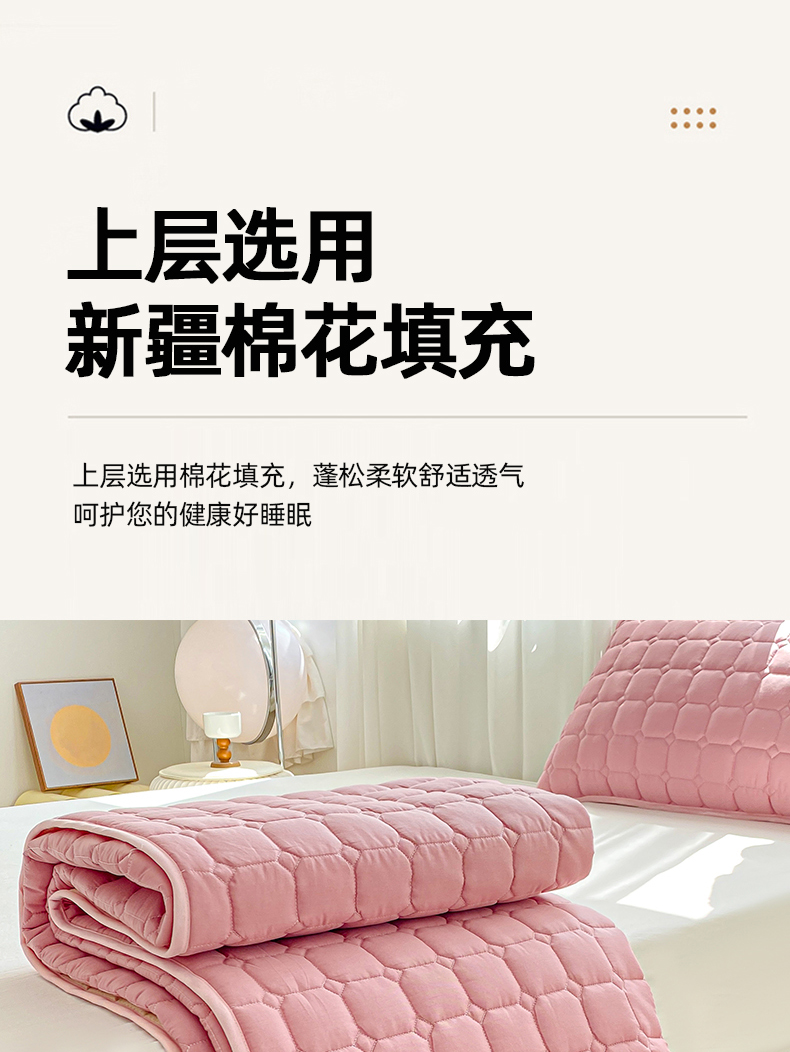• 91家纺网 家纺一手货源 找家纺 萌飞2024新款全棉新疆棉花夹棉床垫加厚床褥垫被三件套-纯色 经典(粉)