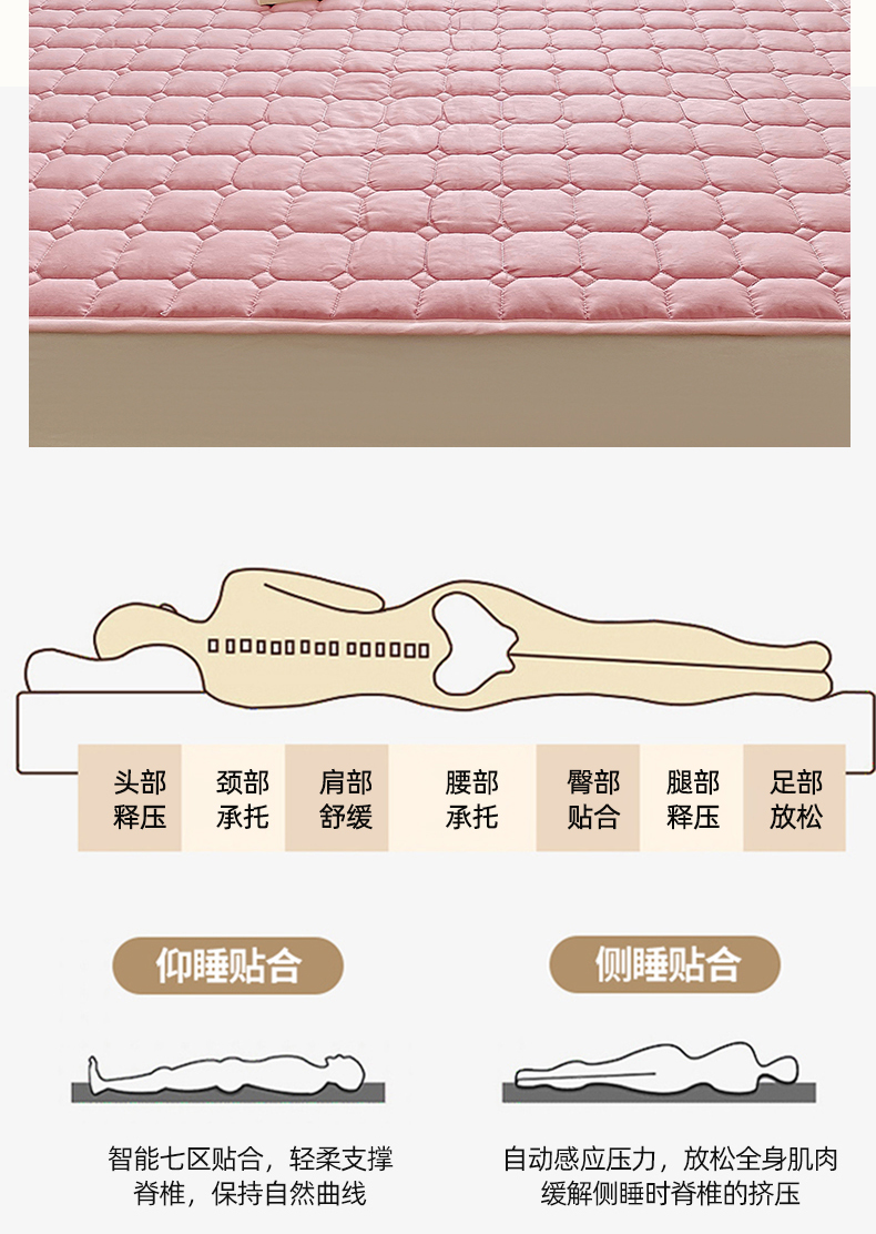 当前位置: 91家纺网 > 商品网购 > 床垫/床褥 > 萌飞2024新款全棉新疆棉花夹棉床垫加厚床褥垫被三件套-纯色 经典(粉)
