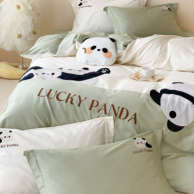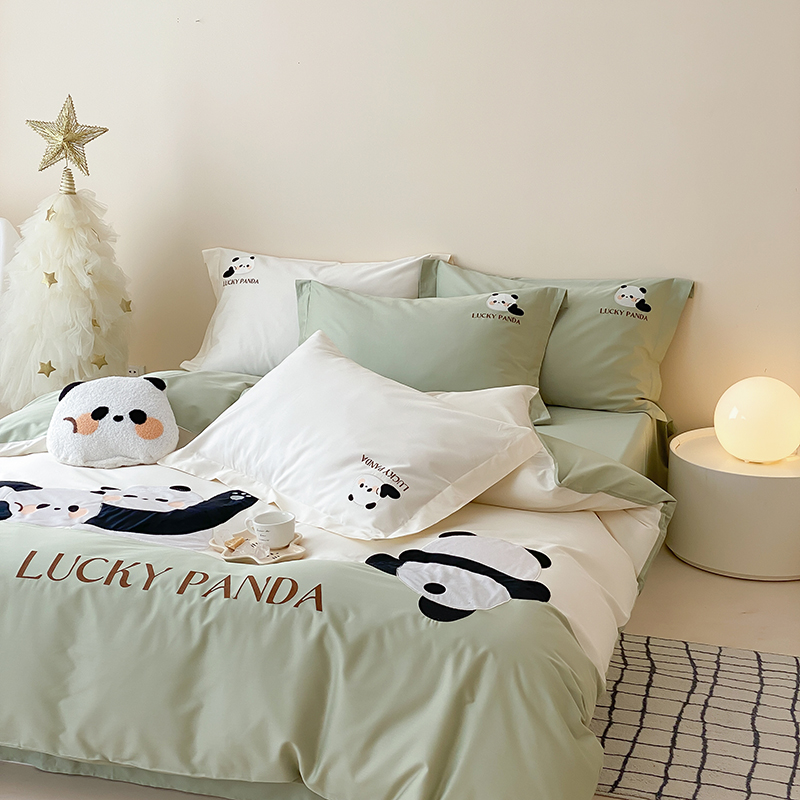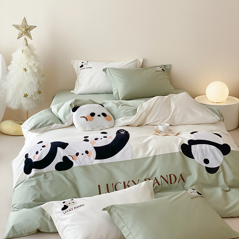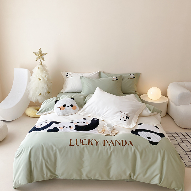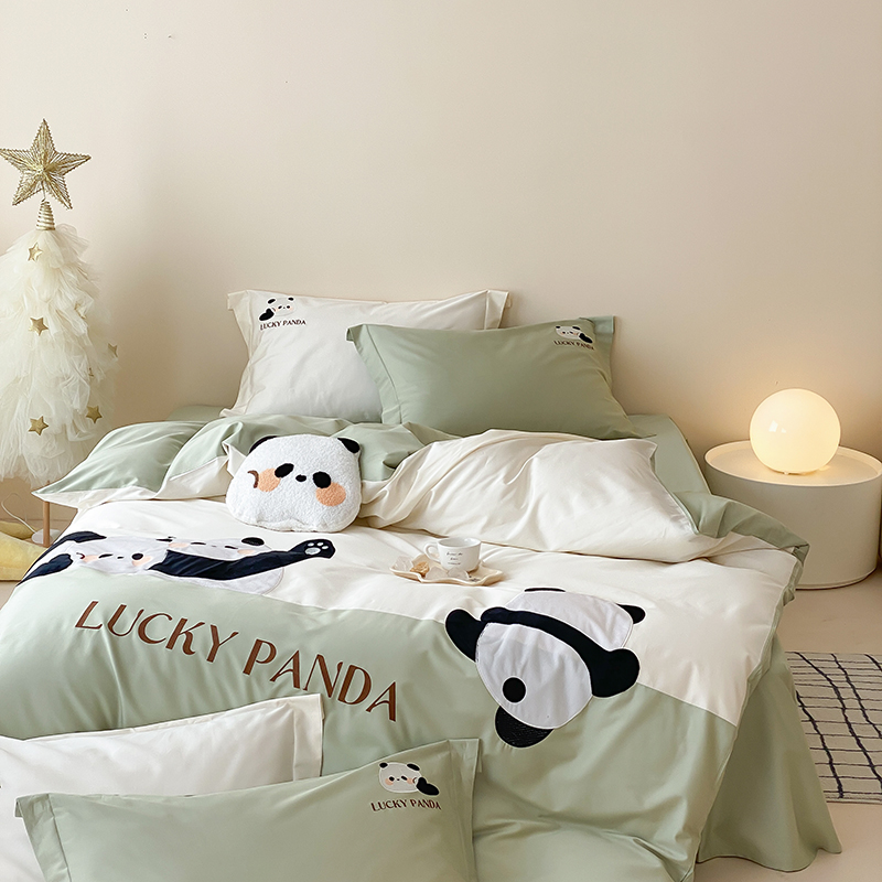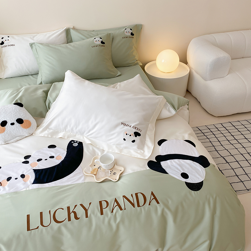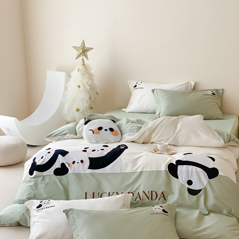商品名称:(总)曼布缇 2025春夏新品100S澳棉长绒棉绣花四件套-熊猫派对