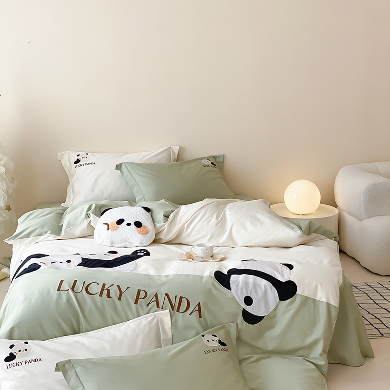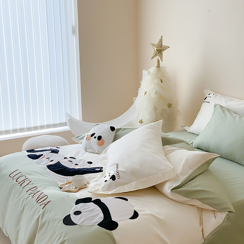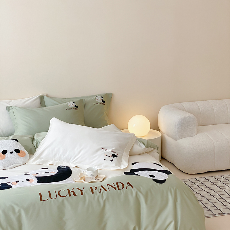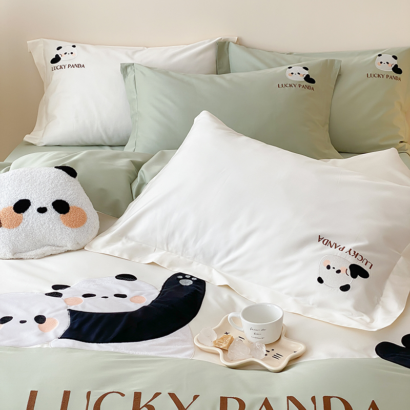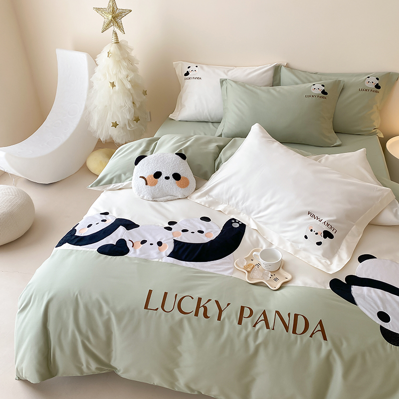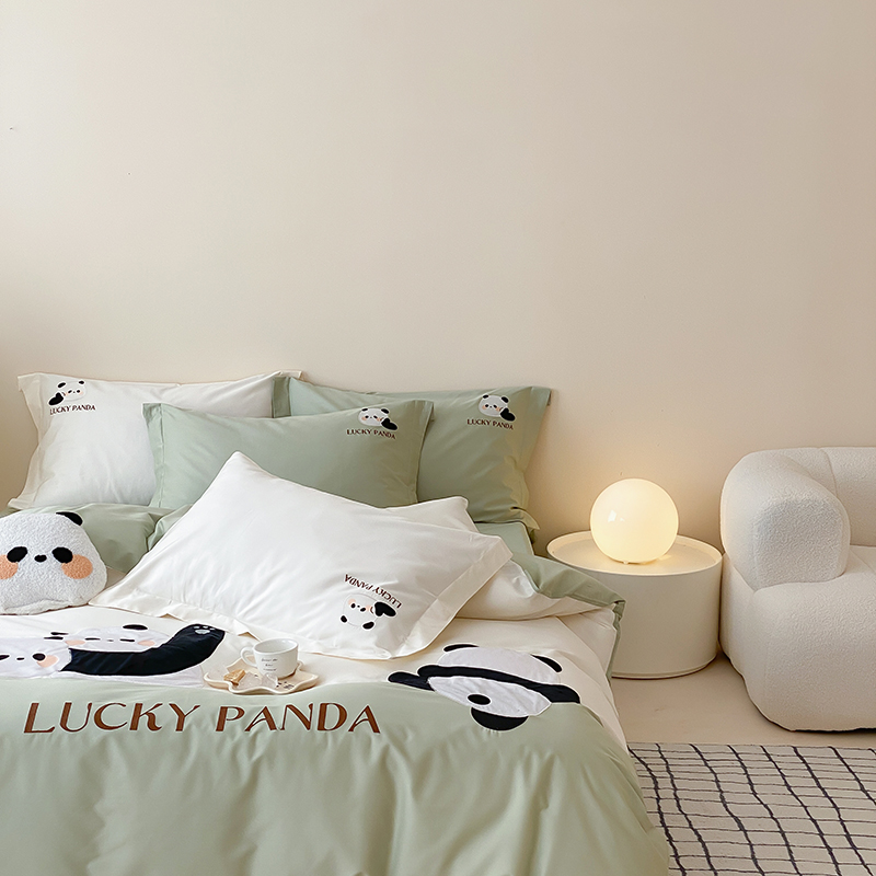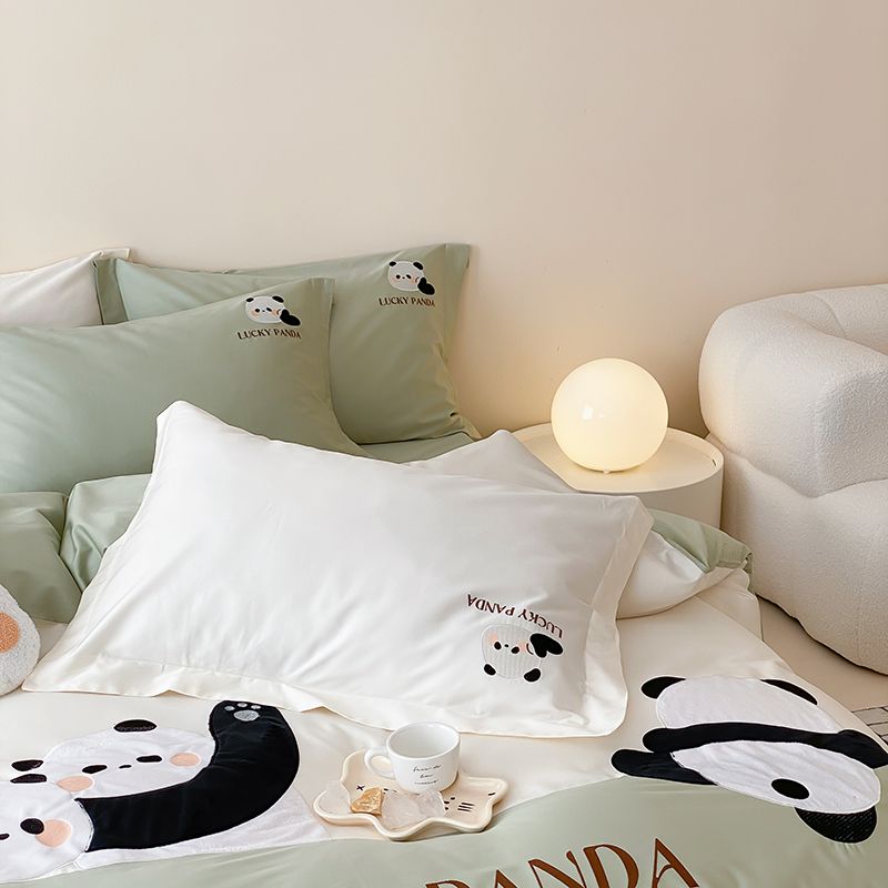 商品名称:(总)曼布缇 2025春夏新品100S澳棉长绒棉绣花四件套-熊猫派对