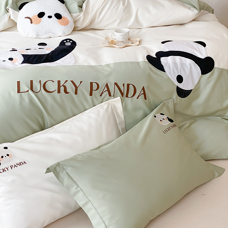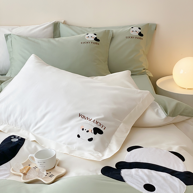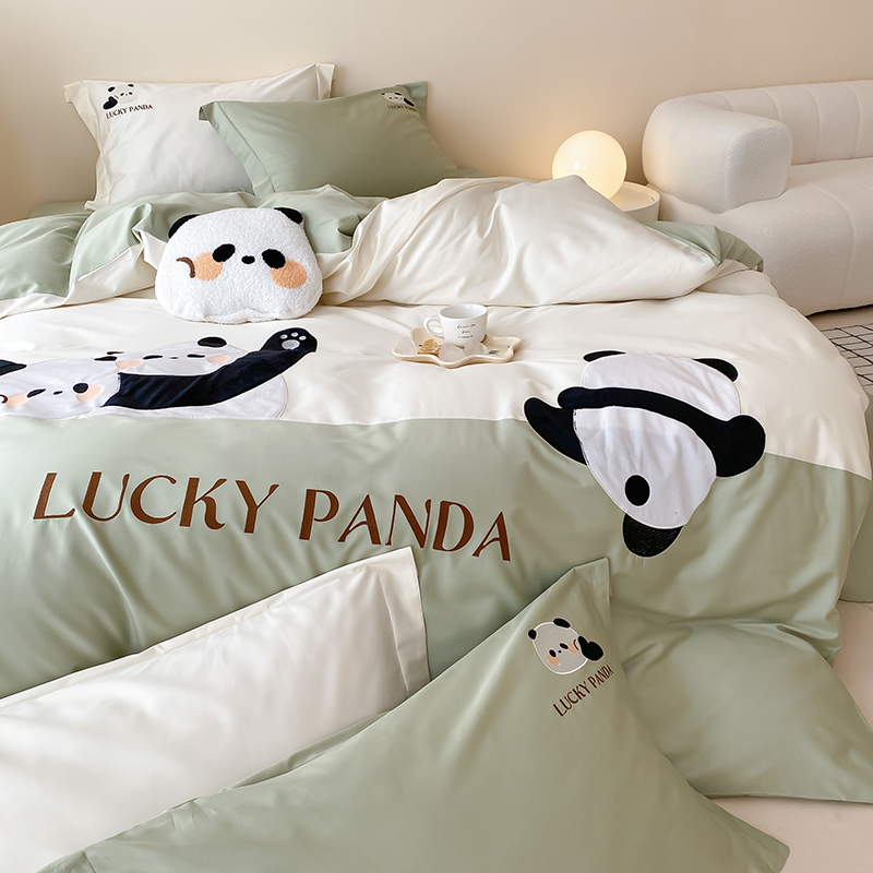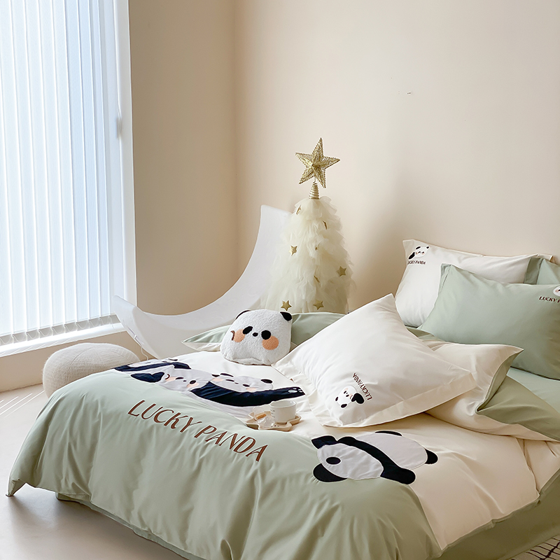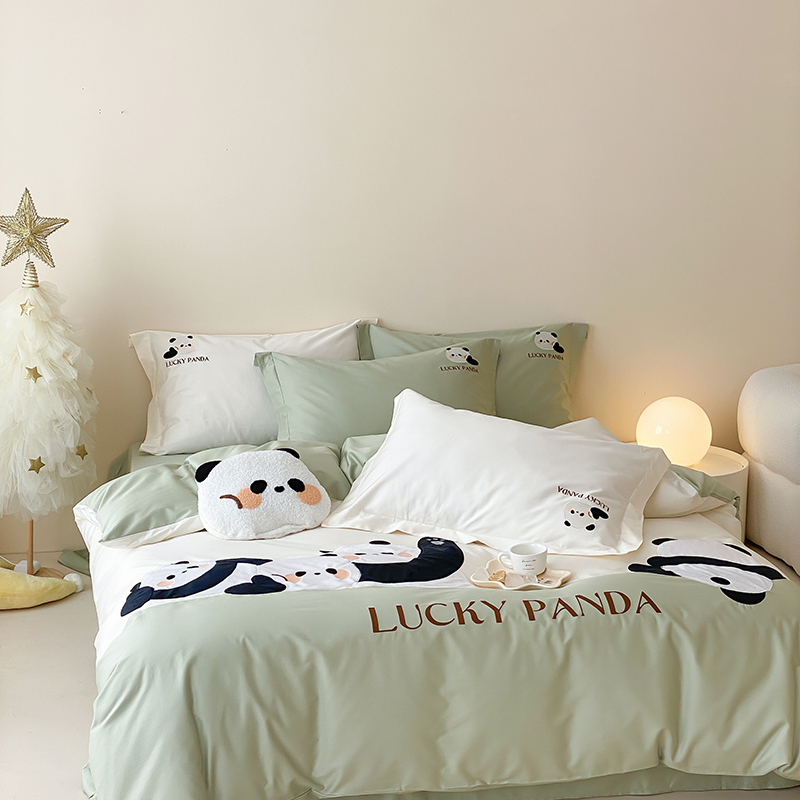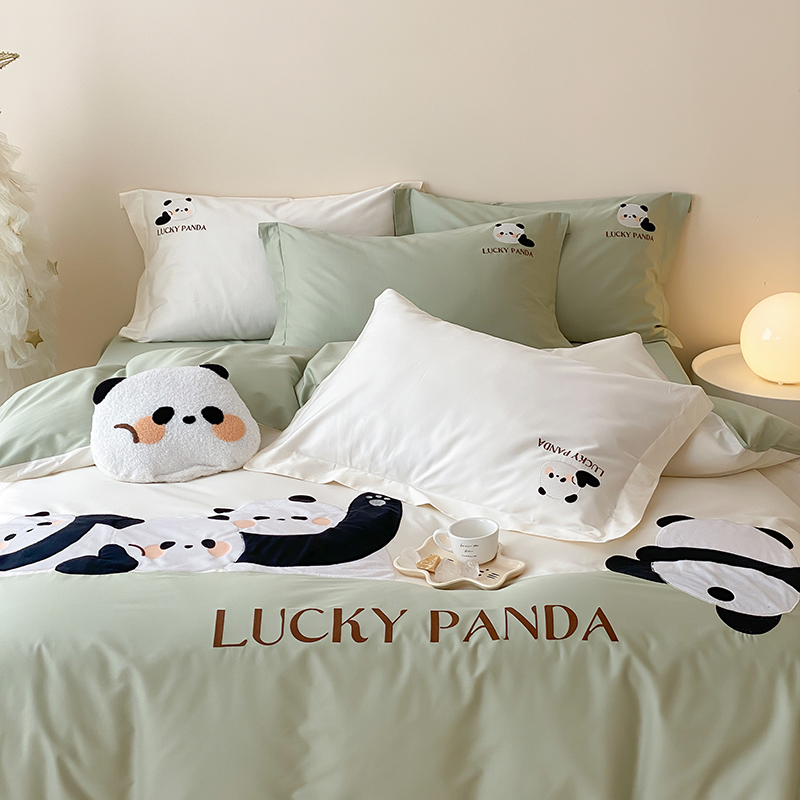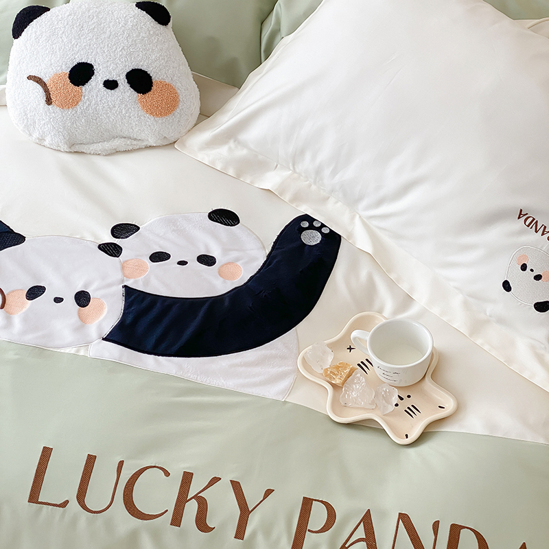 商品名称:(总)曼布缇 2025春夏新品100S澳棉长绒棉绣花四件套-熊猫派对