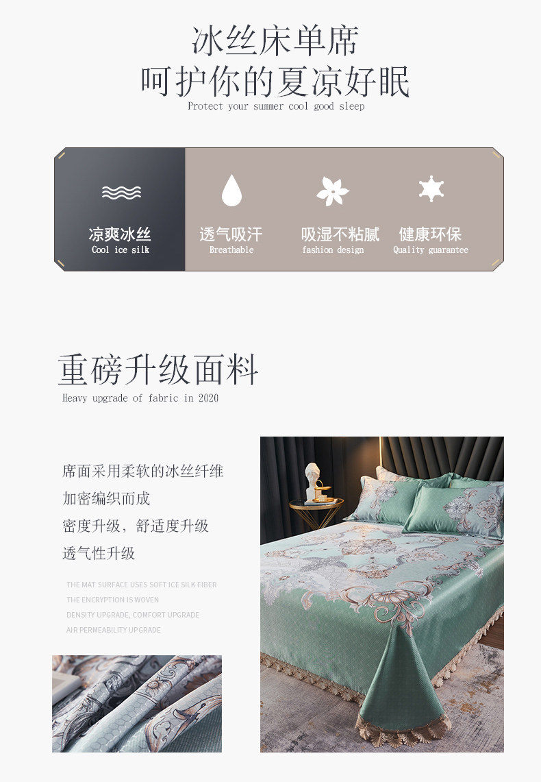 商品名称:其奥家纺 2025新款900d窝蜂冰丝凉席三件套 欧式风情