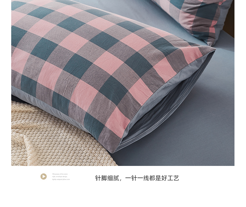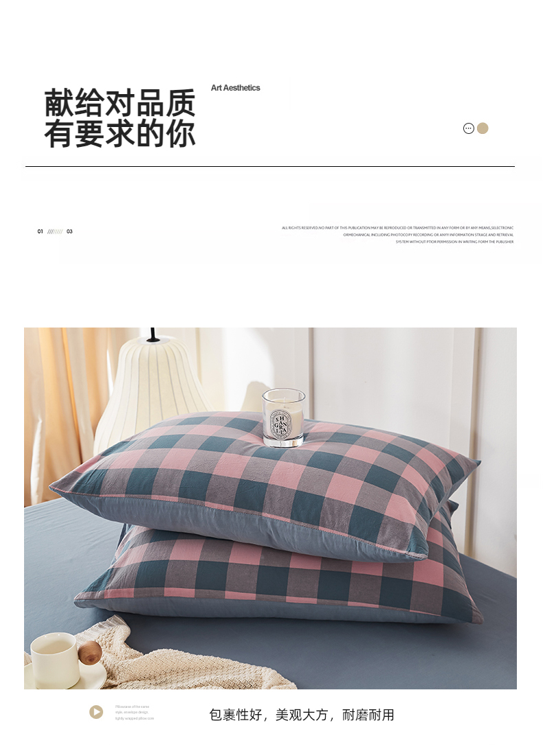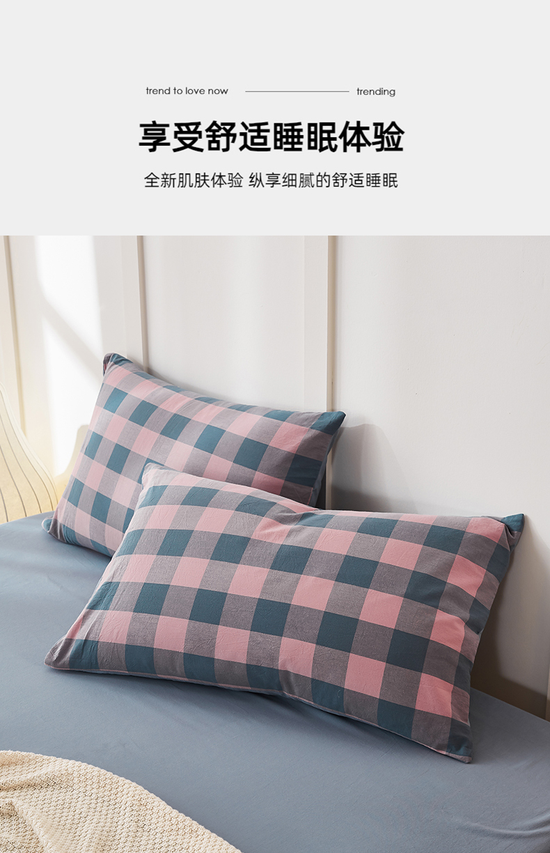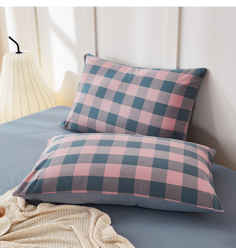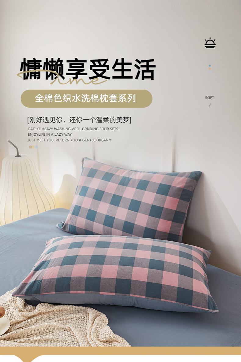 凡客家居 2024新款全棉色织水洗棉枕套 粉灰中格