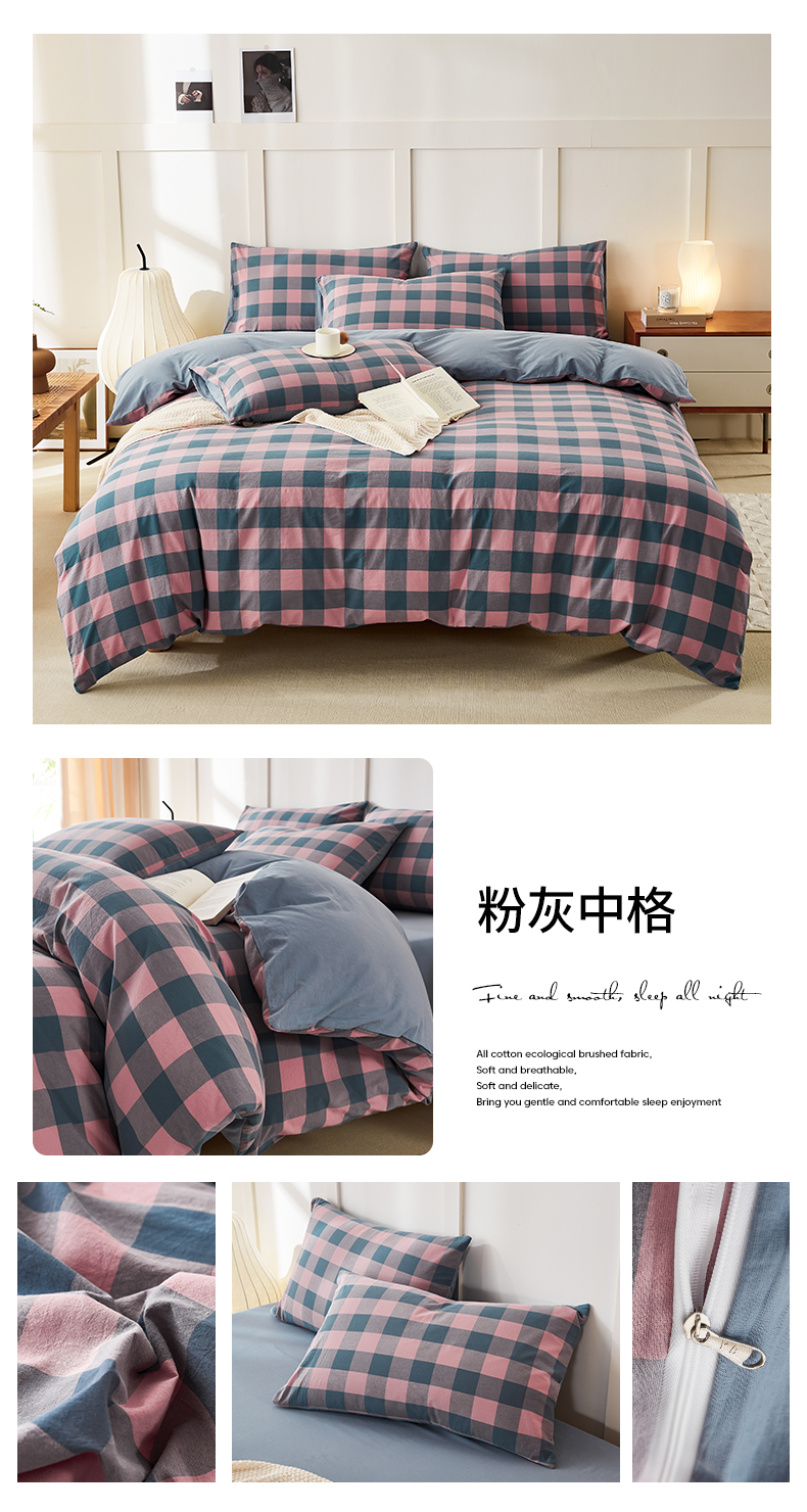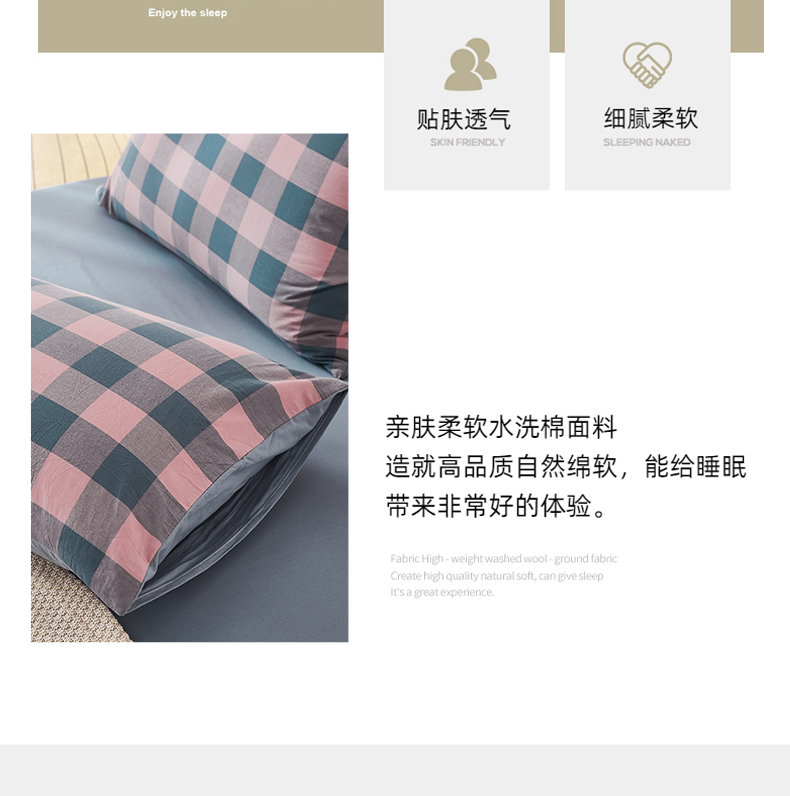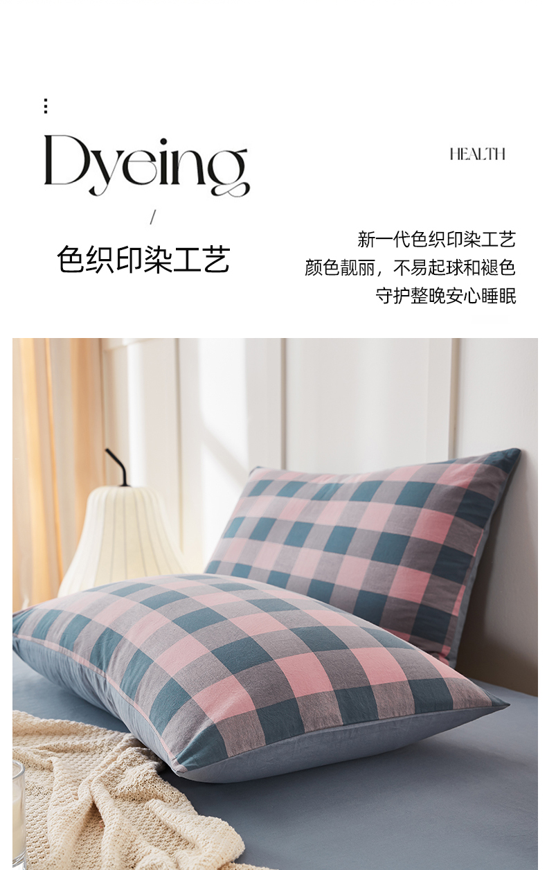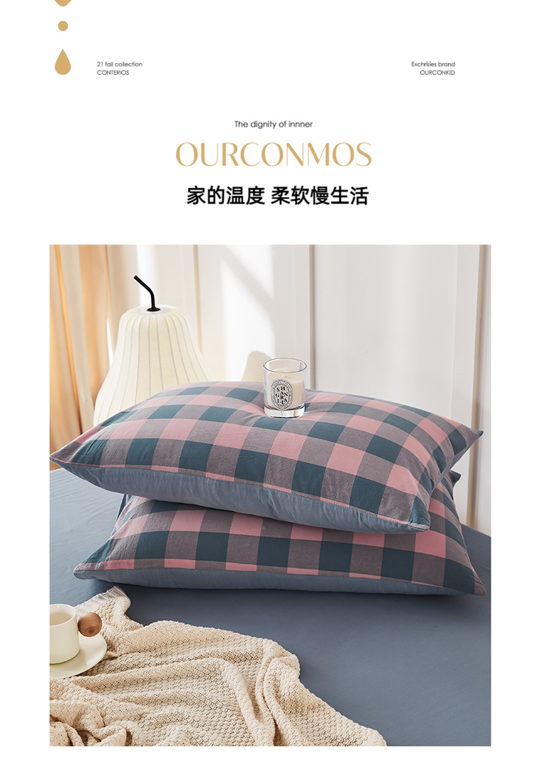 凡客家居 2024新款全棉色织水洗棉枕套 粉灰中格