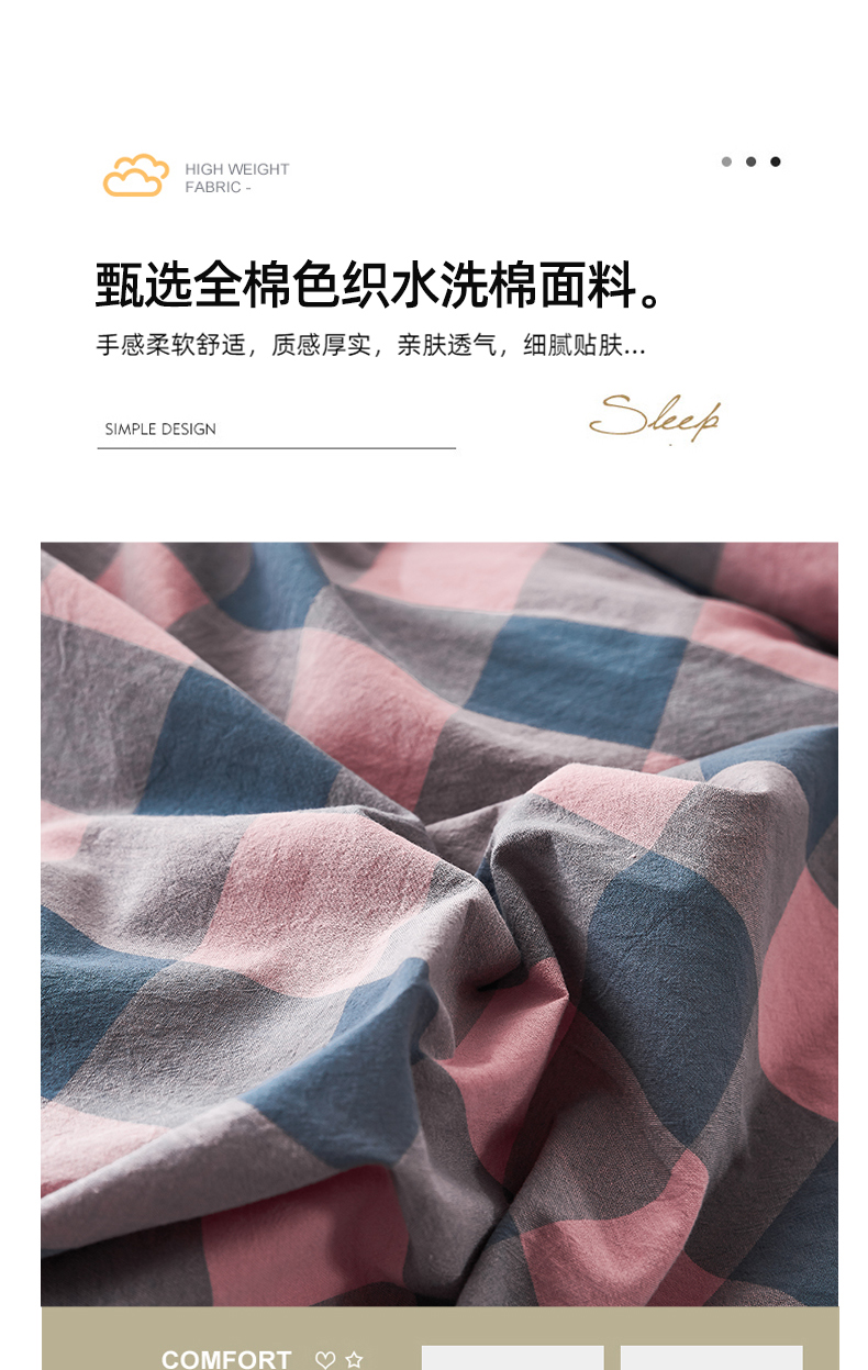 商品名称:凡客家居 2024新款全棉色织水洗棉枕套 粉灰中格