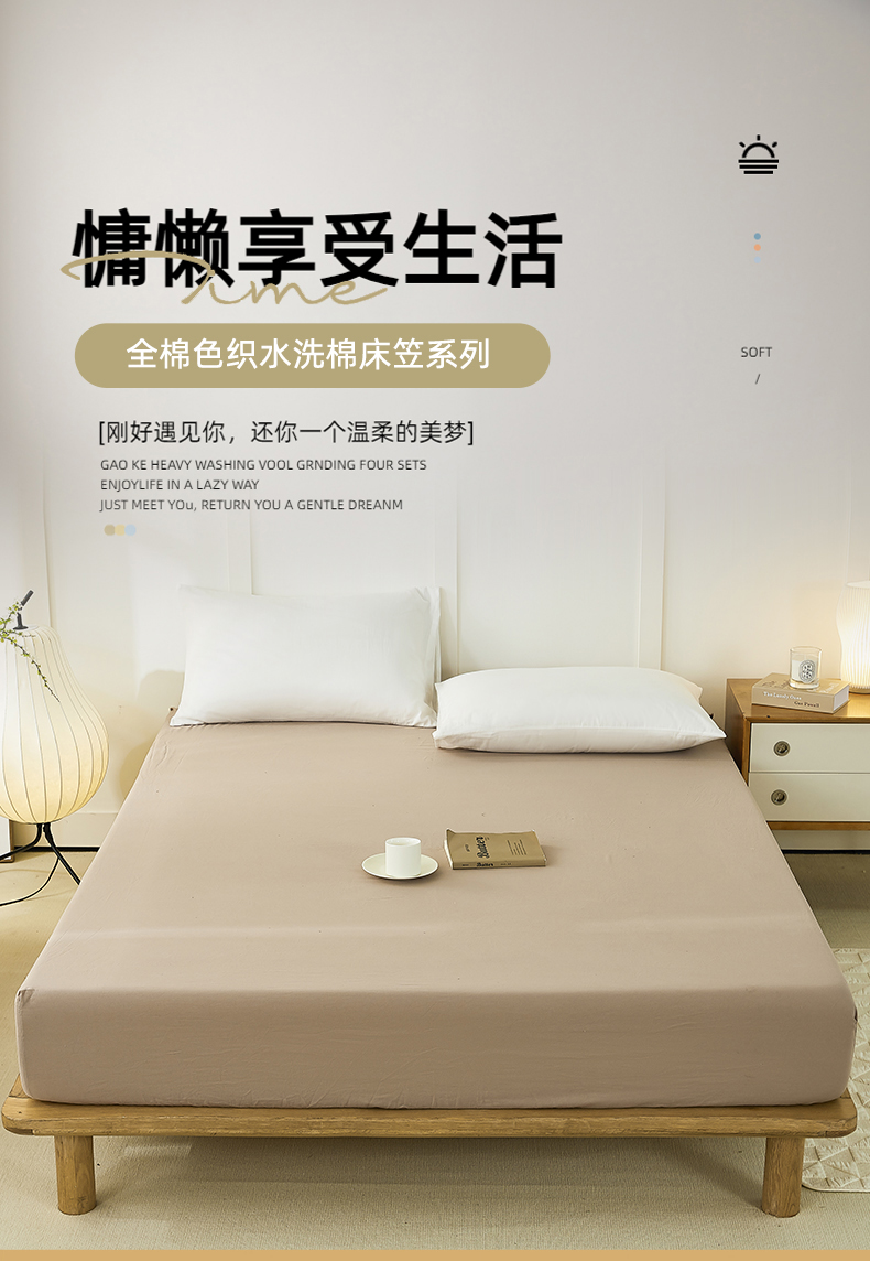 商品名称:凡客家居 2024新款全棉色织水洗棉单床笠学生宿舍 轻萝—米