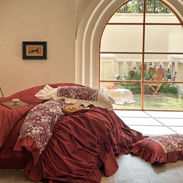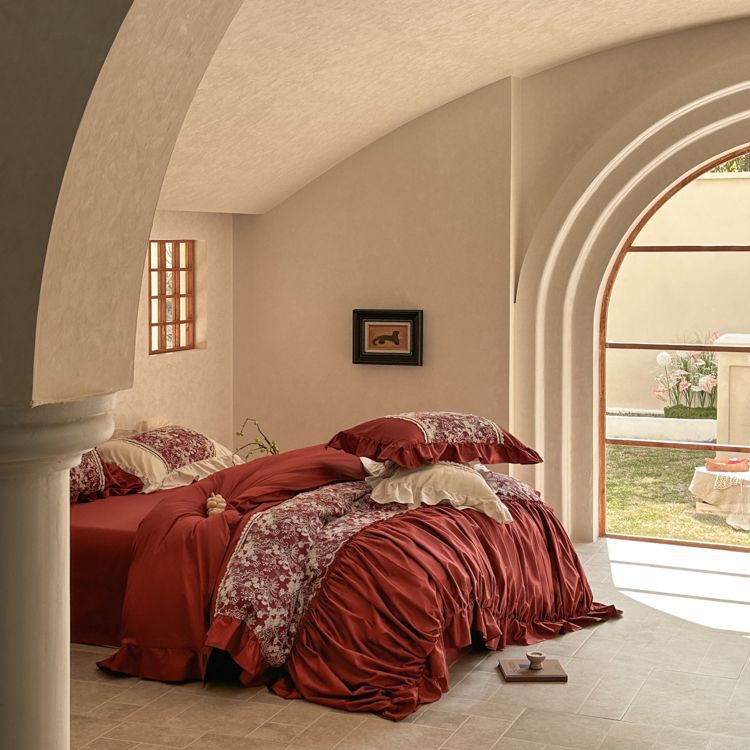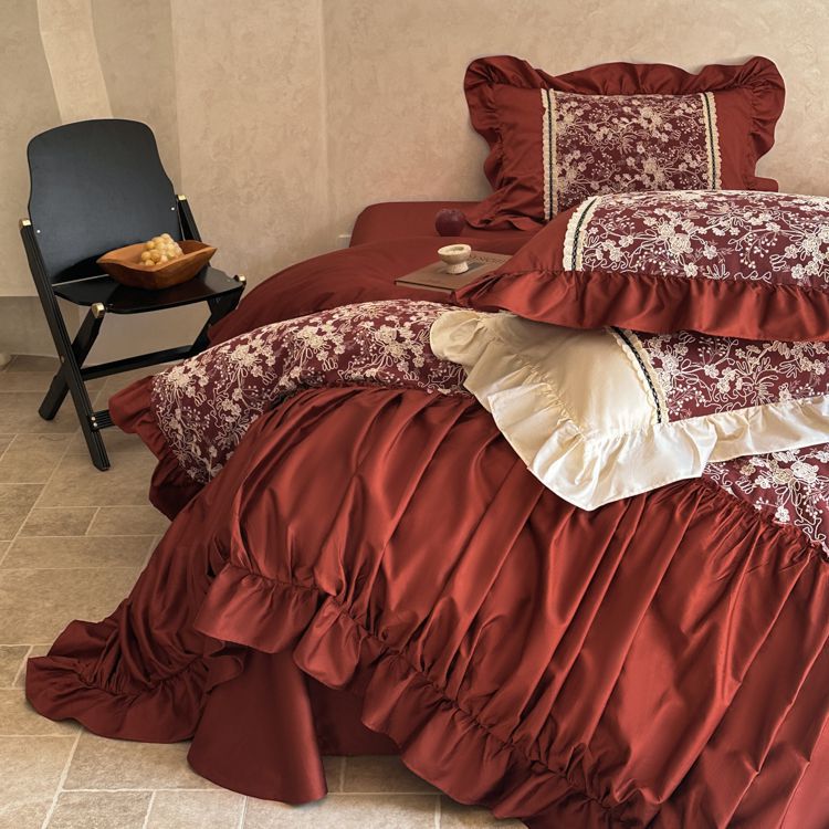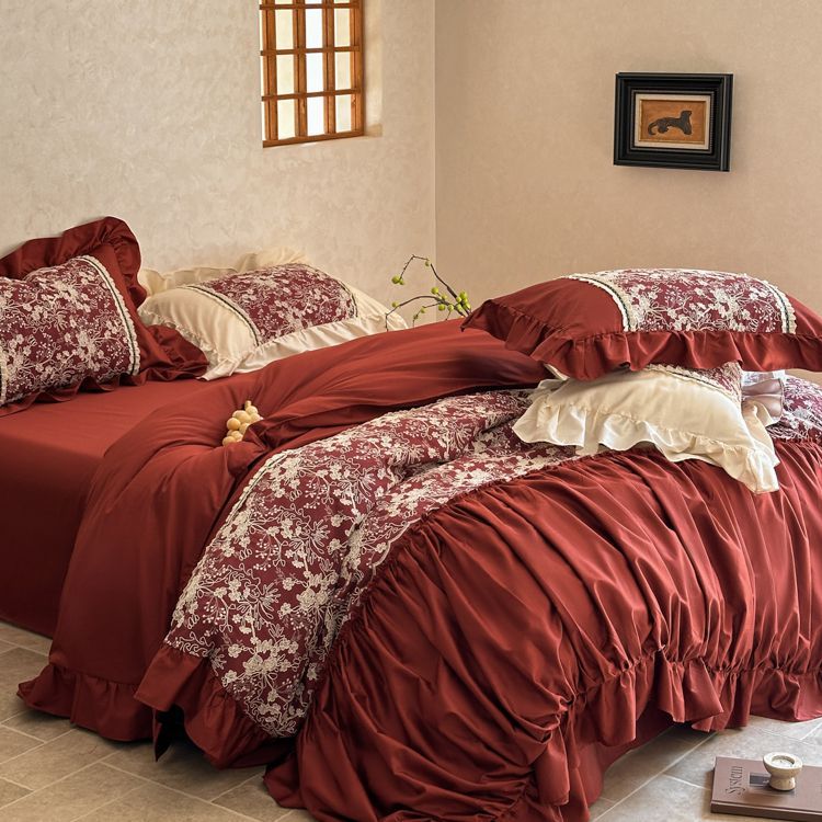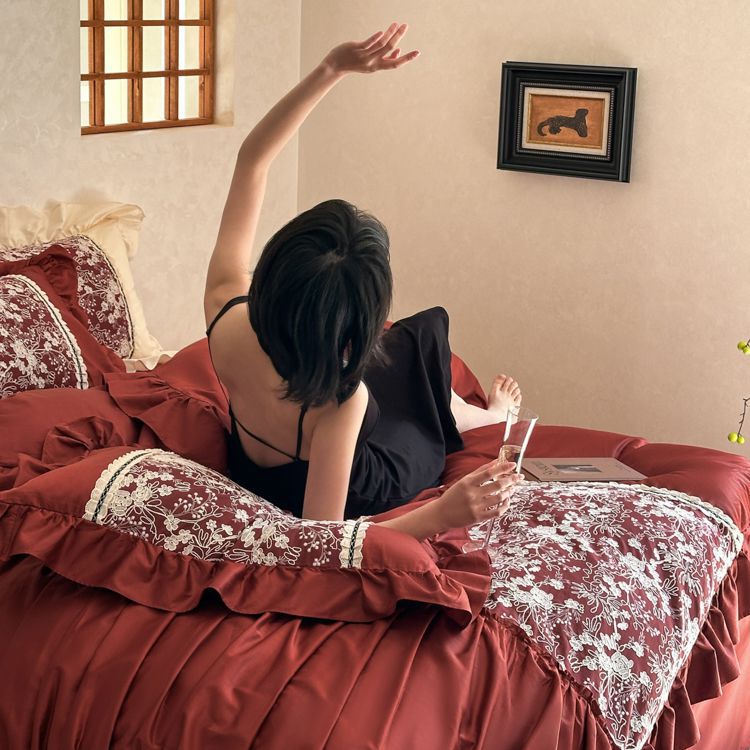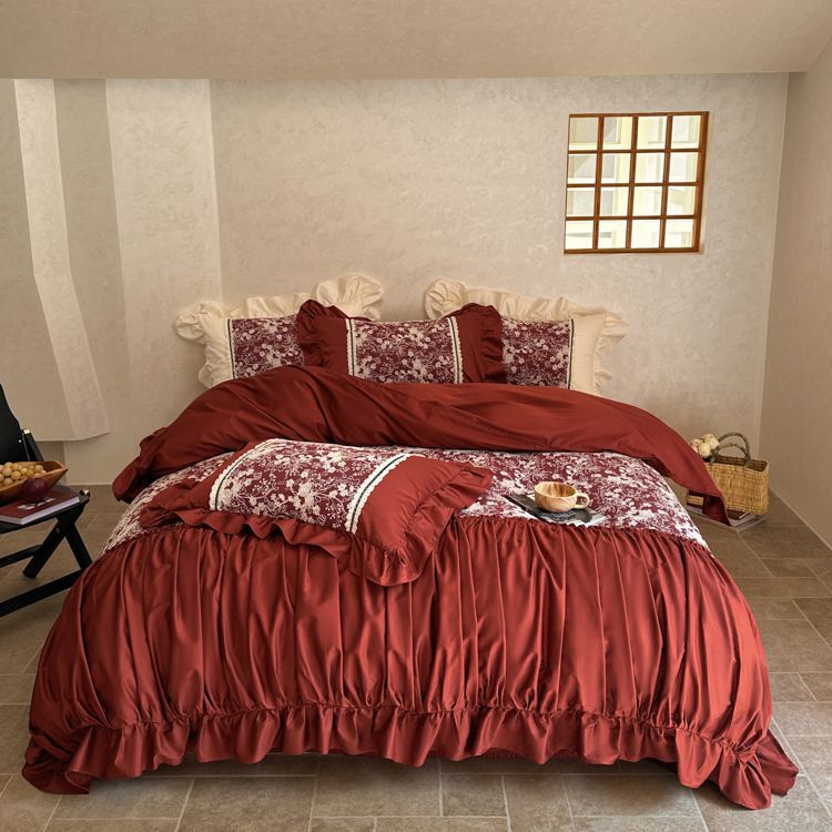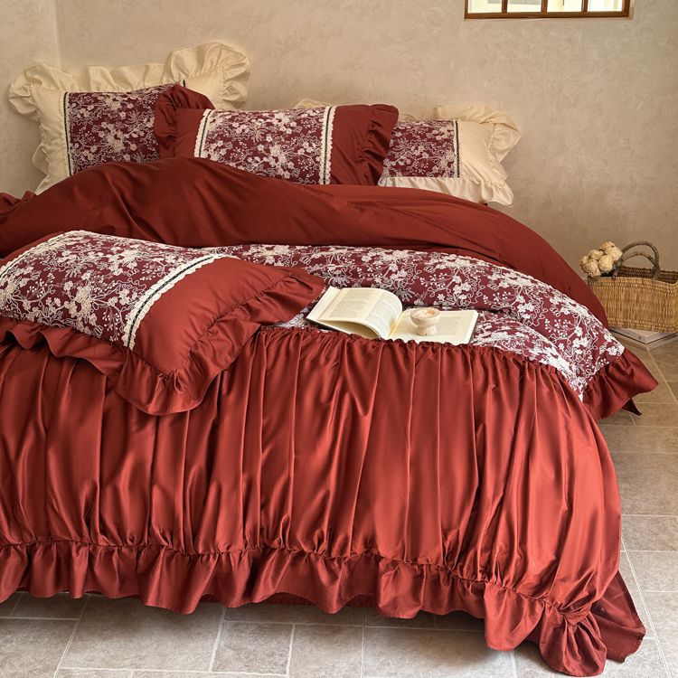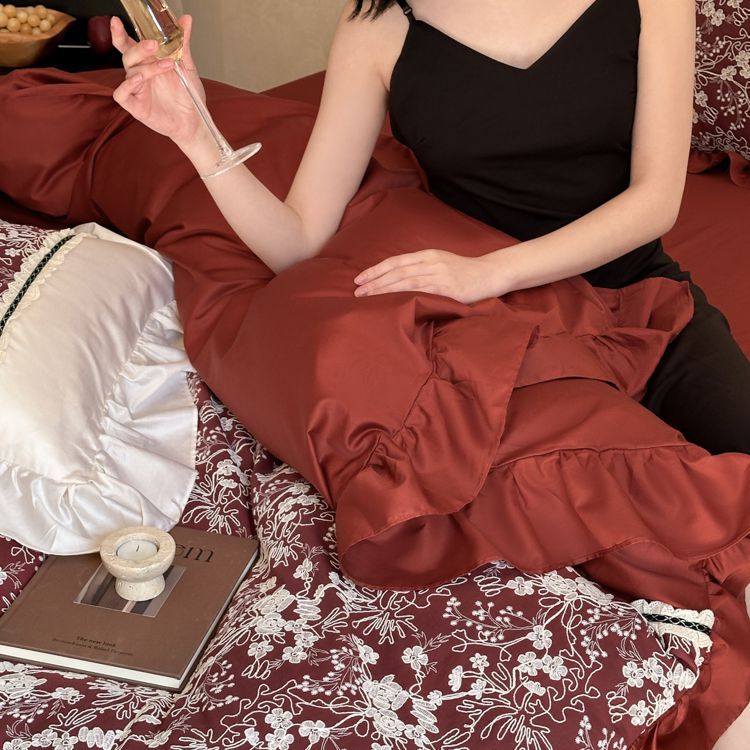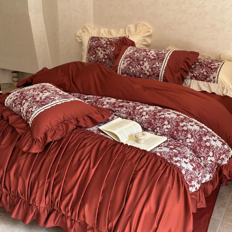 嗨购家纺 2024新款亲肤舒适100支全棉四件套-花成蜜就 花成蜜就-红