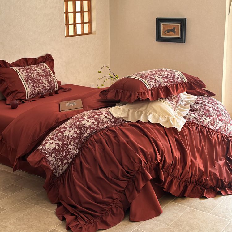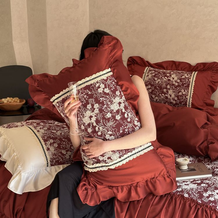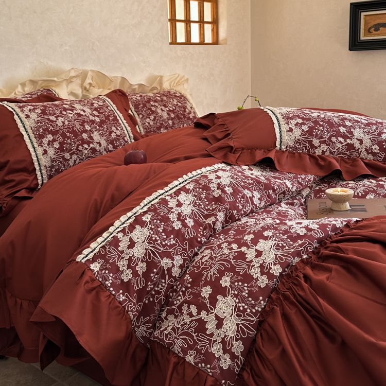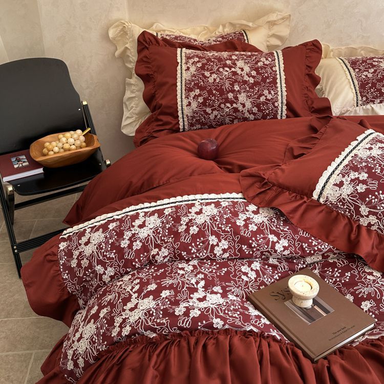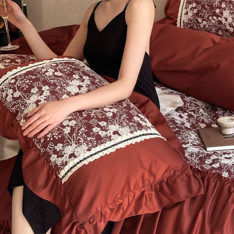 (总)嗨购 2022新款40支水洗棉刺绣花边四件套-复古花花,复古花花-粉,复古花花-绿,复古花花-紫