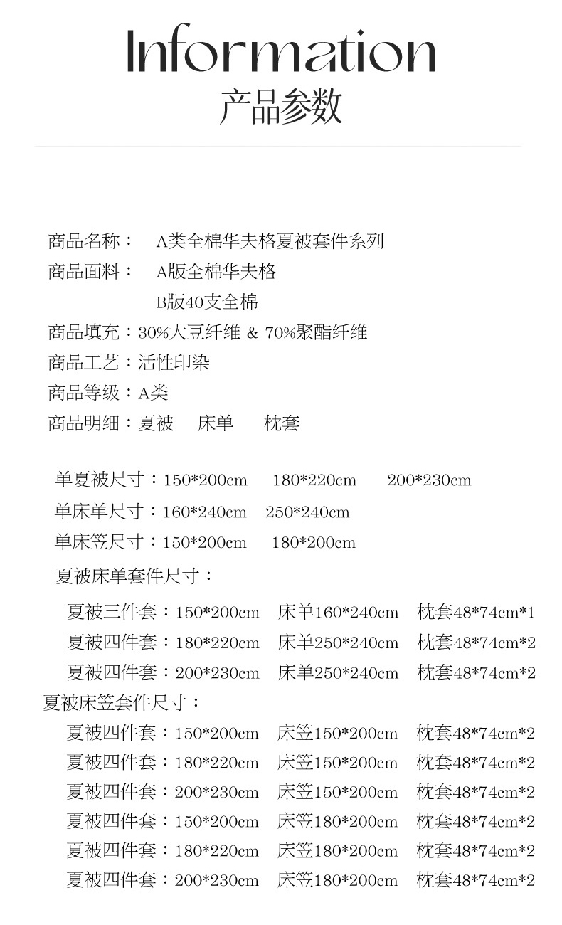 200x230cm夏被四件套床签款 150x200cm床签