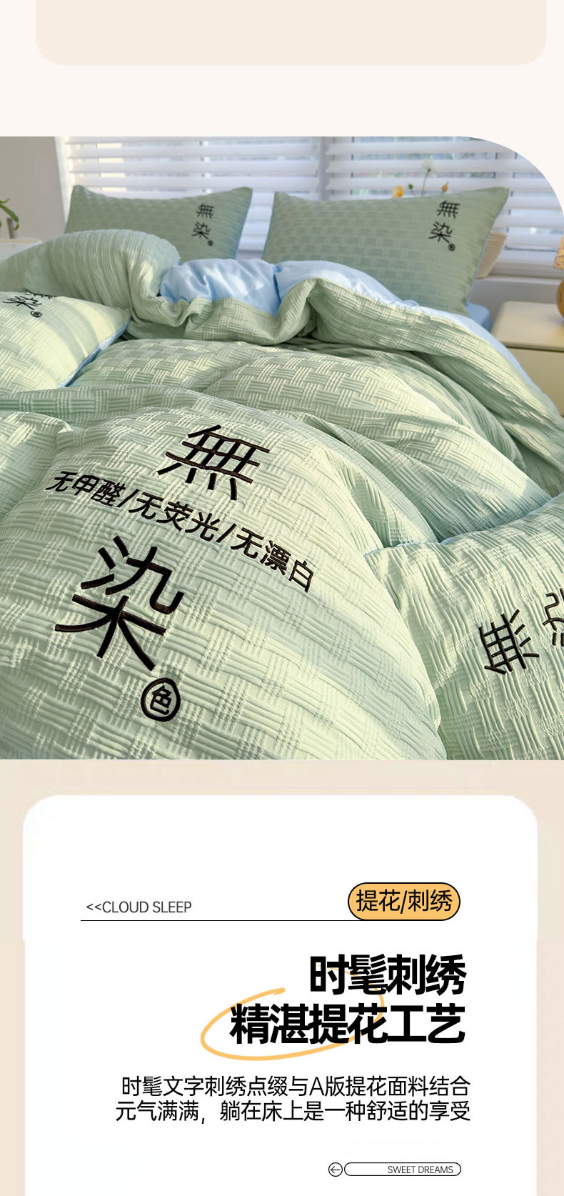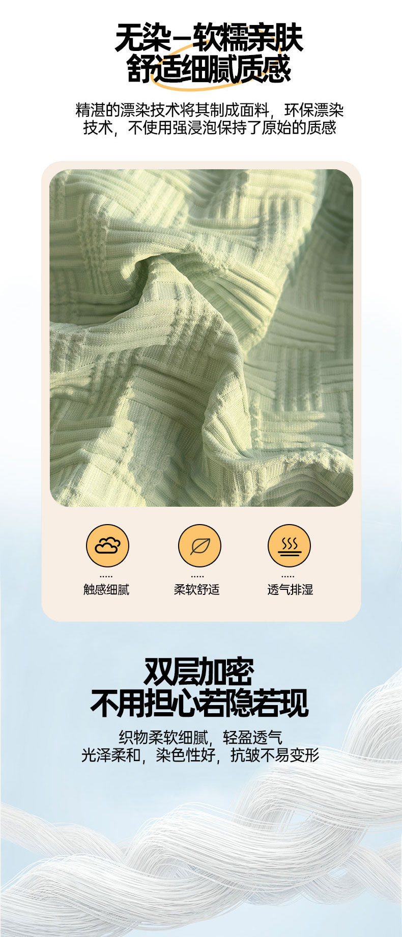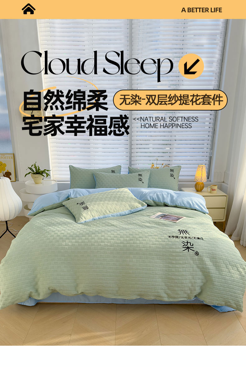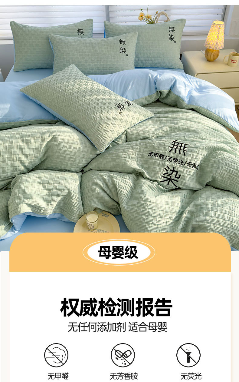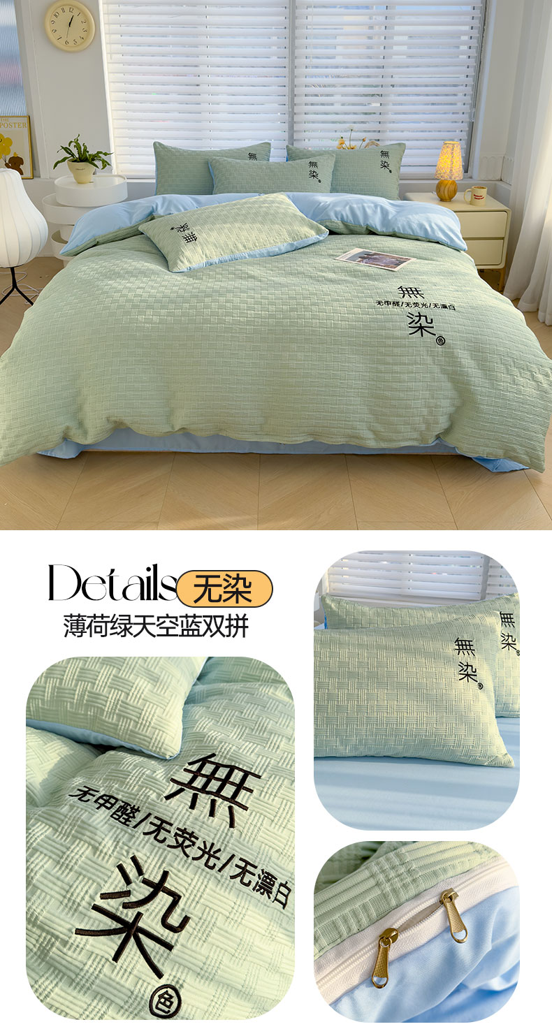 当前位置: 91家纺网 > 商品网购 > 床品套件 > 四件套 > 提花四件套 > 灰鲸 2025新款A类双层纱无染提花四件套 无染-薄荷绿天空蓝双拼