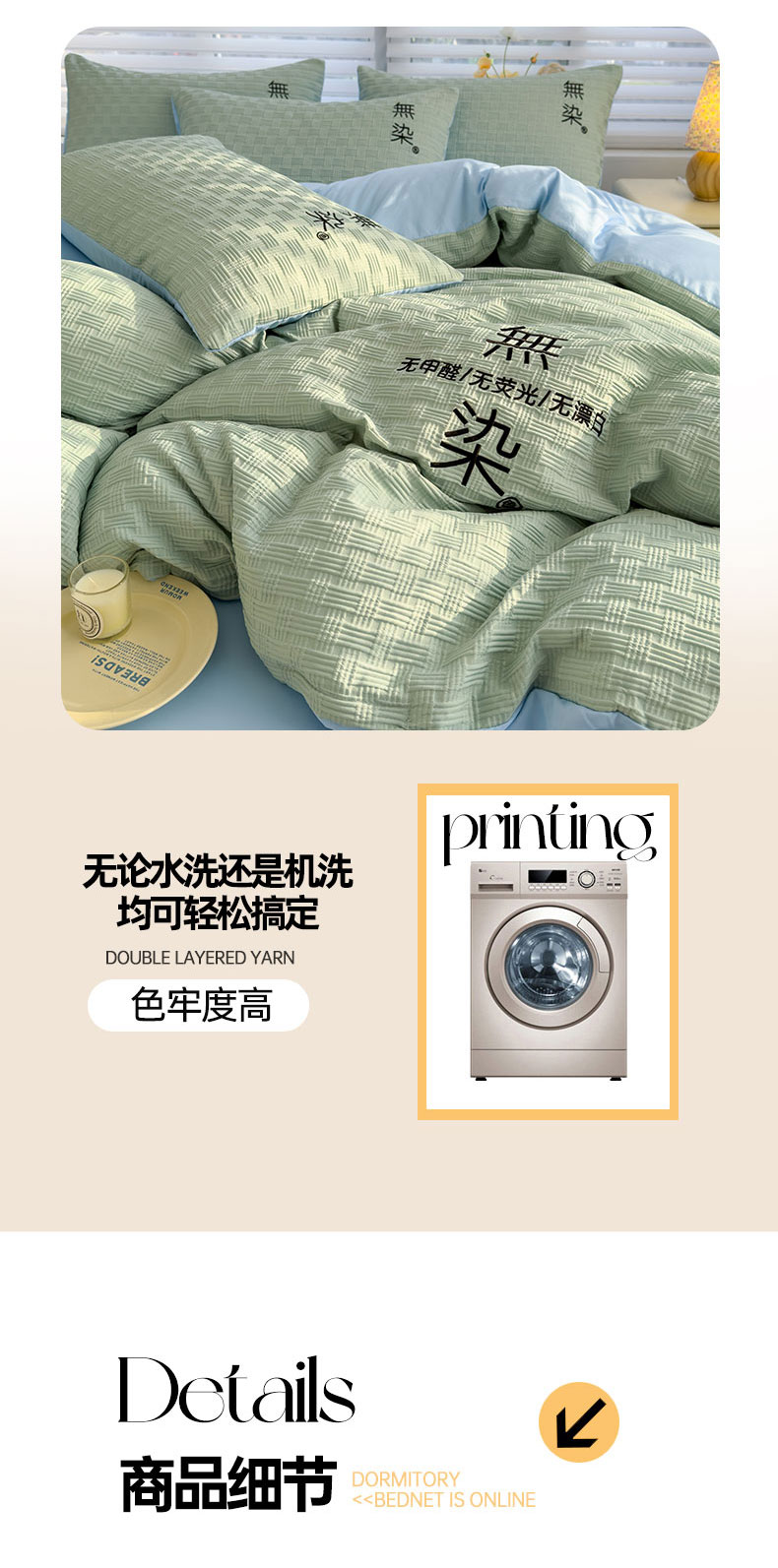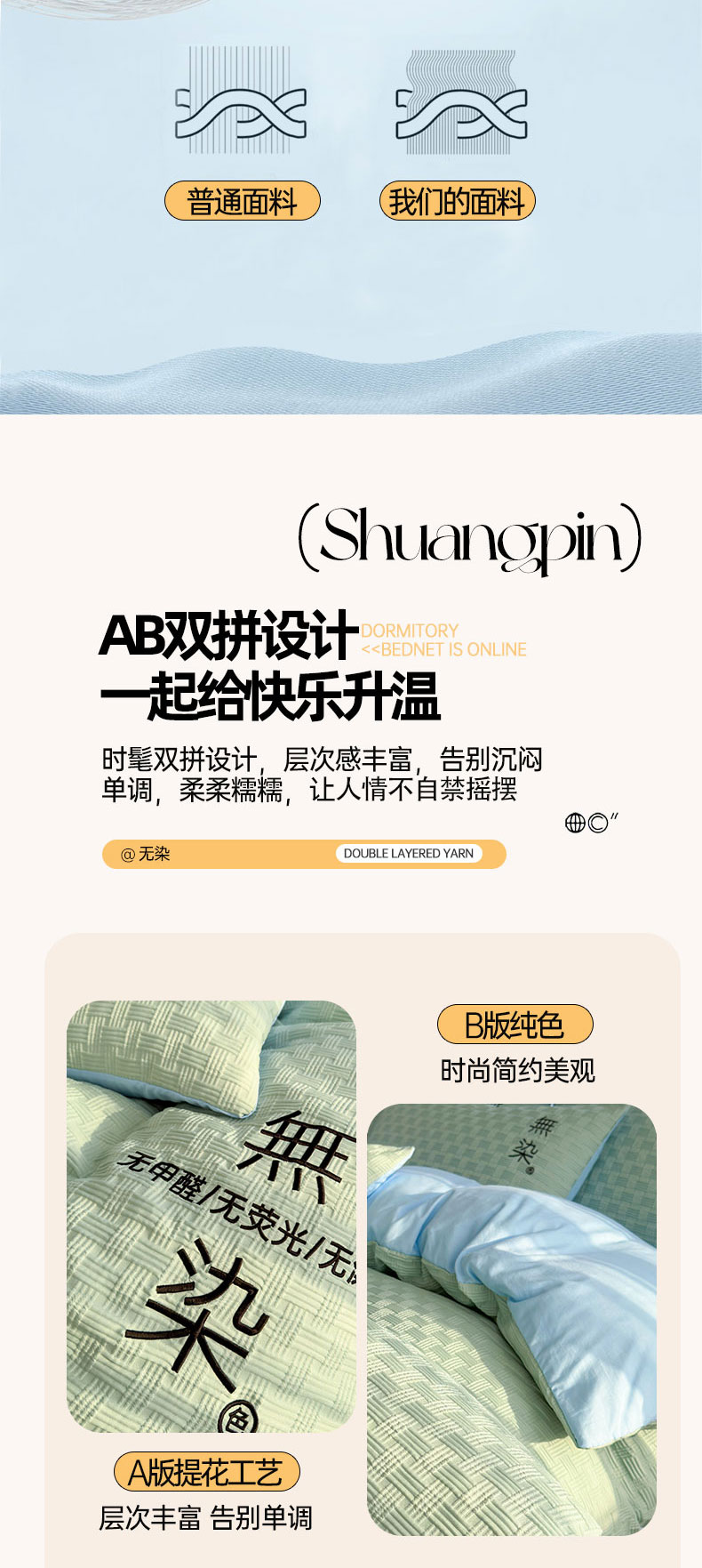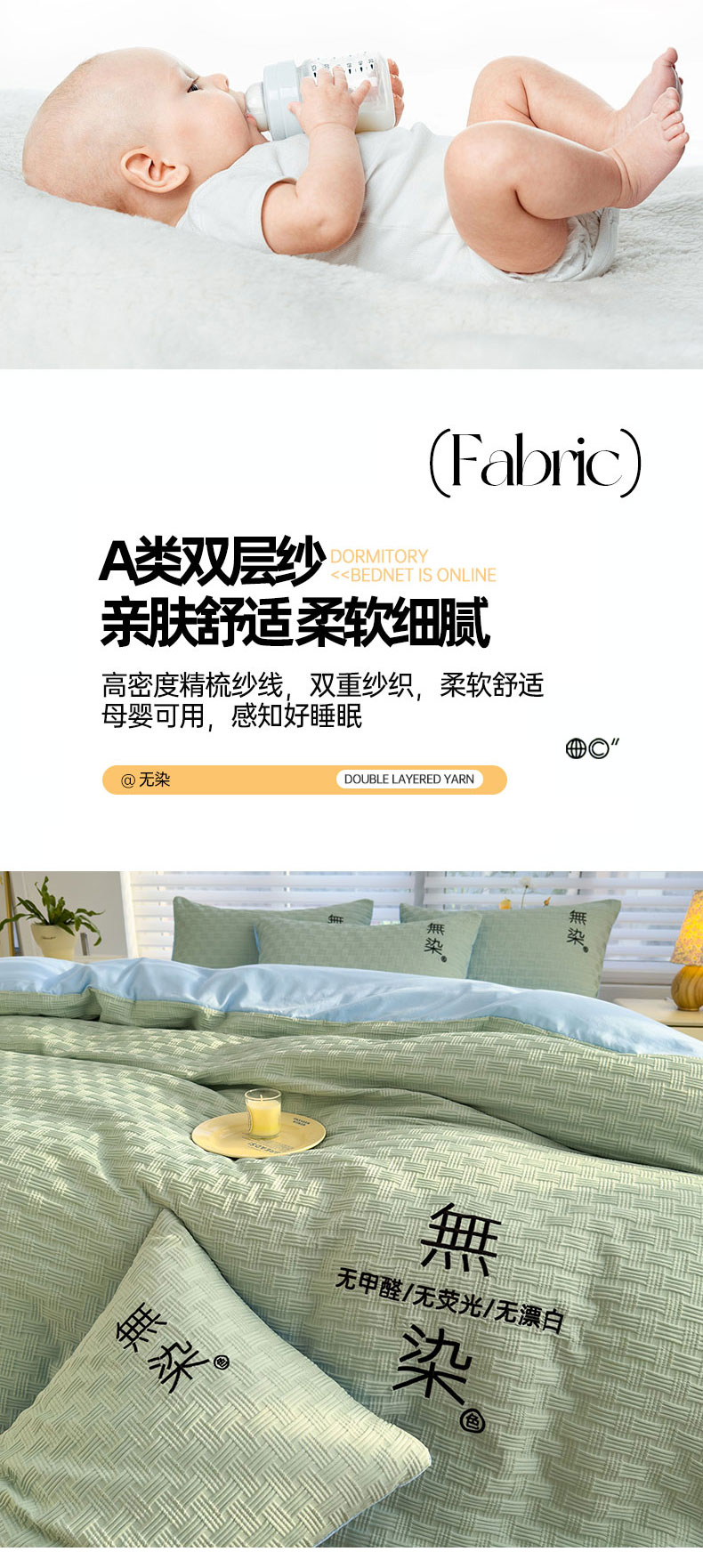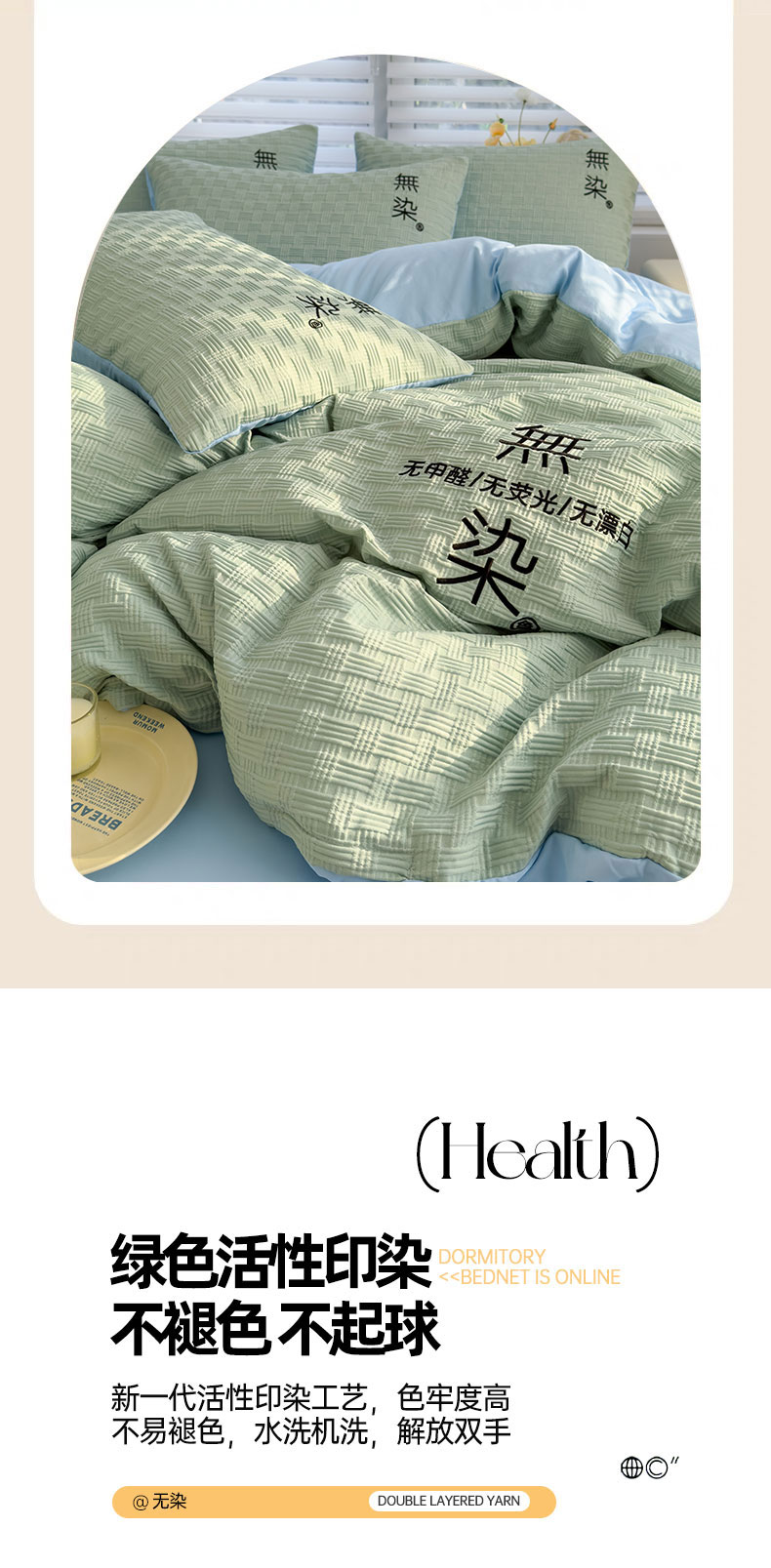 当前位置: 91家纺网 > 商品网购 > 床品套件 > 四件套 > 提花四件套 > 灰鲸 2025新款A类双层纱无染提花四件套 无染-薄荷绿天空蓝双拼