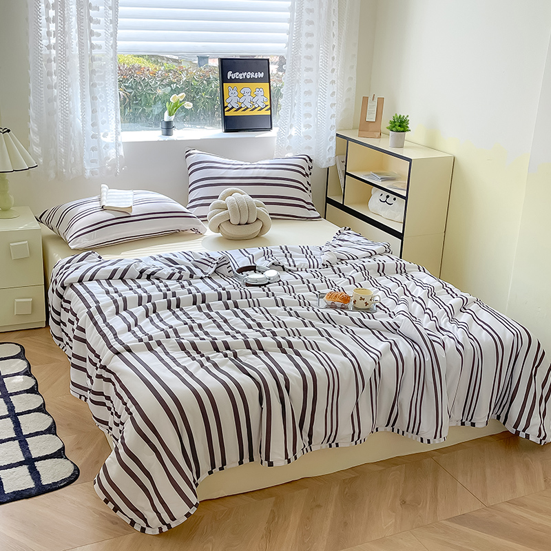 Mr.pig猪先生水洗棉 2024新款5A抗菌针织棉印花夏被 黑条双拼