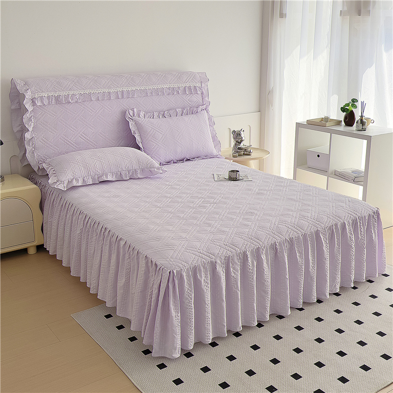 十个点 2024新款亲肤水洗泡泡棉夹棉绗缝床裙款单品及套件 媚紫