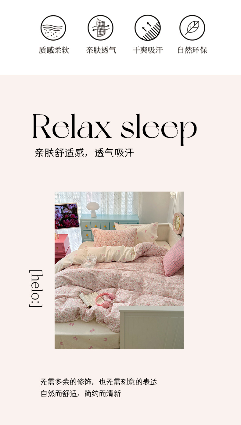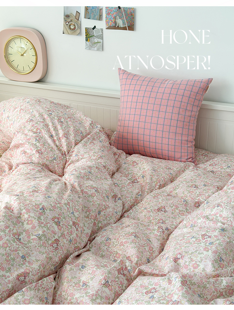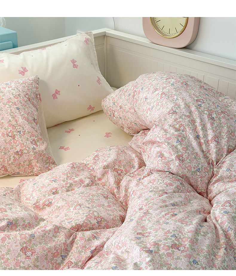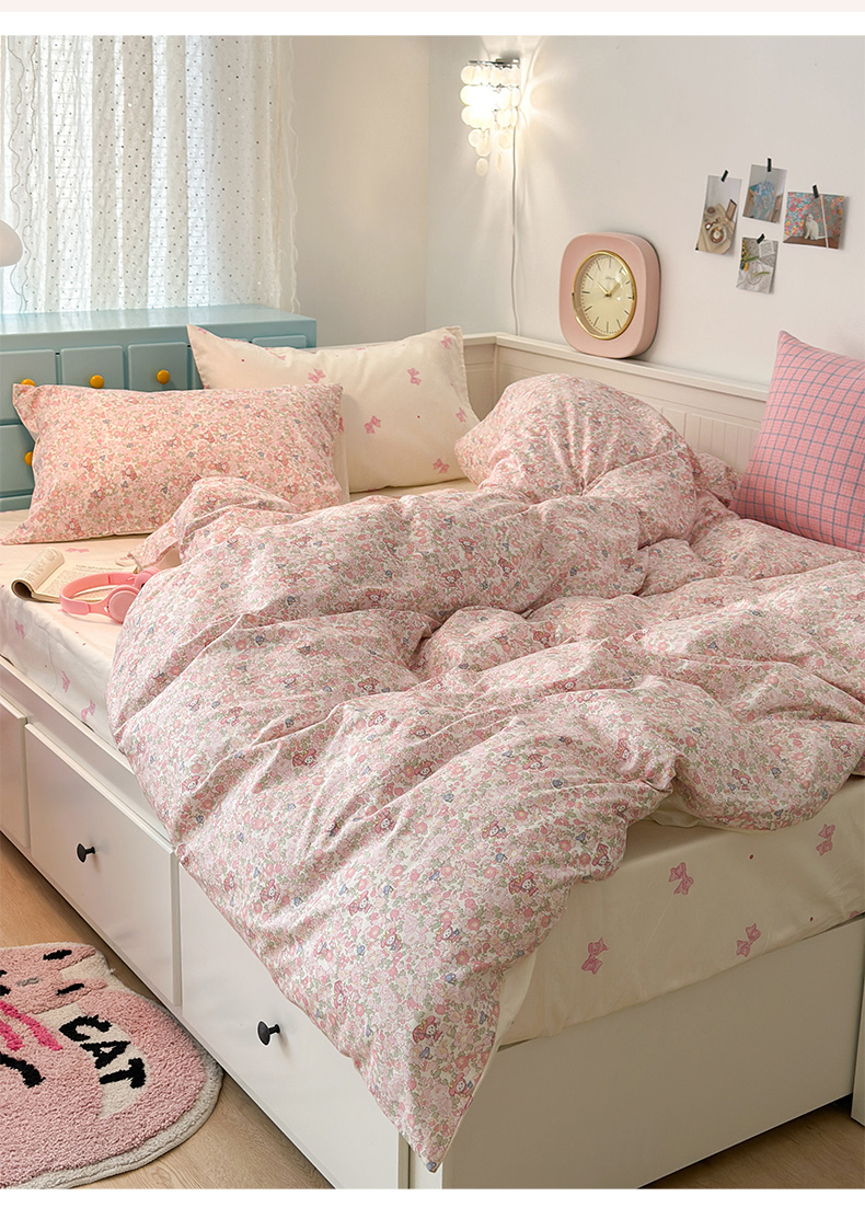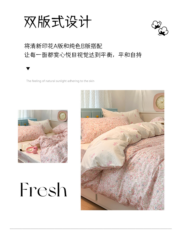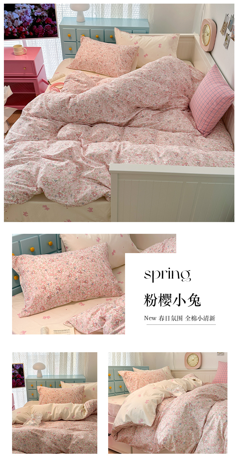 商品名称:昔可 新款春日氛围感小清新亲肤四件套 粉樱小兔