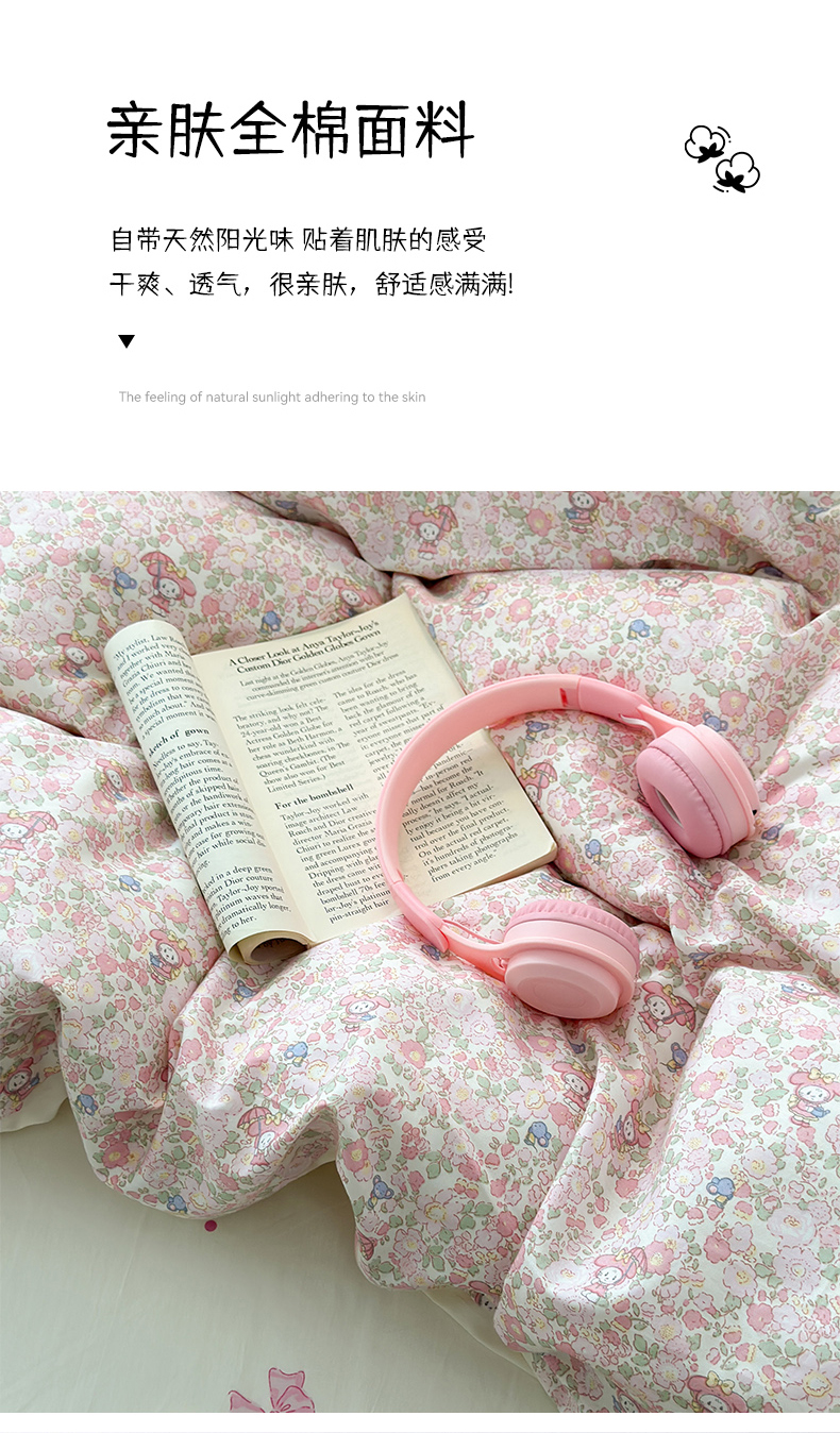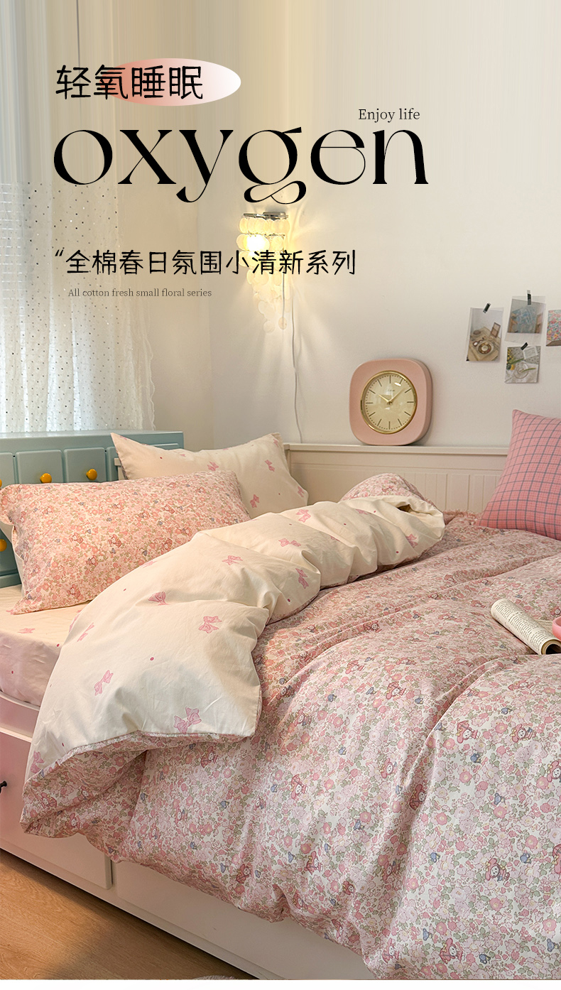 昔可 新款春日氛围感小清新亲肤四件套 粉樱小兔