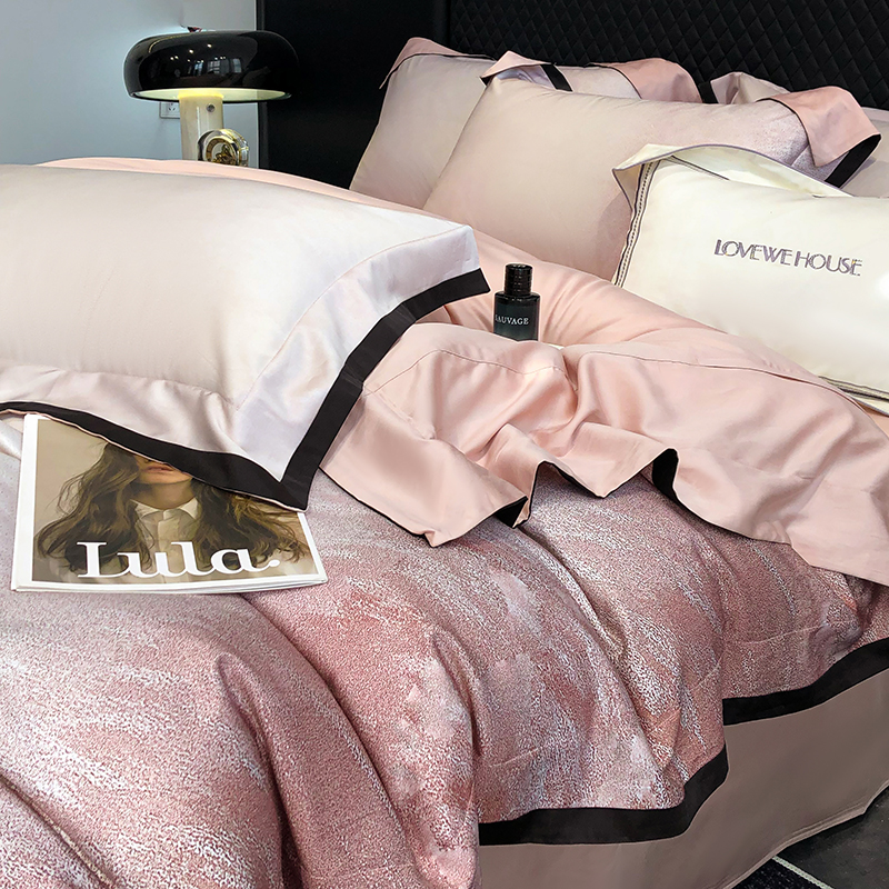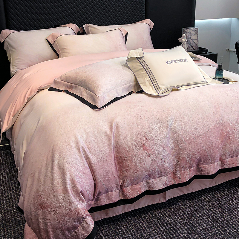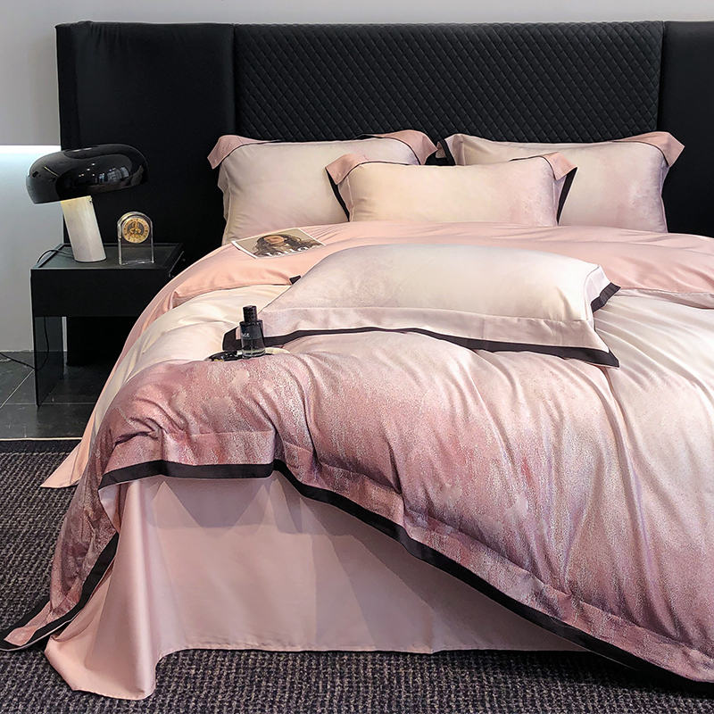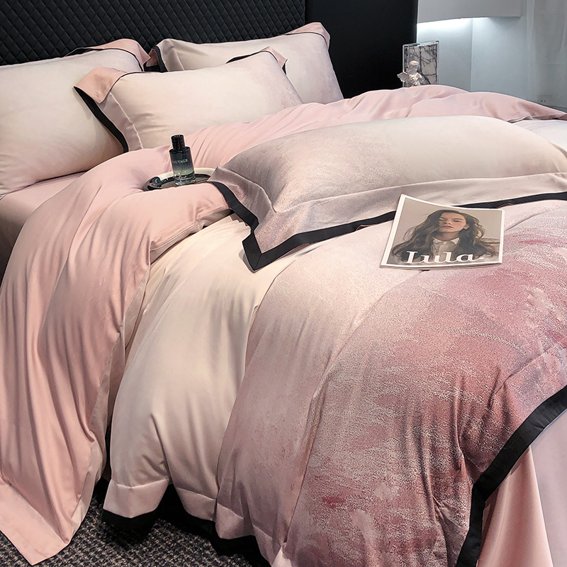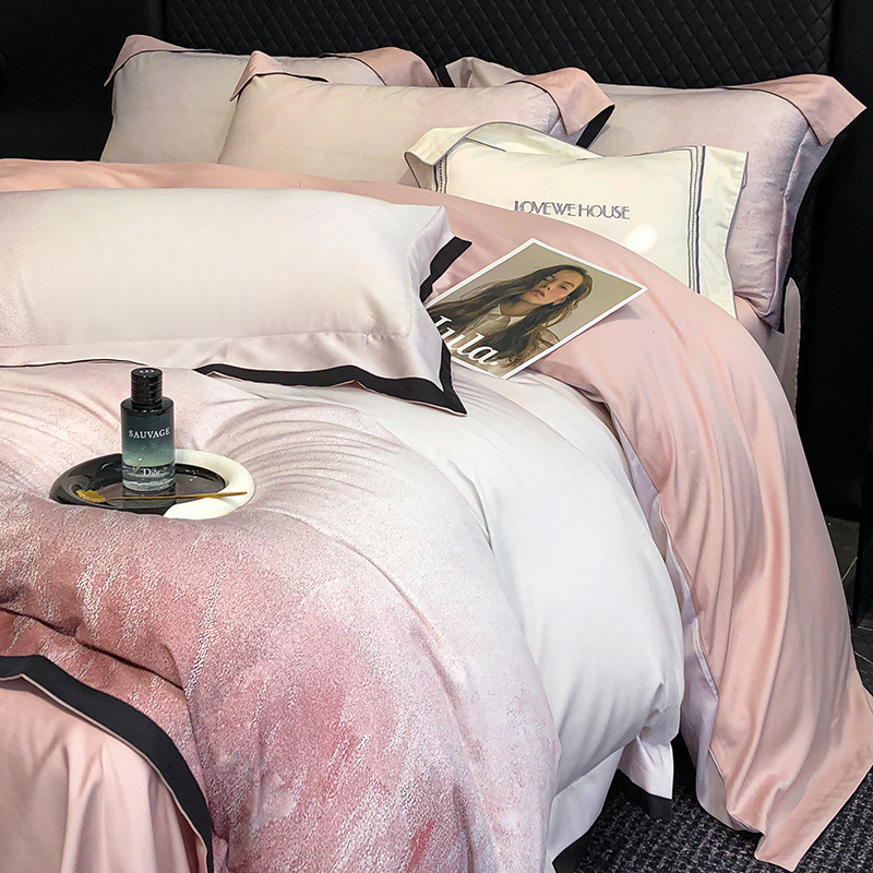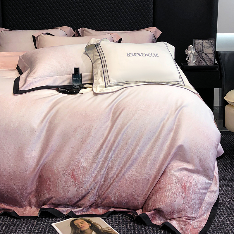 (总)若未家居 LOVEWE HOUSE 2026新款100S数码印花轻奢风四件套-波澜,波澜 爵士灰,波澜 公主粉,波澜 贝拉橘