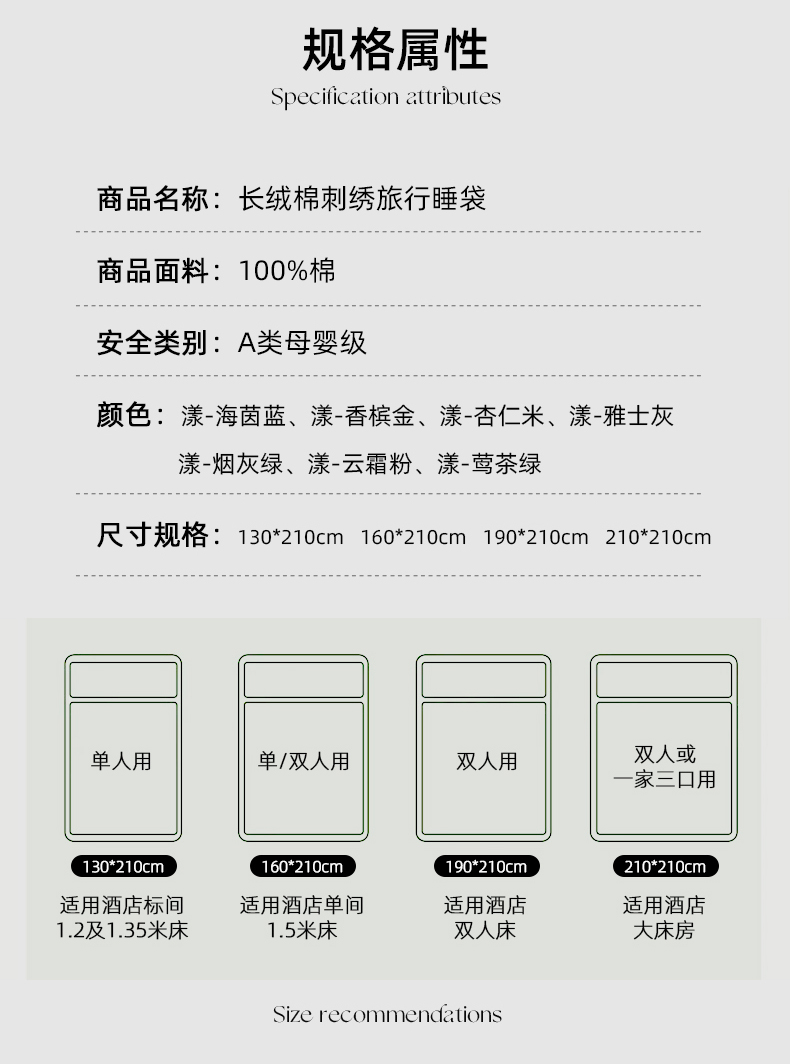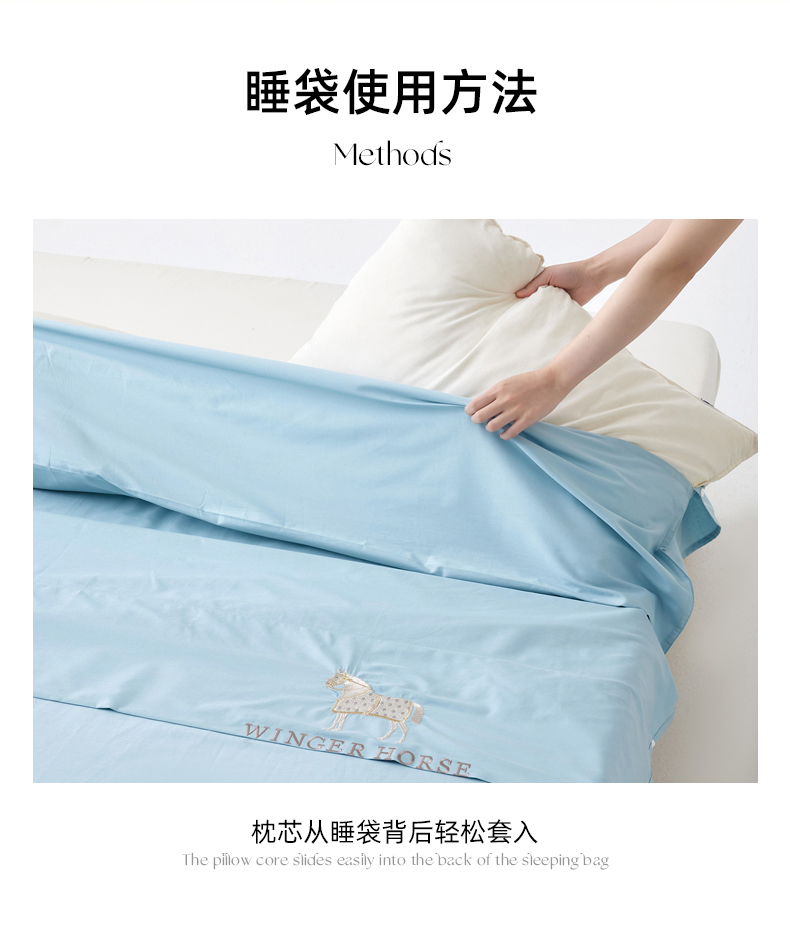 商品名称:千朵森 2024新款A类长绒棉刺绣睡袋 漾-海茵蓝