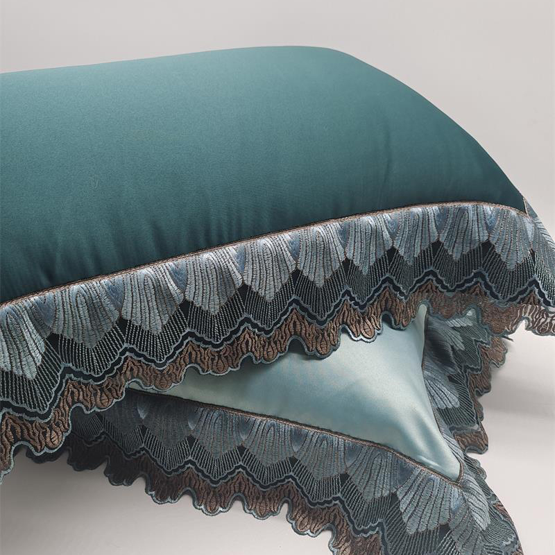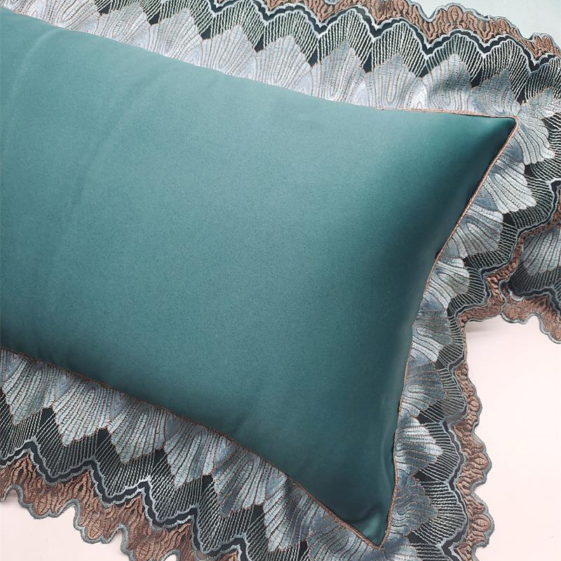 澜屿 24款高精密蕾丝宽边小抱枕头枕芯腰靠枕 深绿