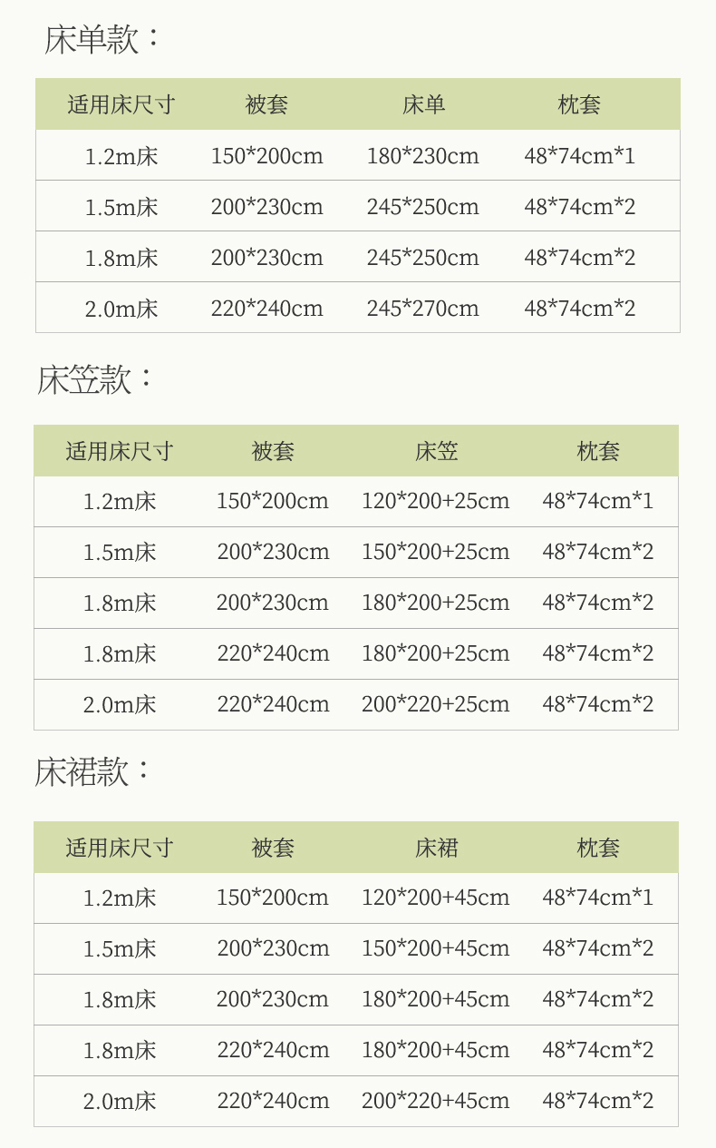 被套200*230床裙1.5枕套一对 | ¥180.00 |