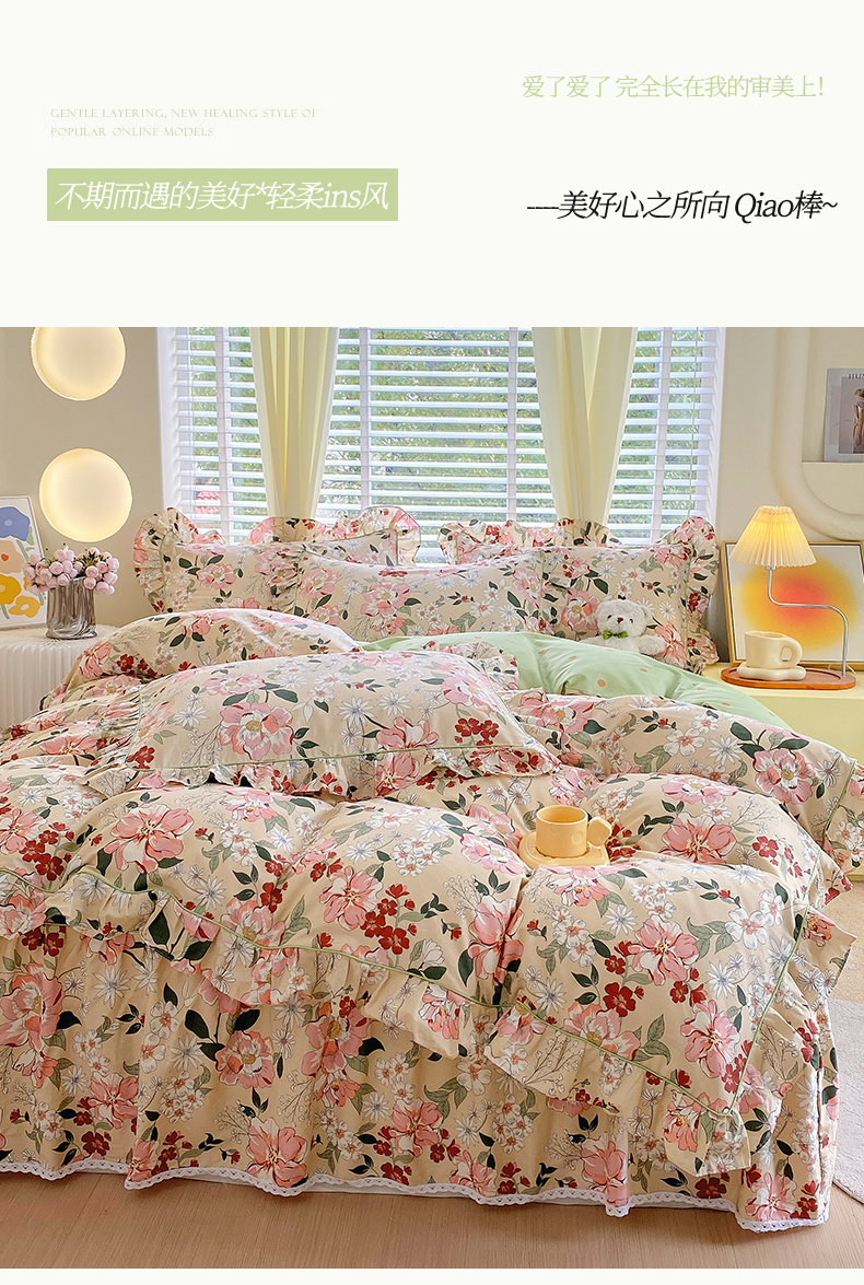 当前位置: 91家纺网 > 商品网购 > 床品套件 > 四件套 > 全棉普通四件套 > 宝齐莱2024新款全棉13372韩版印花四件套 春意盎然