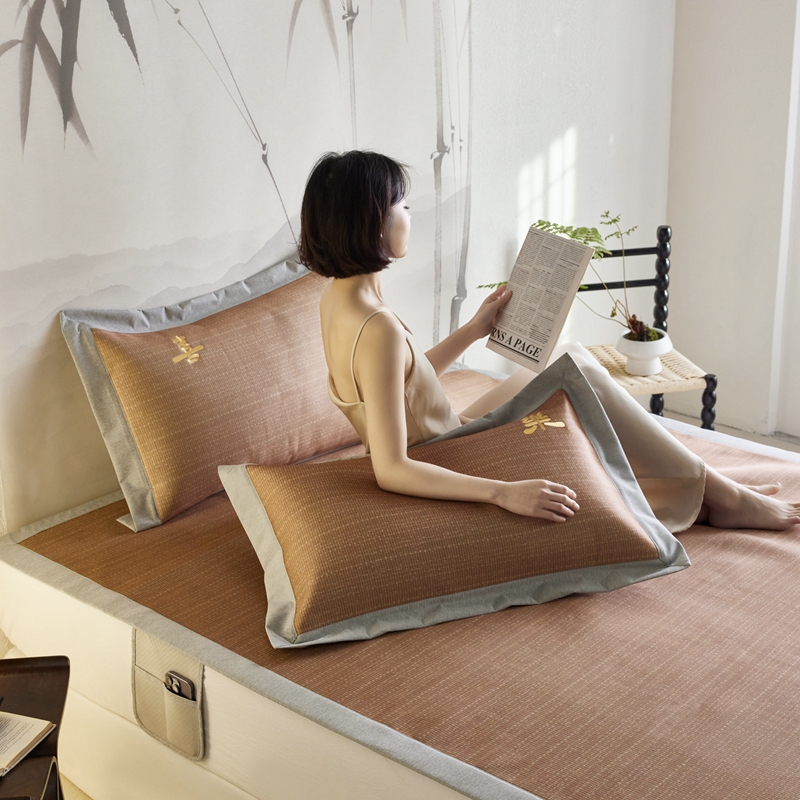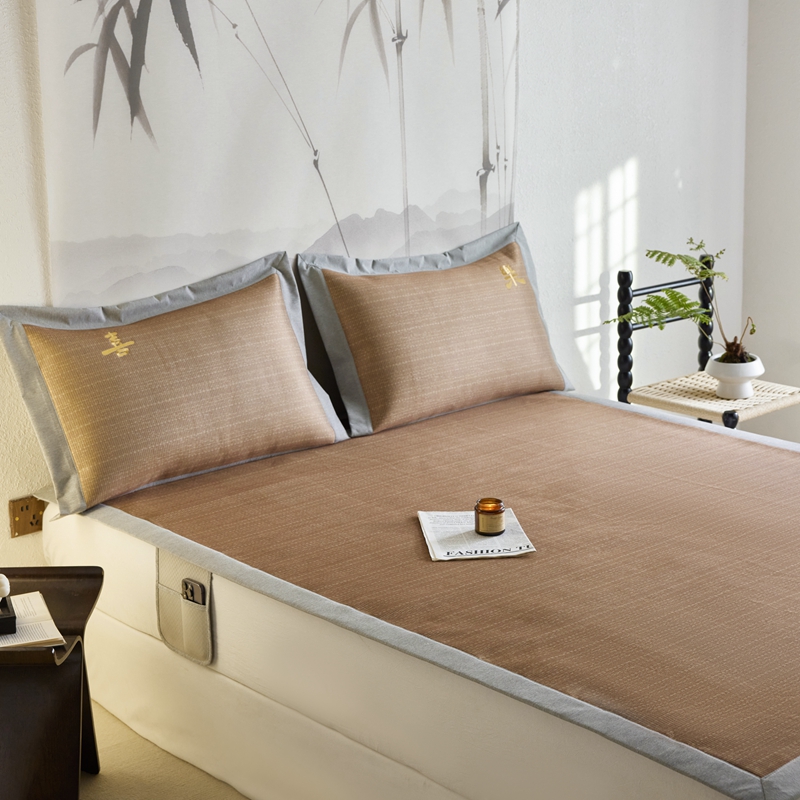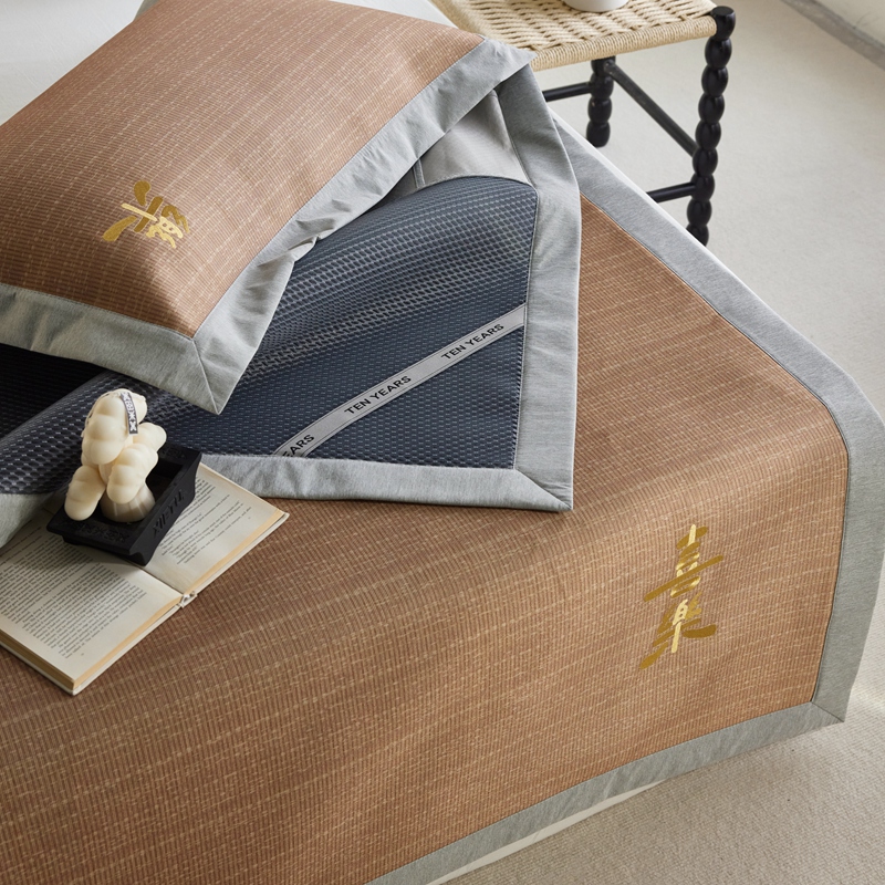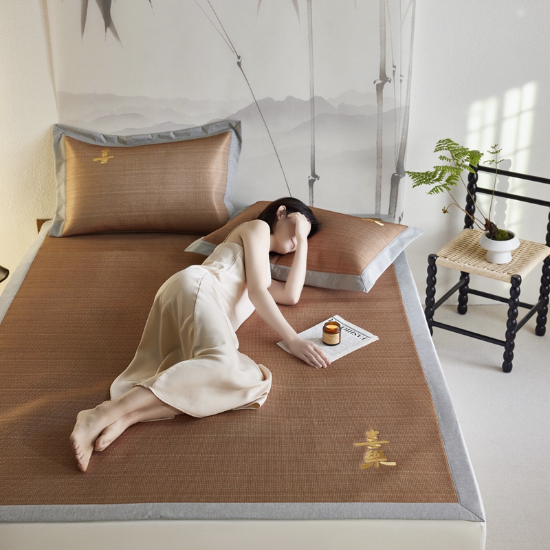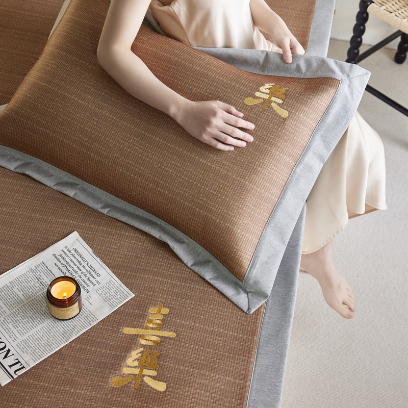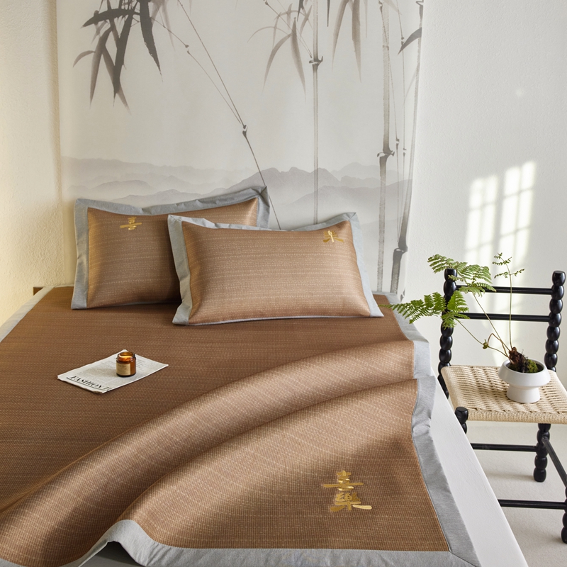 时年家纺 2024新款喜乐刺绣冰藤席 喜乐咖