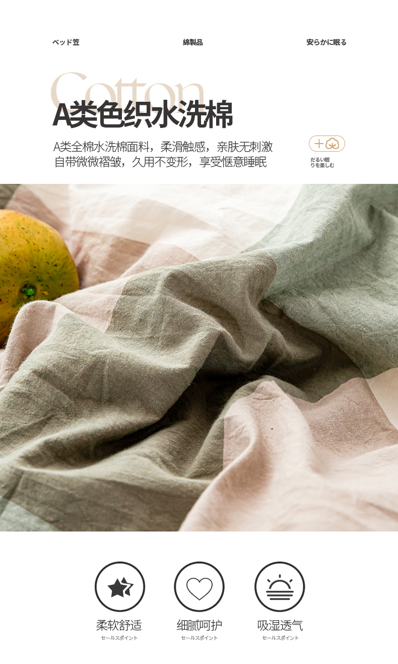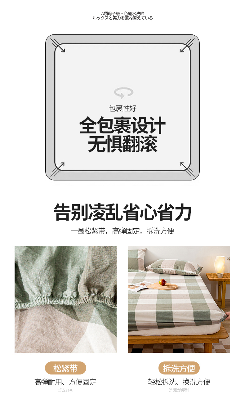 商品名称:萌飞 2024新款A类色织水洗棉床笠 绿大格