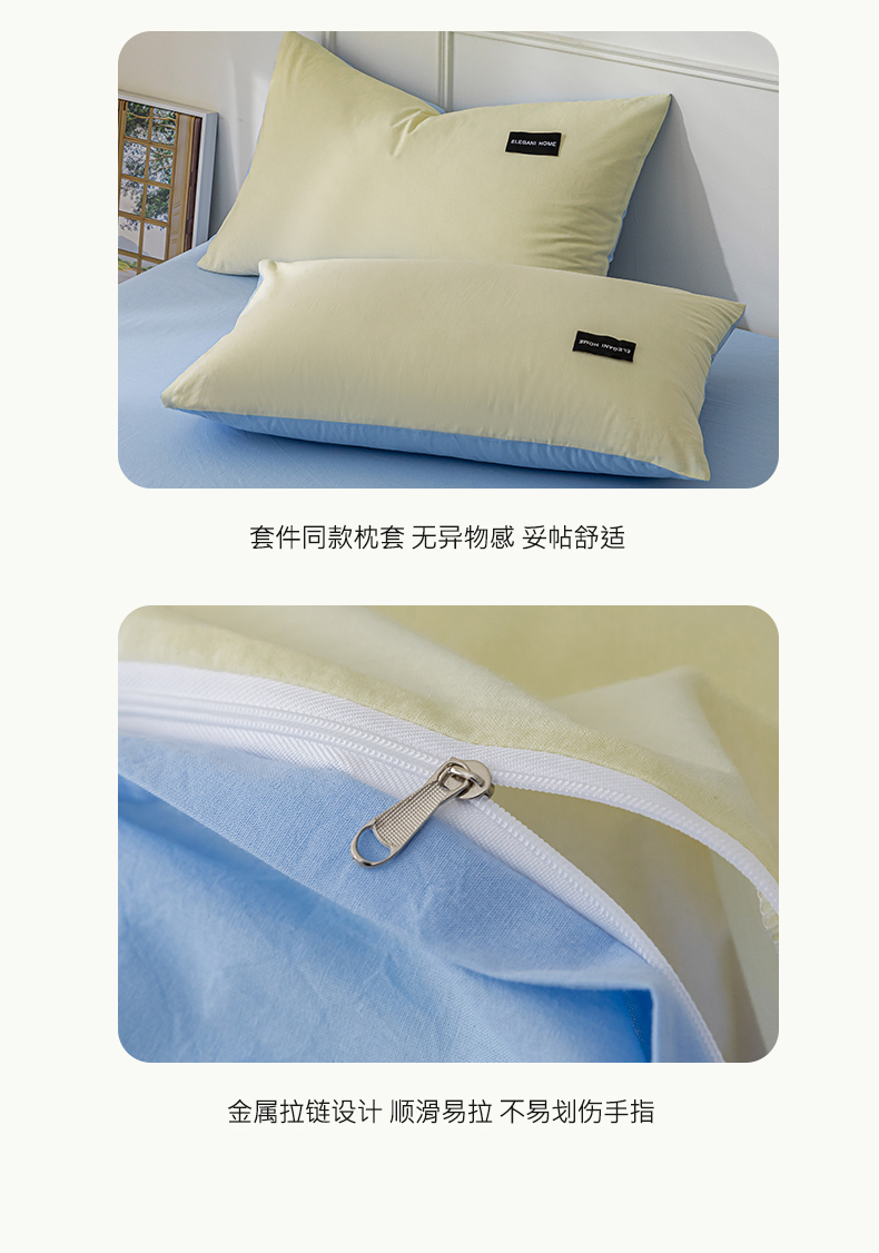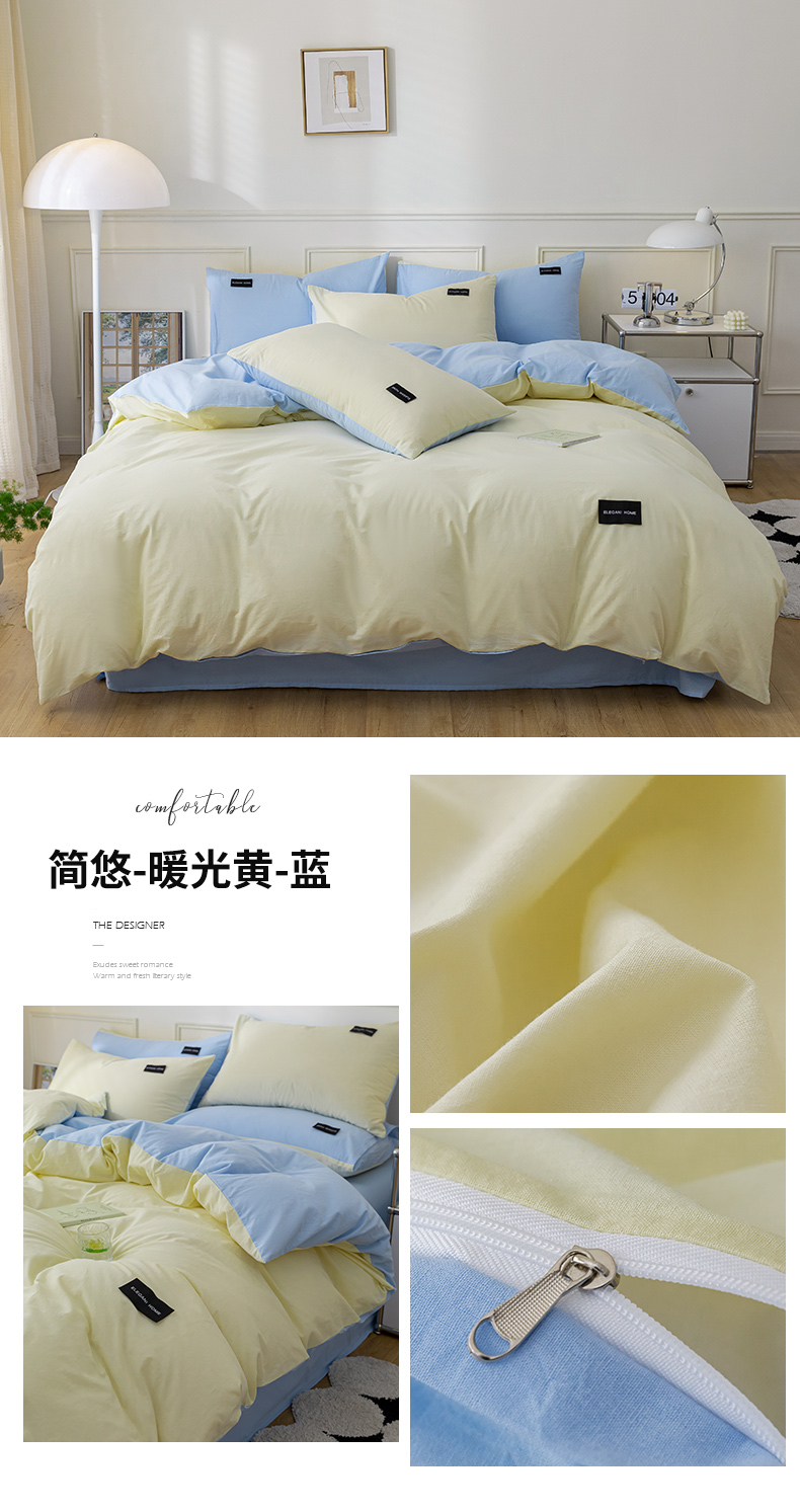 九沐良品 新款纯色双拼四件套 简悠-暖光黄-蓝