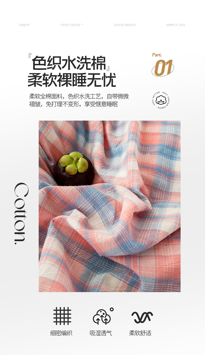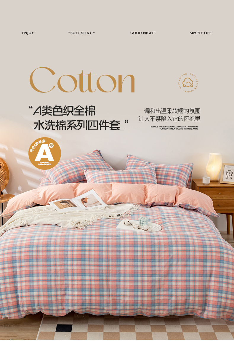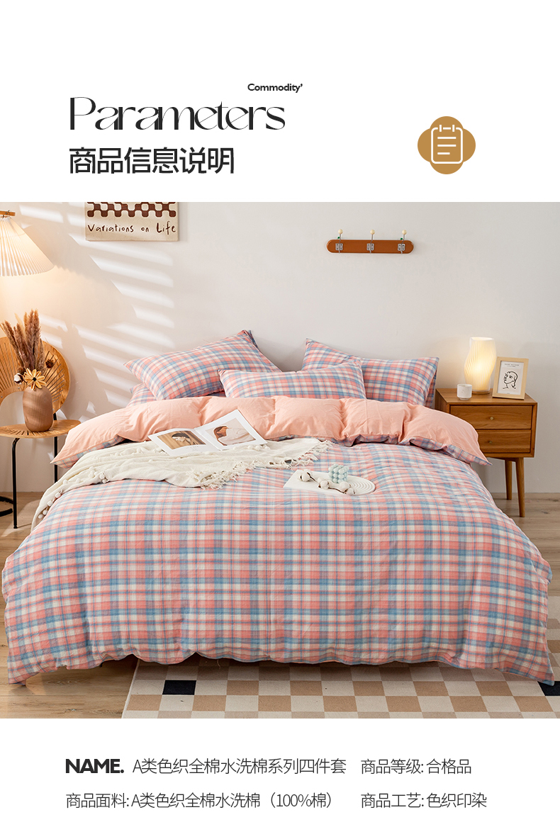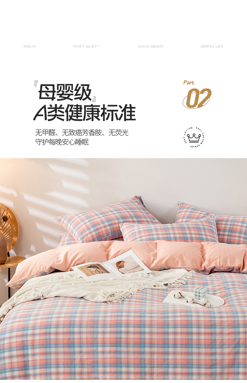 当前位置: 91家纺网 > 商品网购 > 床品套件 > 四件套 > 水洗棉四件套 > 九沐良品 新款A类色织水洗棉四件套 星空粉