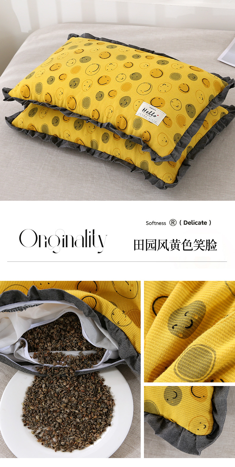 当前位置: 91家纺网 > 商品网购 > 枕头/枕芯/保健枕/颈椎枕 > 普通枕芯 > 梦叶草 2024新款枕芯全棉砂洗田园风系列荷叶边35×55cm全荞麦枕头 田园风黄色笑脸