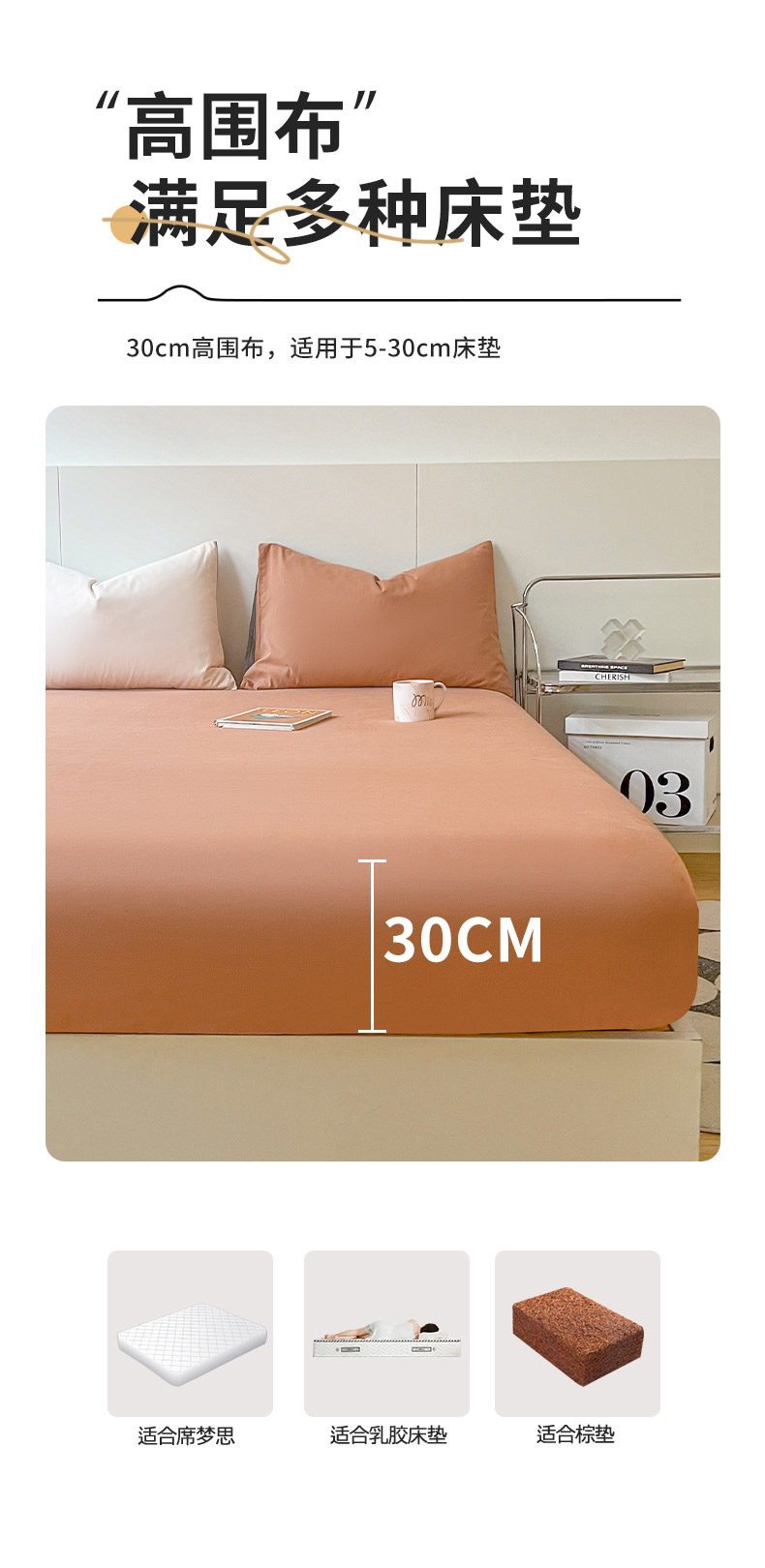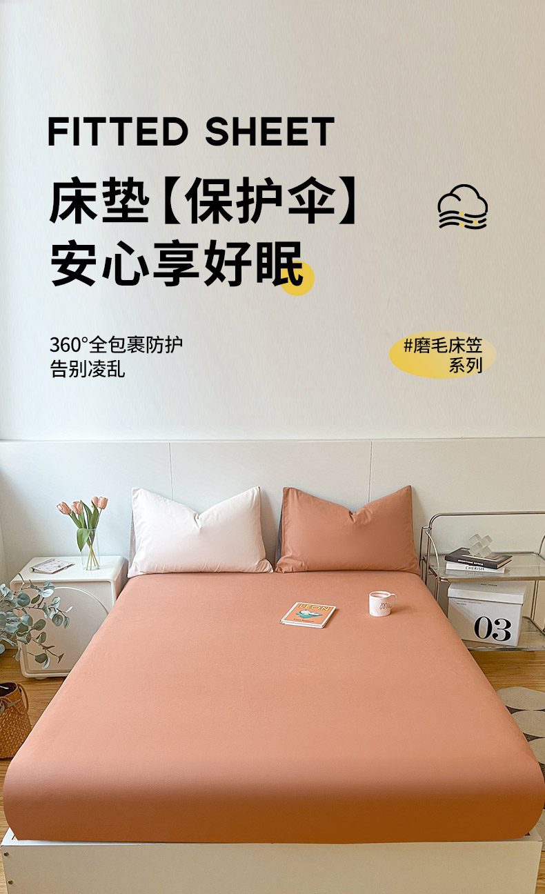 米粒家纺 2024新款纯色磨毛床笠 甜曲奇