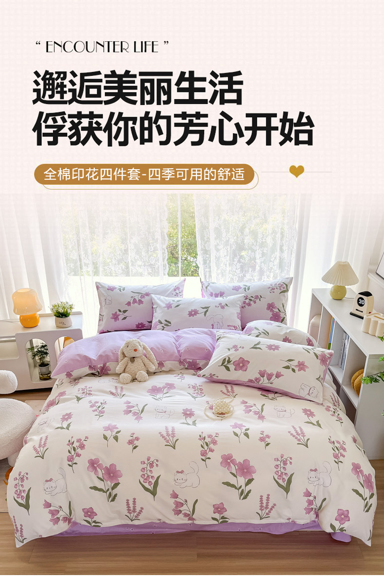 (总)世爵 2025新款全棉印花小清新套件系列-四件套,艾薇儿,爱枝花语,繁花,风的印季,护花使者,花样年华,花叶倾城-粉,花叶倾城-蓝,花园派对-米,吉祥兔,静看花颜,凯蒂猫-米,可爱联盟,洛丽塔,漫步云端,木棉花-绿,南瓜派,浓情玫瑰,清甜草莓,时光序曲,水蜜桃,天使之心,田园趣事,星空印记,尤里卡,云萌小兔,竹林熊猫