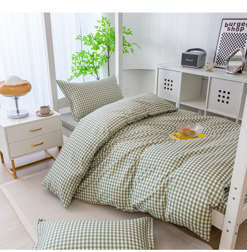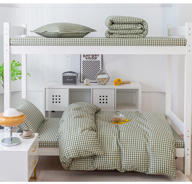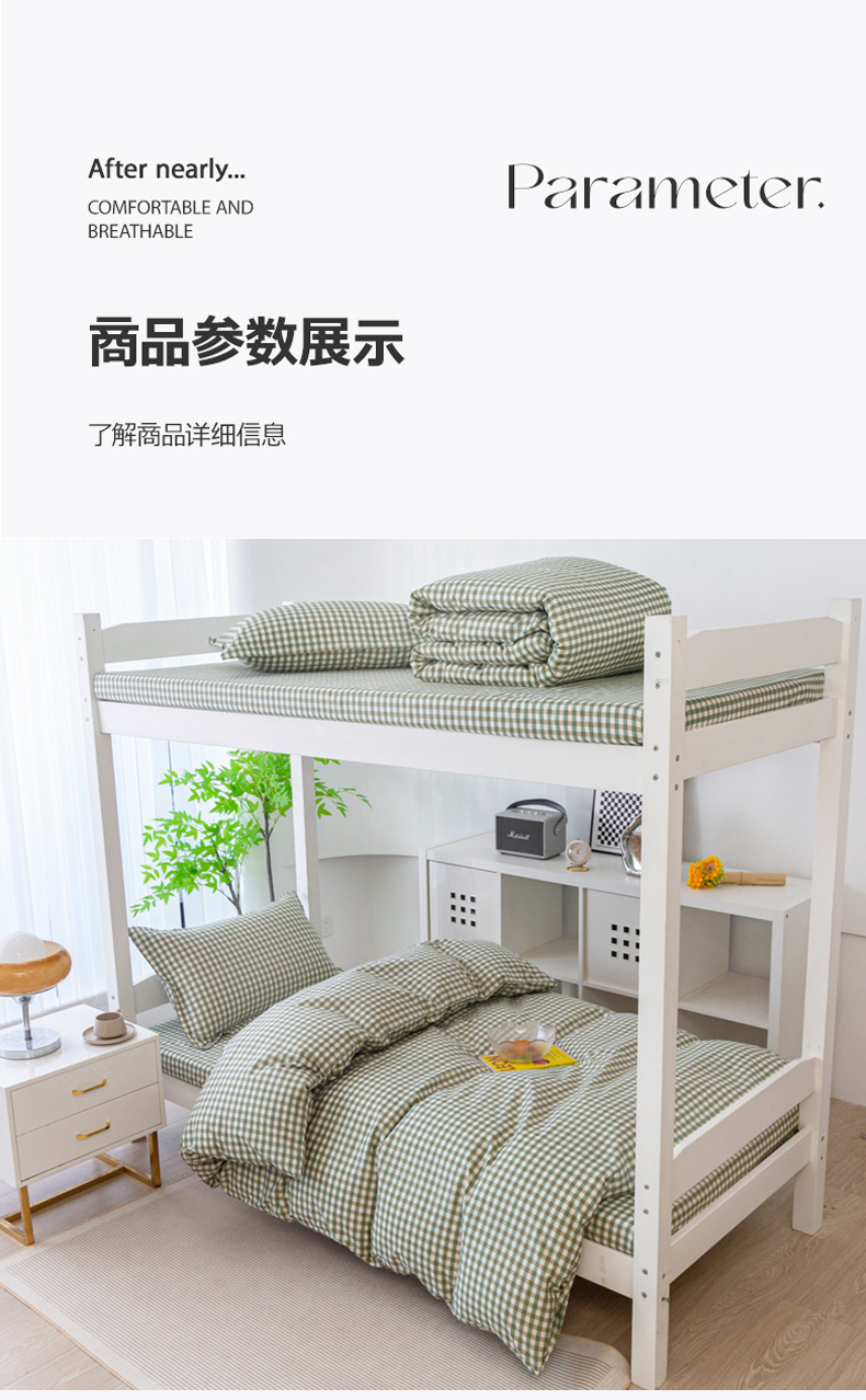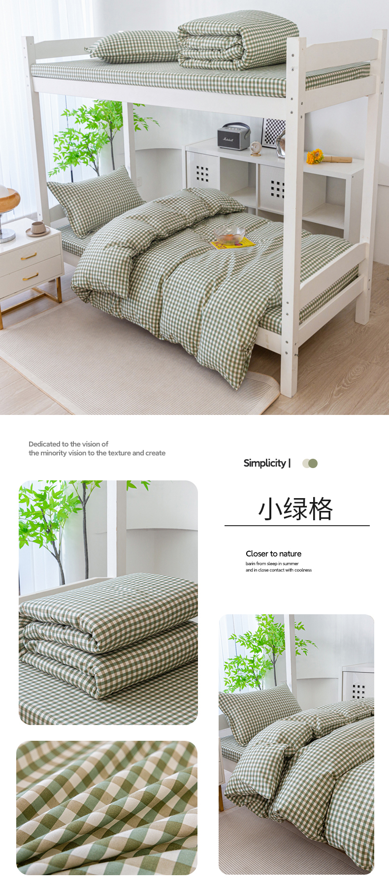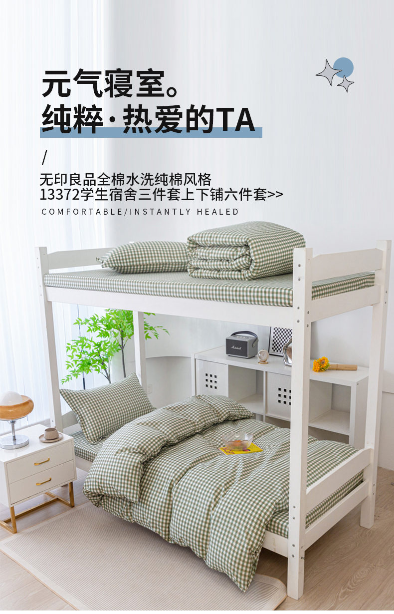 商品名称:窝美居家纺 2024新款无印良品全棉水洗纯棉风格13372学生宿舍三件套上下铺六件套 小绿格