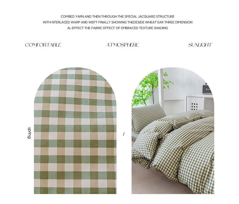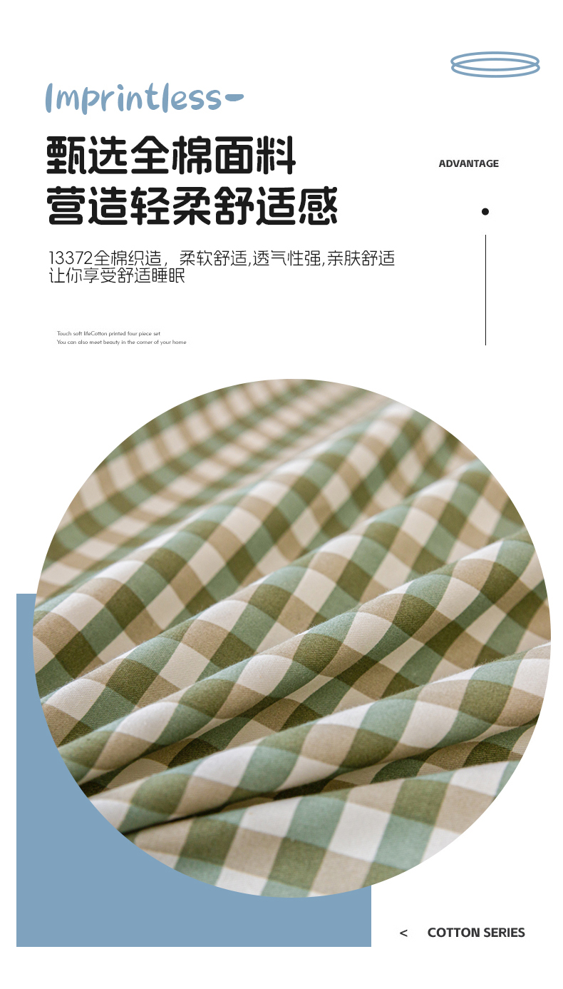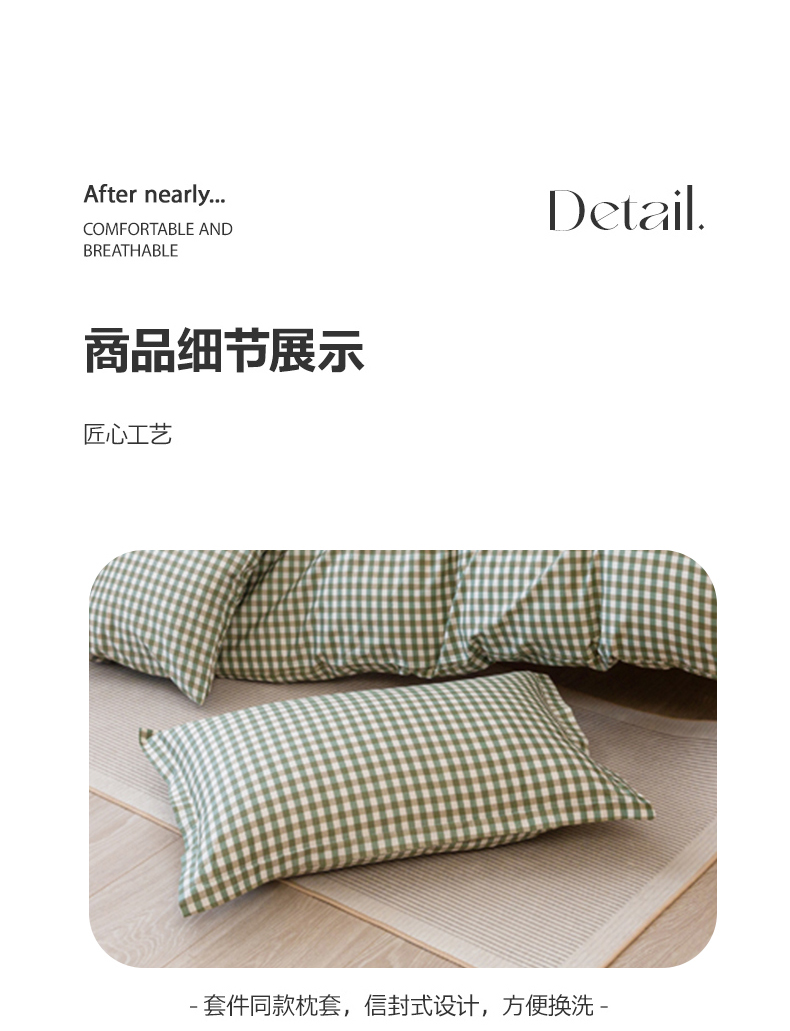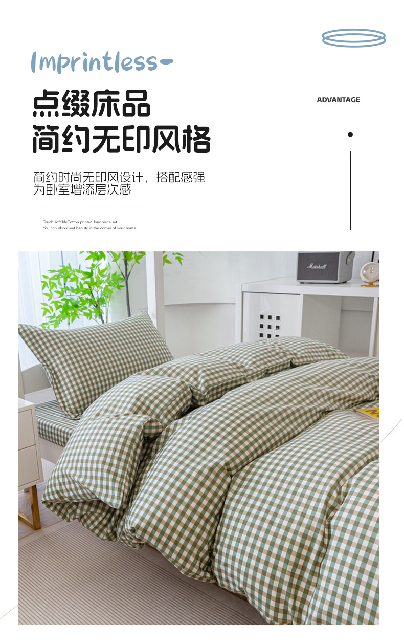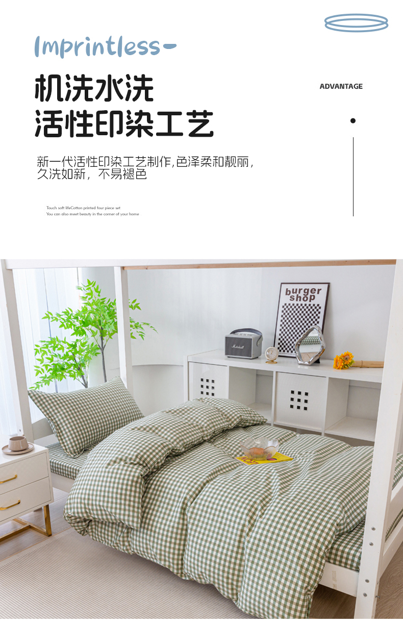 商品名称:窝美居家纺 2024新款无印良品全棉水洗纯棉风格13372学生宿舍三件套上下铺六件套 小绿格