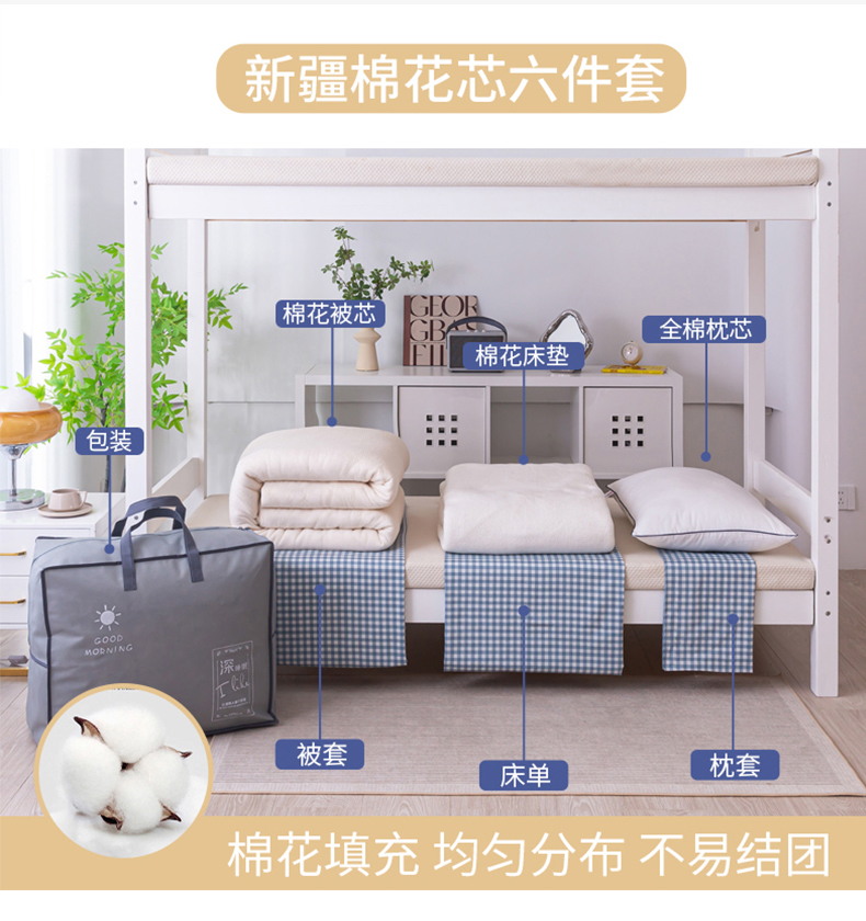 窝美居家纺 2024新款无印良品全棉水洗纯棉风格13372学生宿舍三件套上下铺六件套 小蓝格,小蓝格