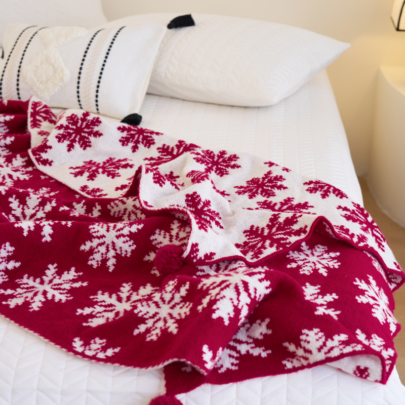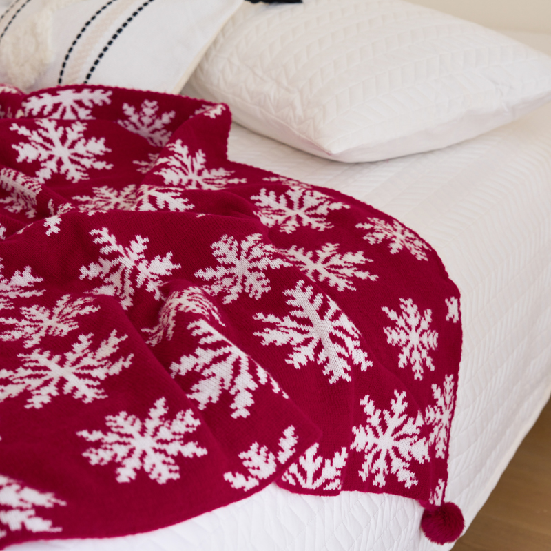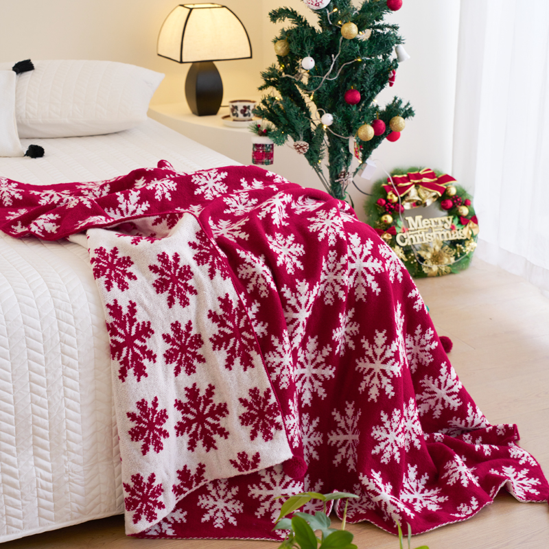 苏艺针织盖毯 2024新款针织圣诞新年款毛毯 冰雪雪花