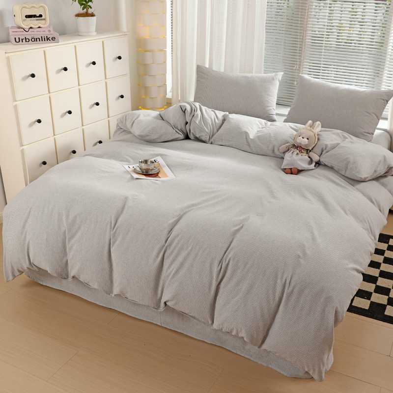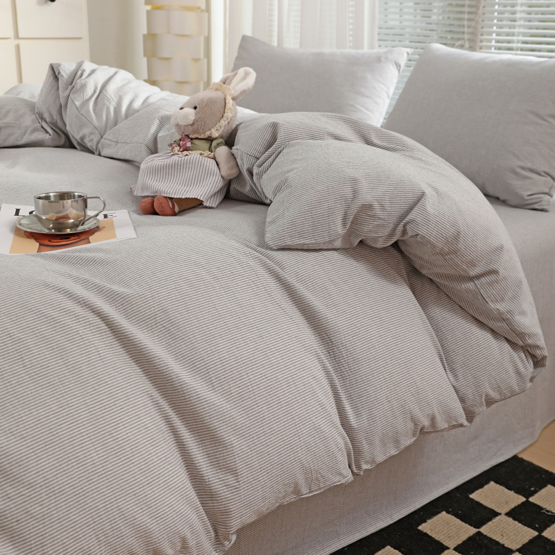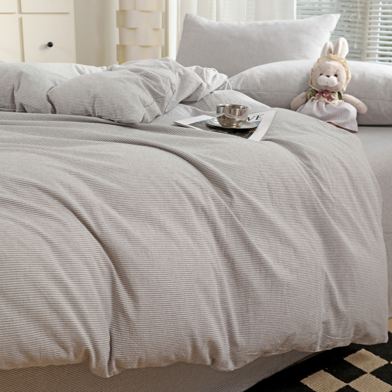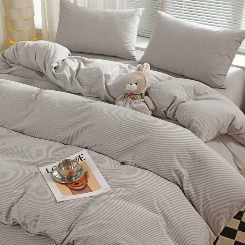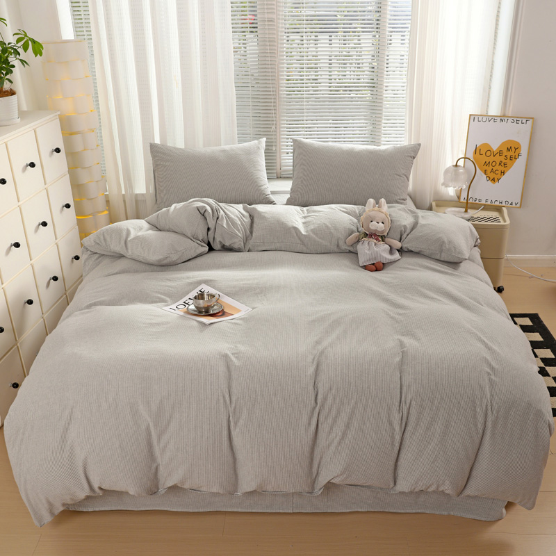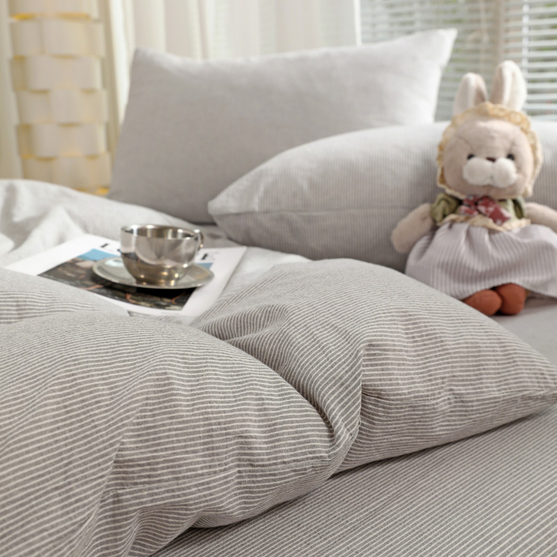 商品名称:呗旺鹿 2024新款A类40支全棉色织水洗棉四件套全棉四件套纯棉四件套无印风 时尚简约灰