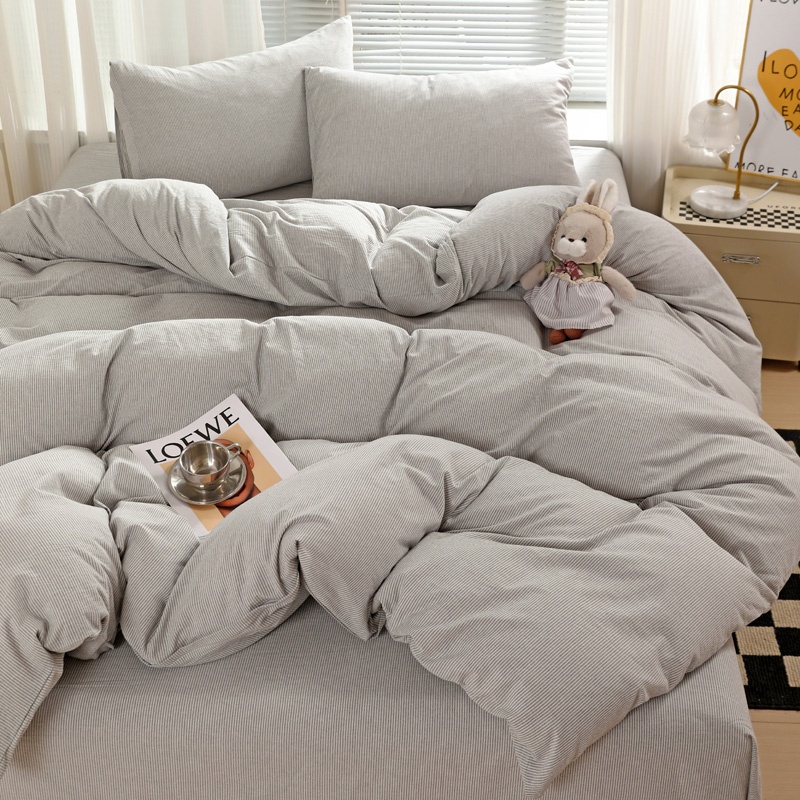 呗旺鹿 2024新款A类40支全棉色织水洗棉四件套全棉四件套纯棉四件套无印风 时尚简约灰