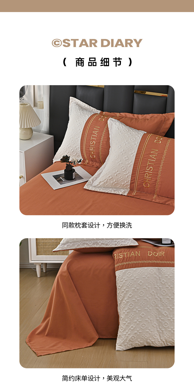 商品名称:富宁家纺 2025新款直播爆款水洗棉磨毛刺绣浮雕四件套-慕兰迪(提供买家秀) 爱玛橙