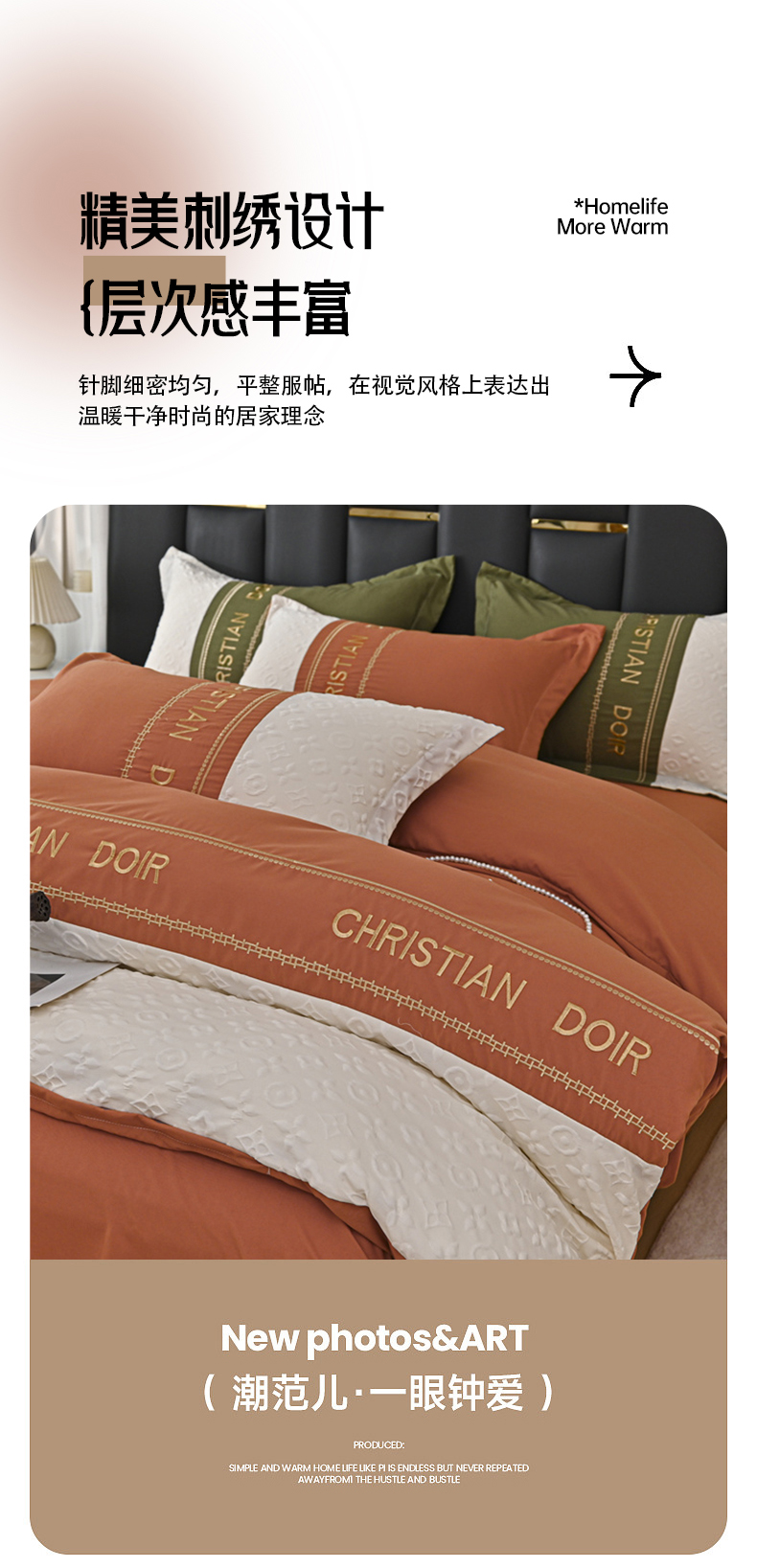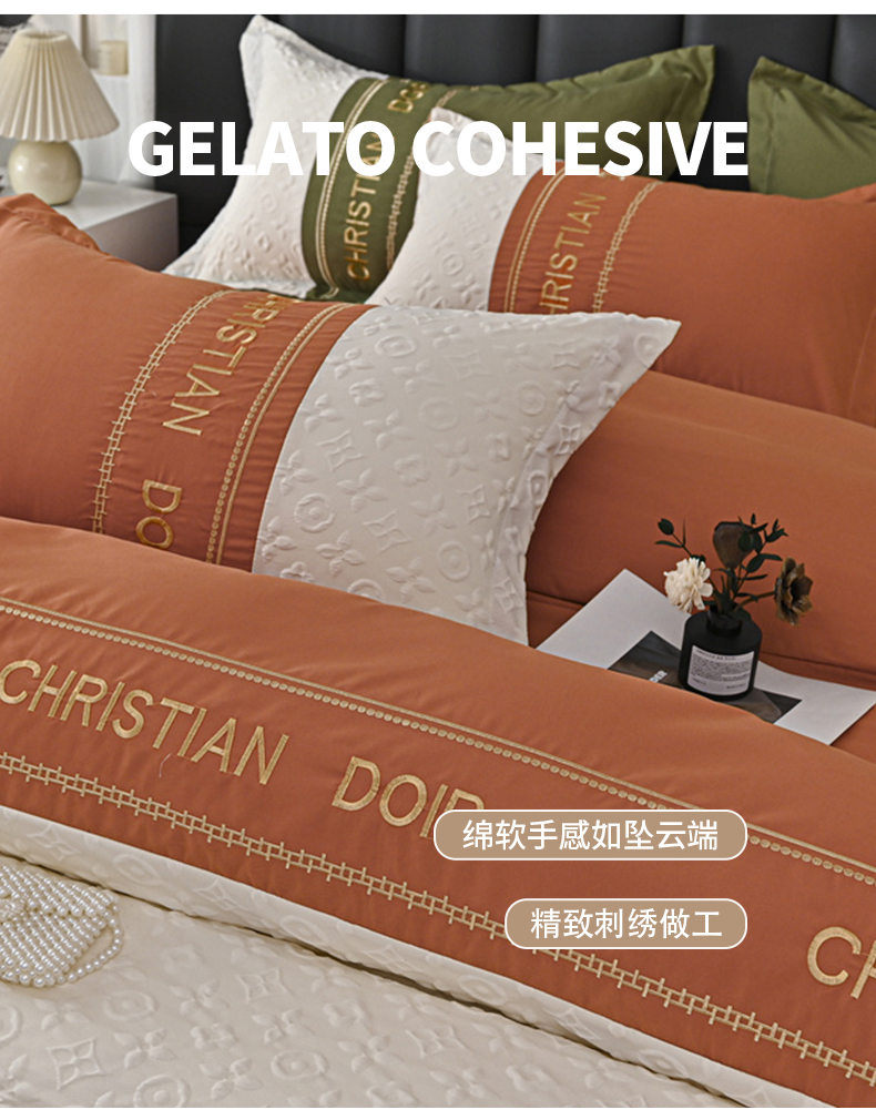 (总)富宁家纺 2025新款直播爆款水洗棉磨毛立体浮雕刺绣四件套-卡诗,橙叶子,灰叶子,粉叶子,绿叶子,蓝叶子