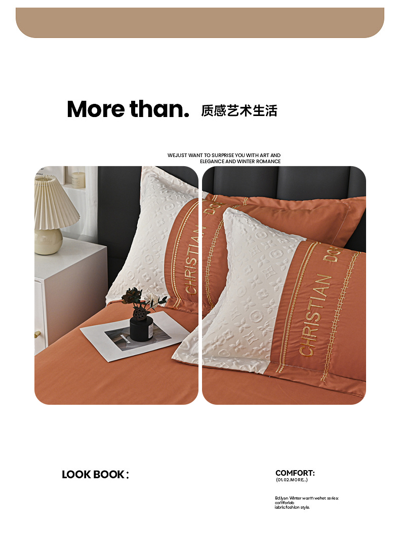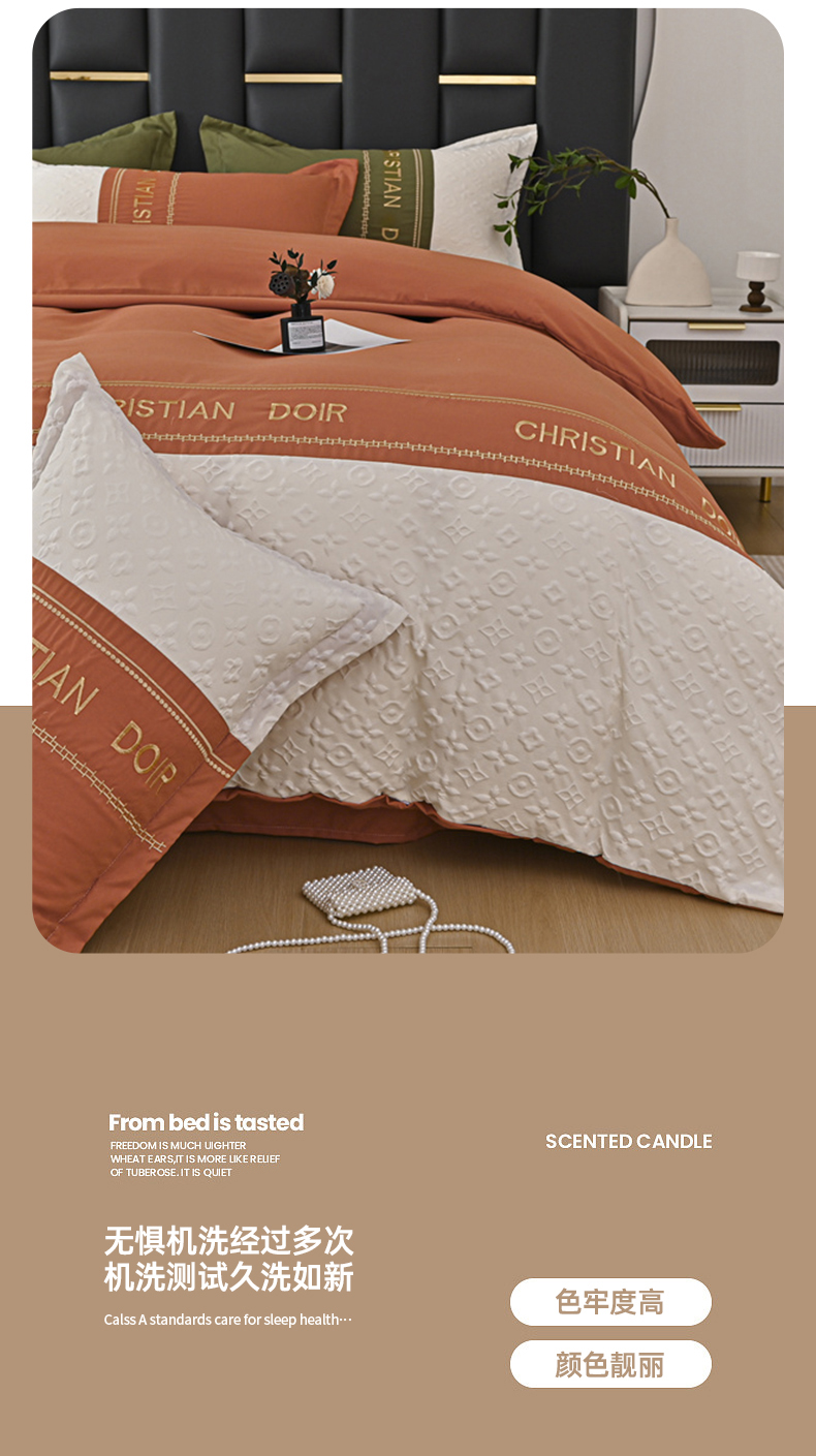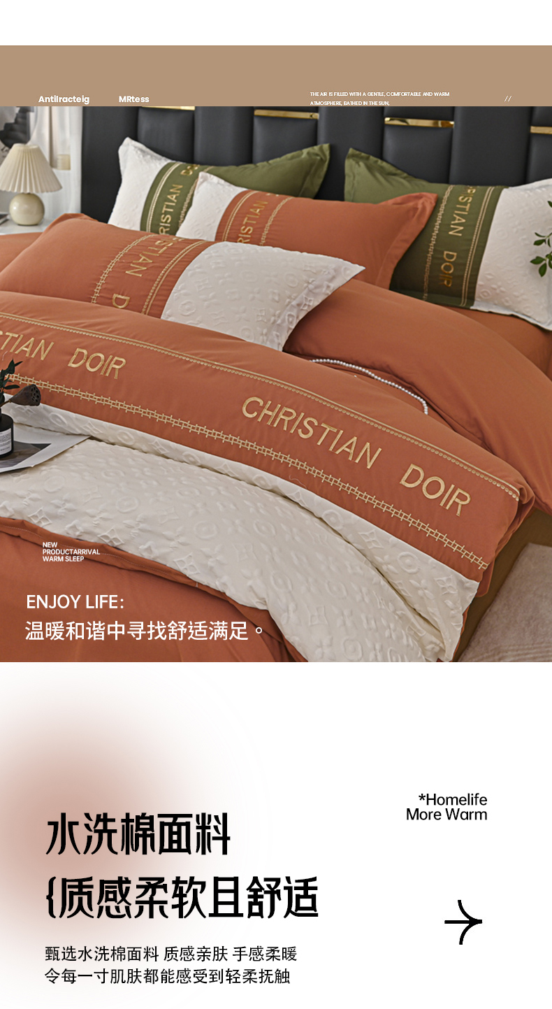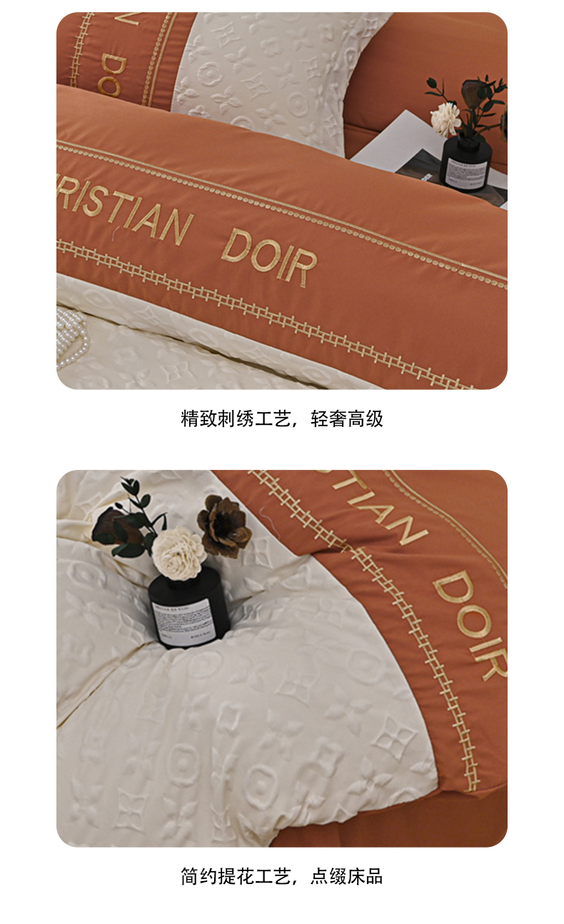 富宁家纺 2025新款直播爆款水洗棉磨毛刺绣浮雕四件套-慕兰迪(提供买家秀) 爱玛橙