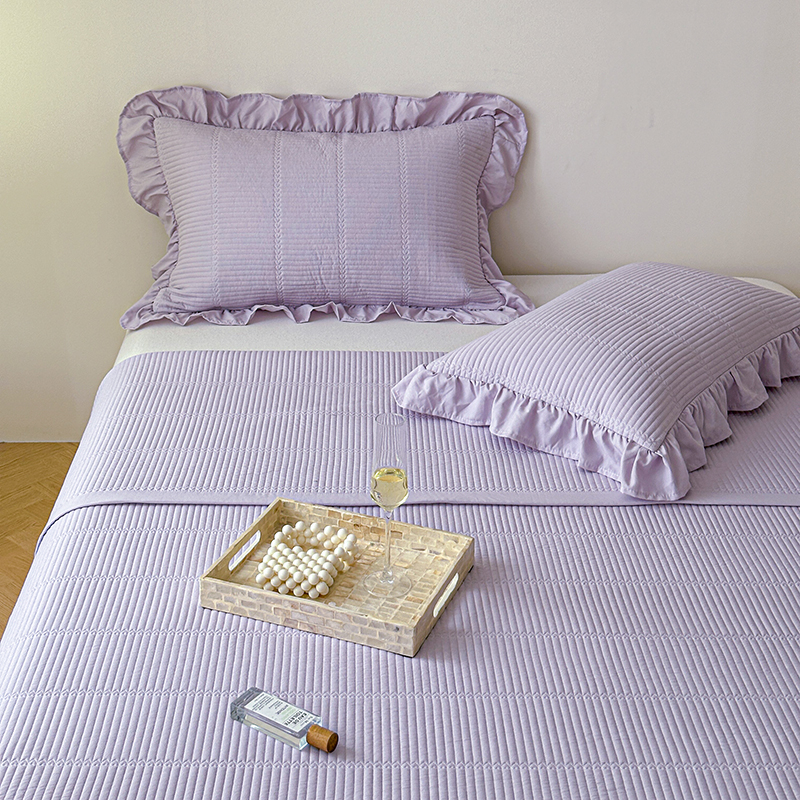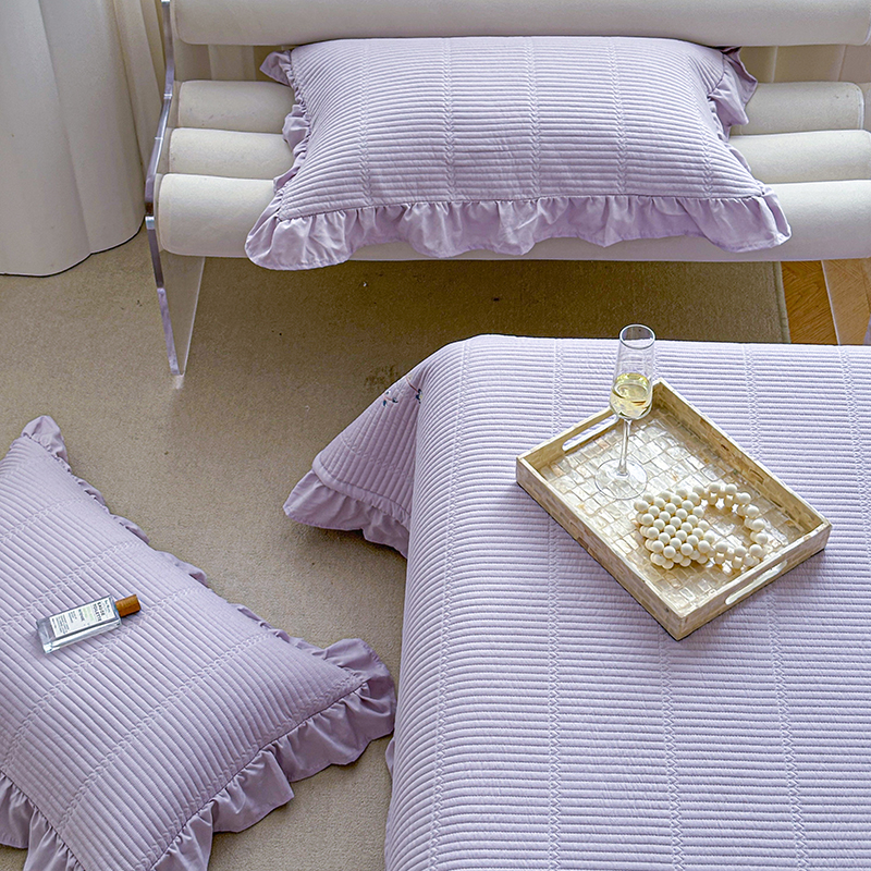 商品名称:紫碧螺家纺 2024新款绣花欧式花边床盖(泡泡棉) 粉紫色