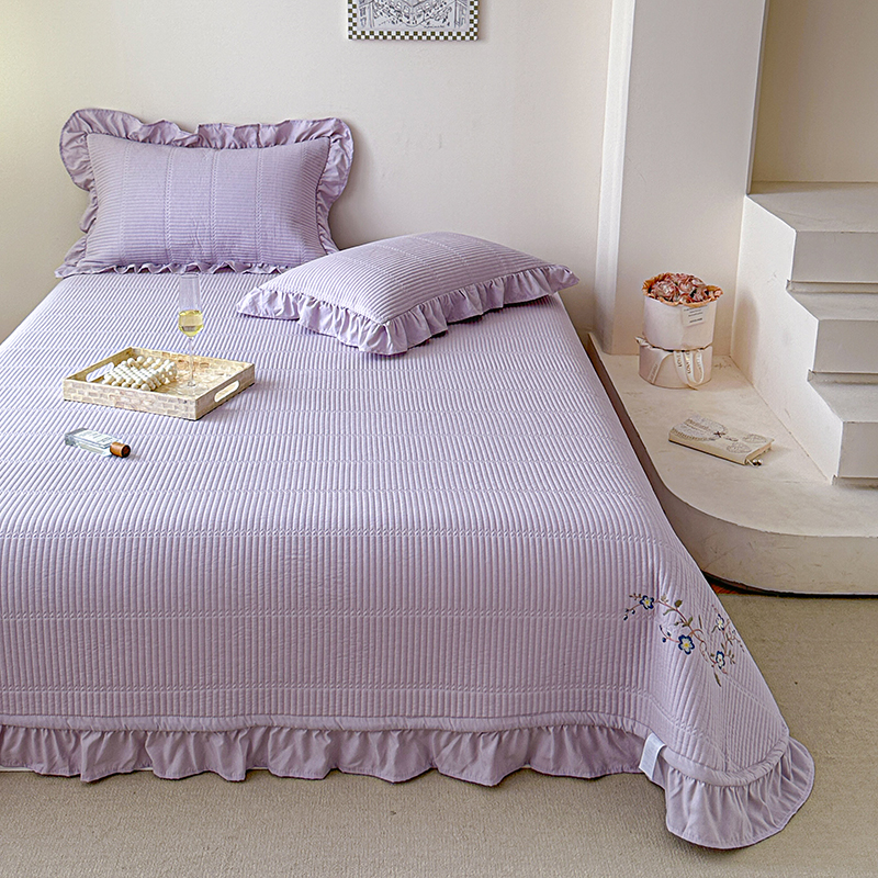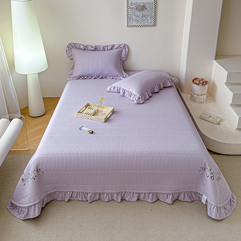 紫碧螺家纺 2024新款绣花欧式花边床盖(泡泡棉) 粉紫色