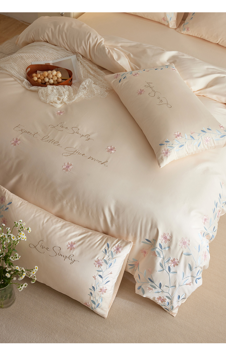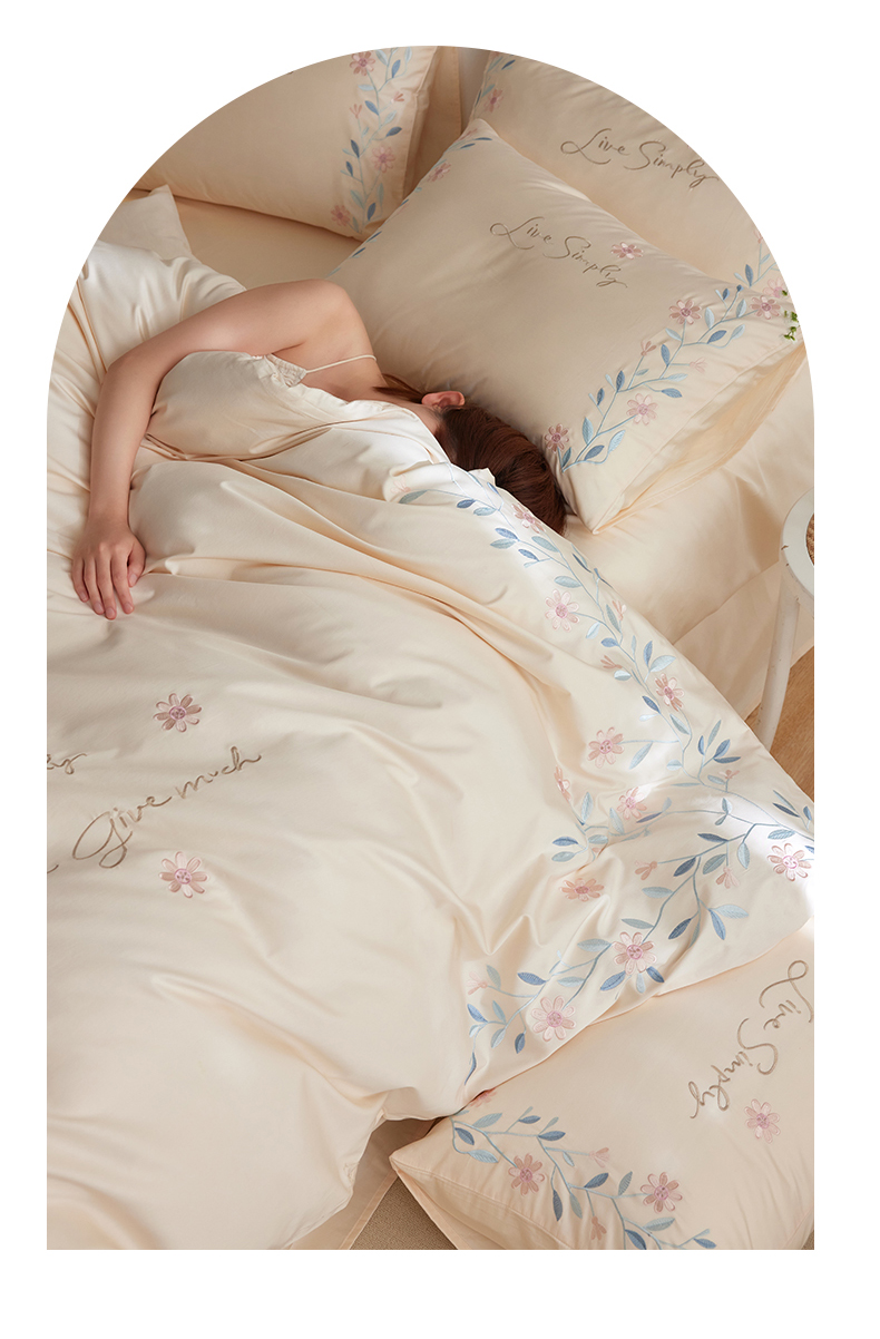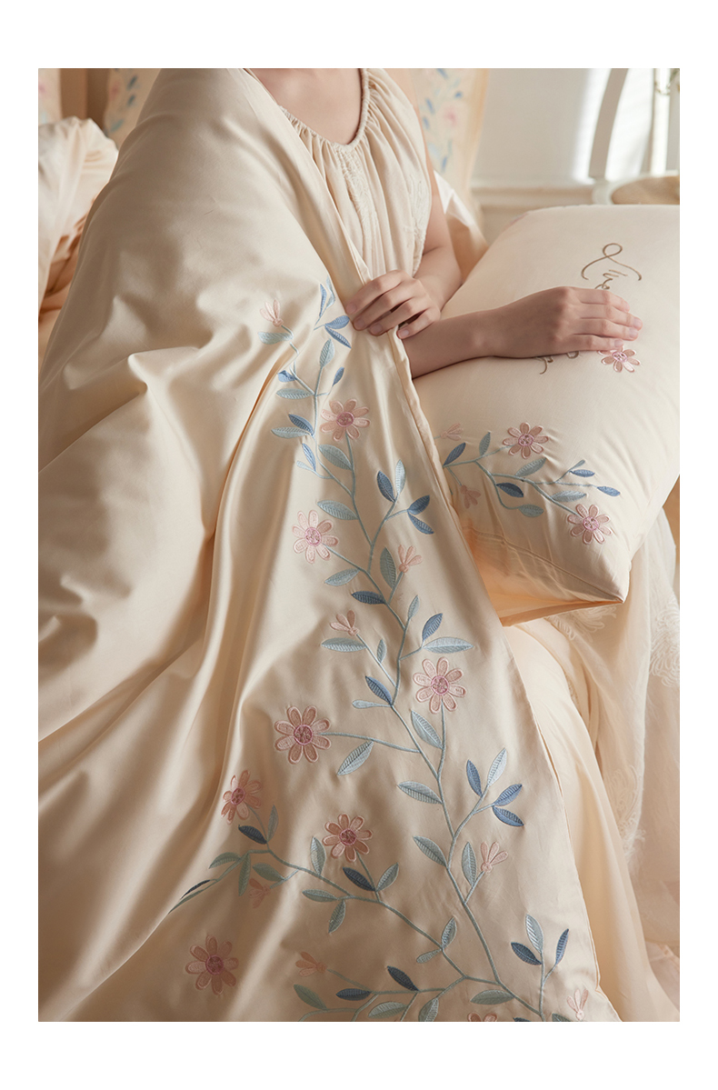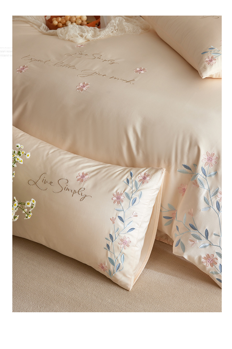 (总)鼎飞家纺 2025新款全棉磨毛刺绣四件套系列-梵,梵-卡布基诺,梵-雅灰,梵-奶油白,梵-蕊粉,梵-荞麦