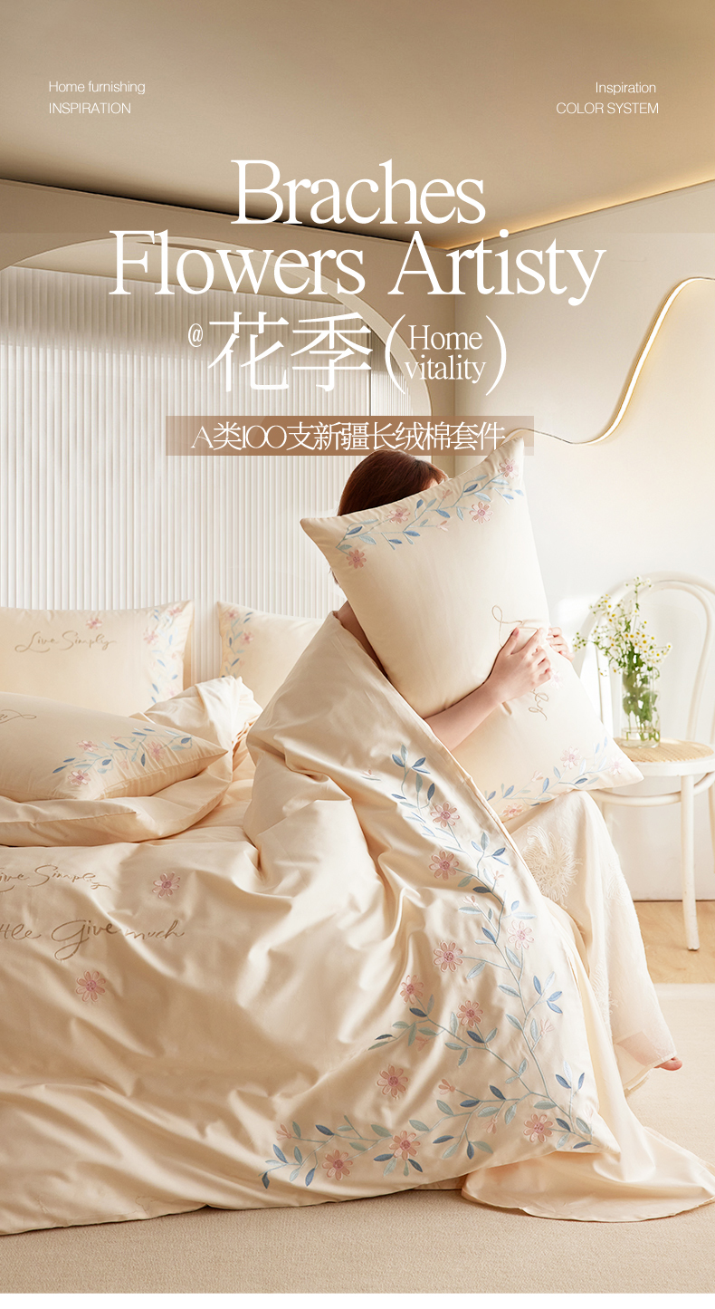 鼎飞家纺 2024新款长绒棉四件套-花季 花季-可可玉