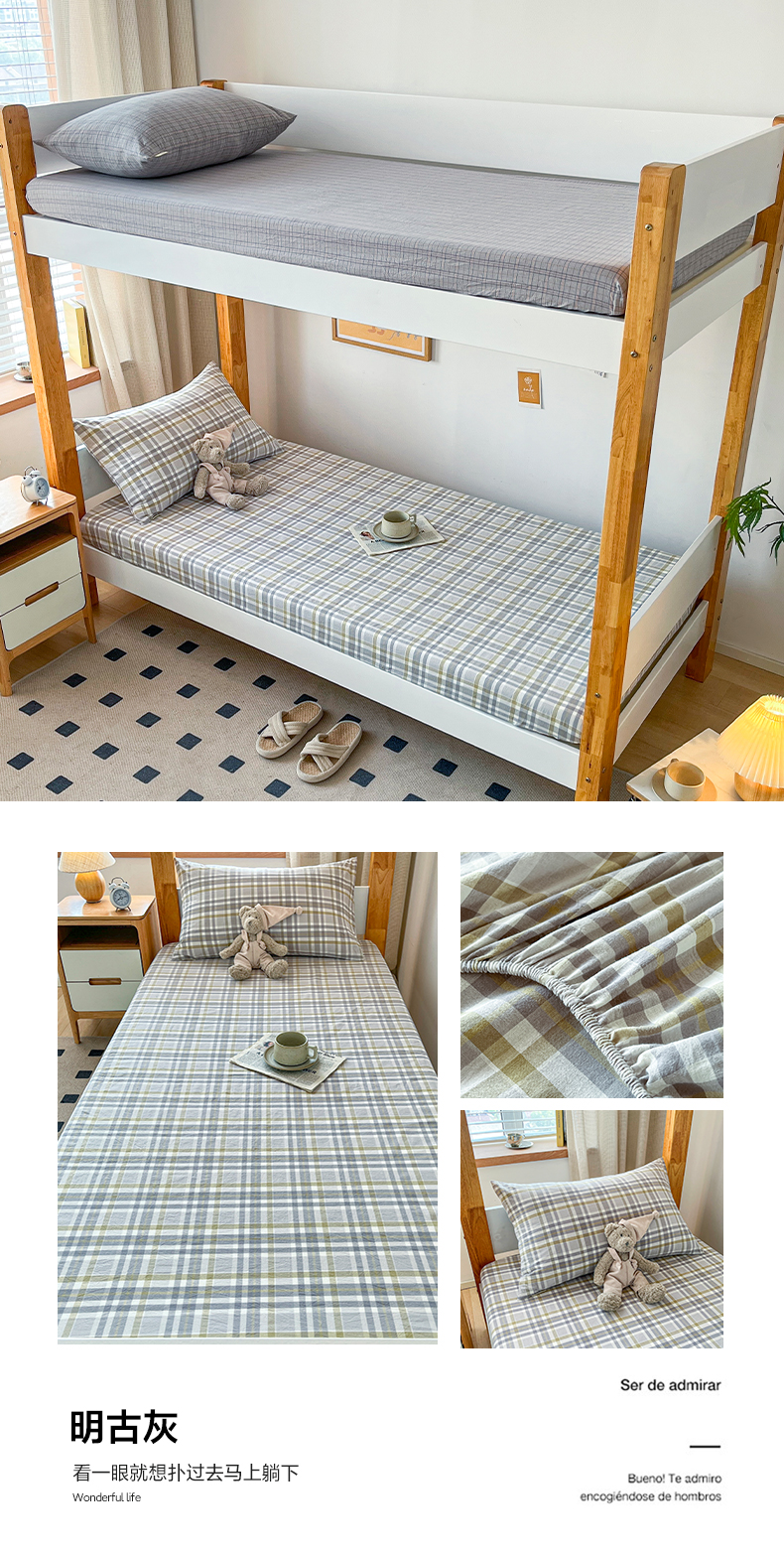 • 91家纺网 家纺一手货源 找家纺 居眠  2024新款全棉色织单层学生床笠 明古灰