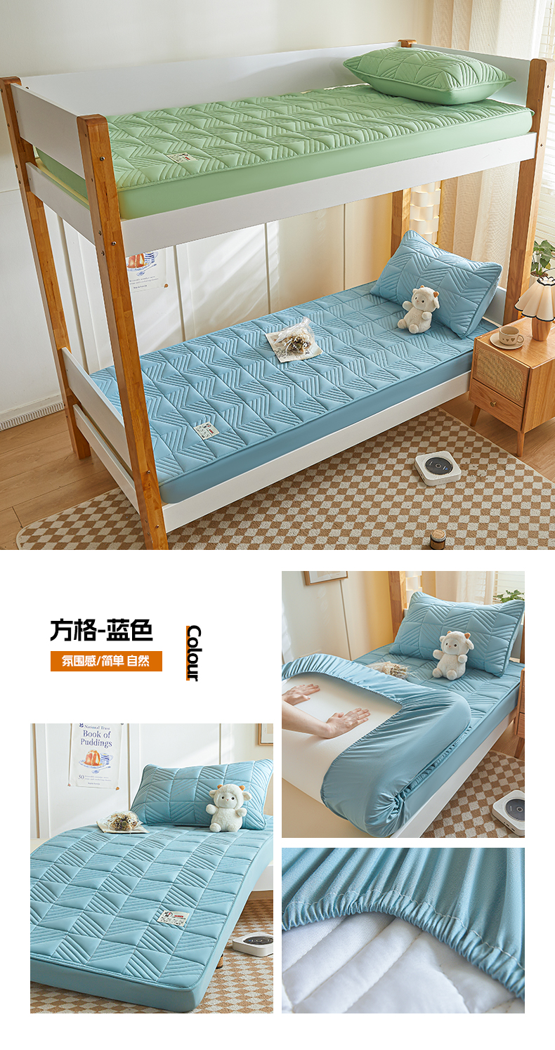 • 91家纺网 家纺一手货源 找家纺 居眠 2024新款学生宿舍夹棉大豆床笠 方格-蓝色